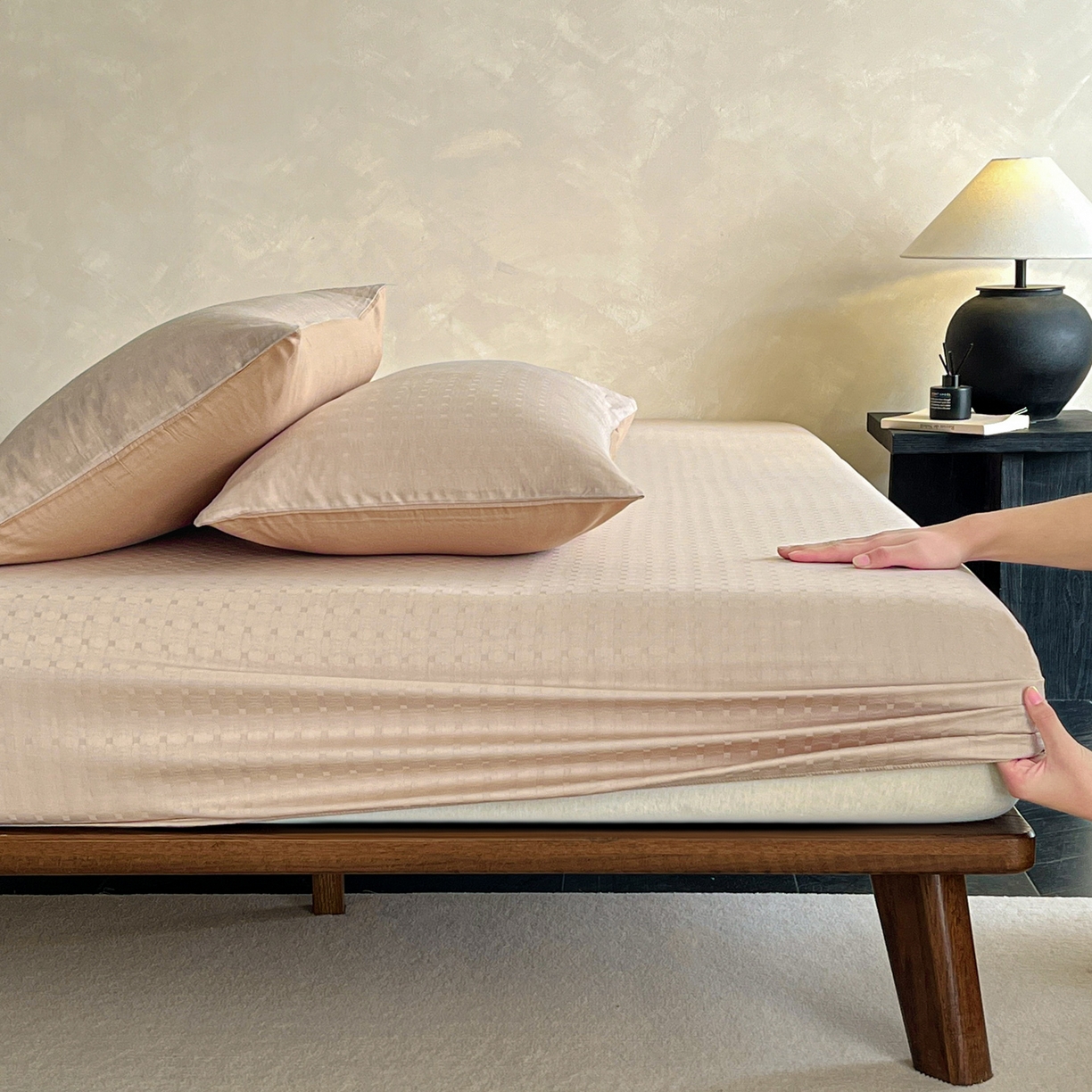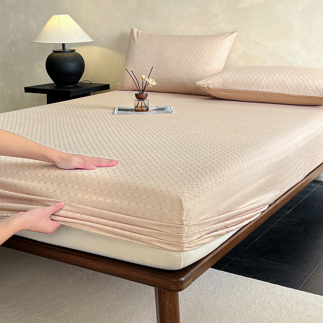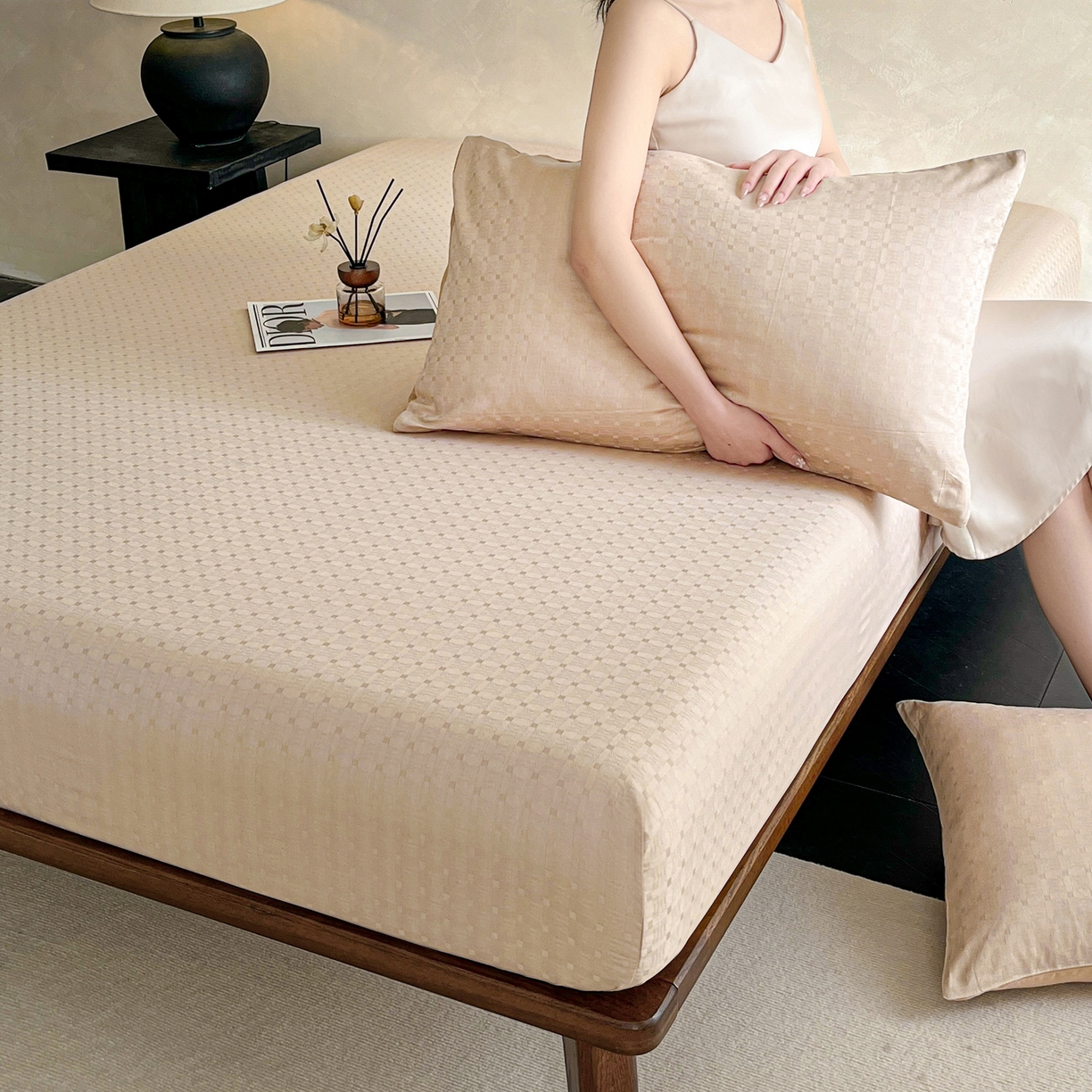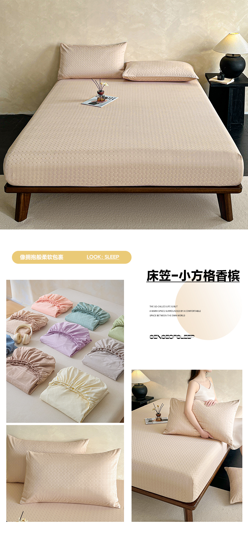 莱登卡奴 2026新款全棉A类贡缎提花单品时尚系列-床笠-枕套 床笠-小方格香槟