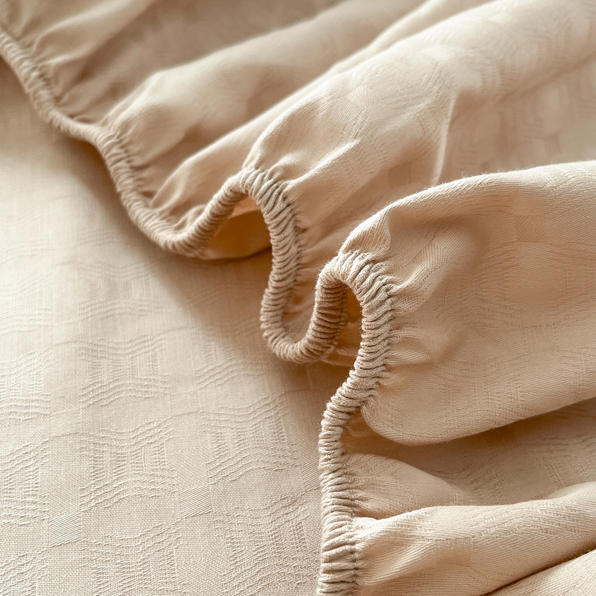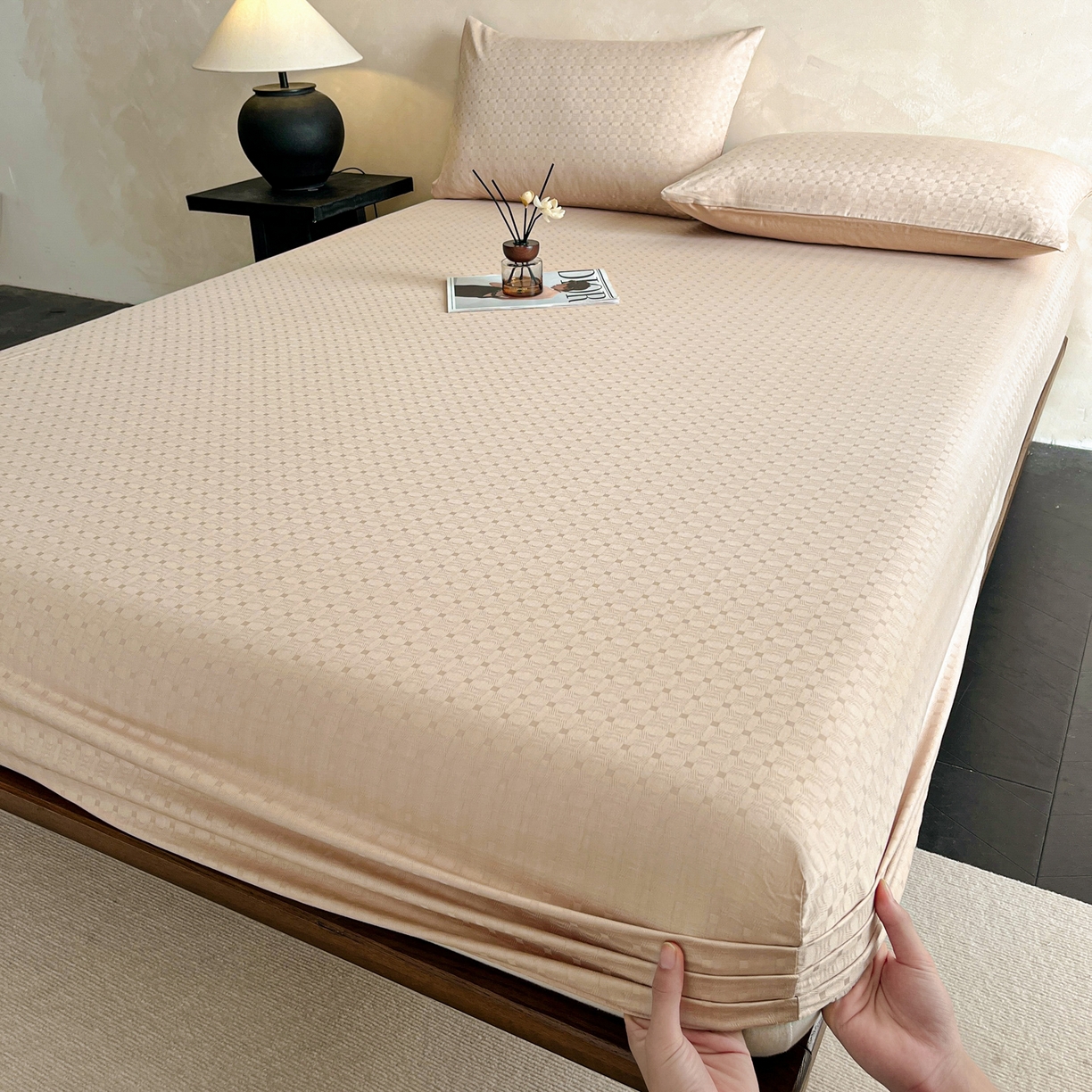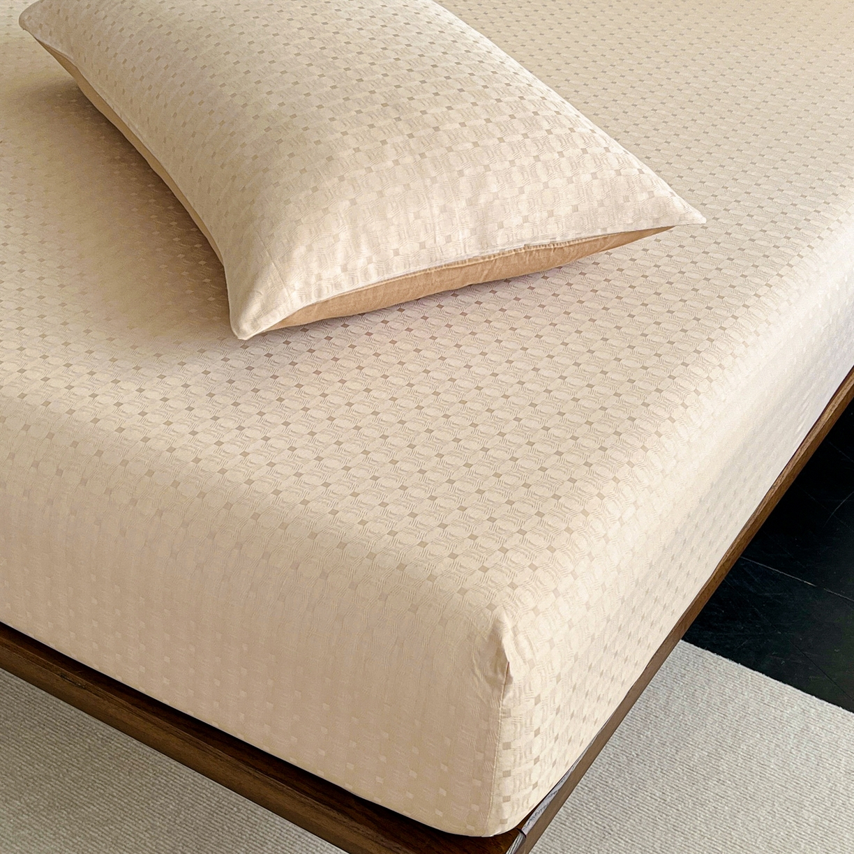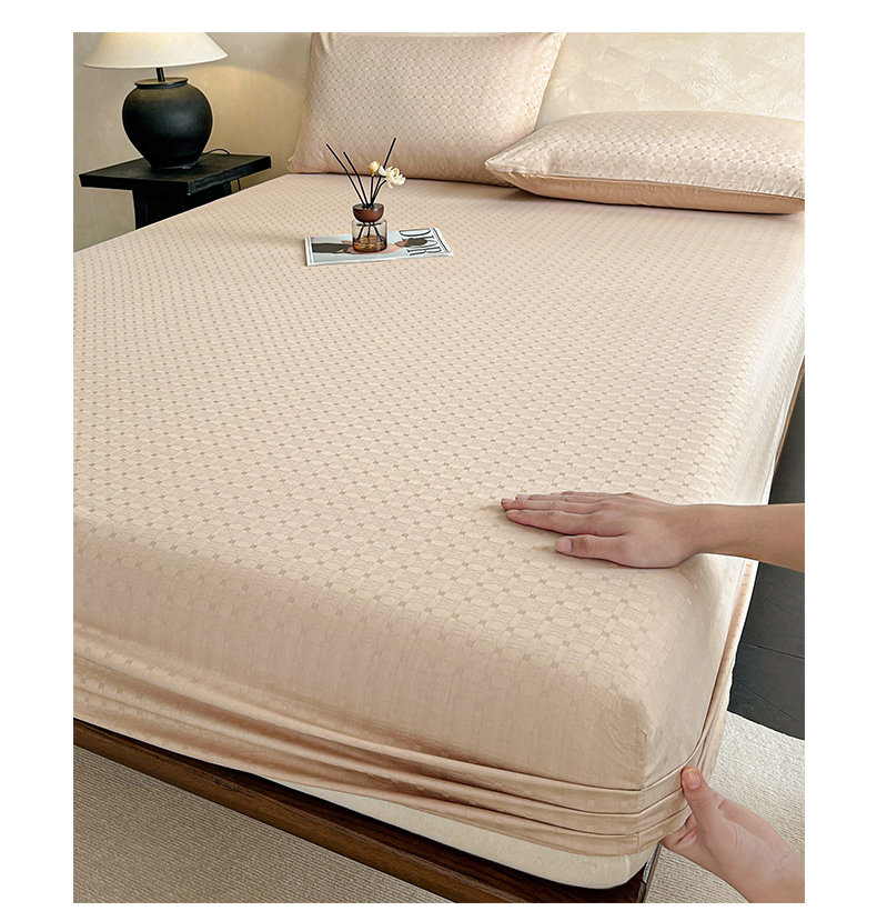 莱登卡奴 2026新款全棉A类贡缎提花单品时尚系列-床笠-枕套 床笠-小方格香槟