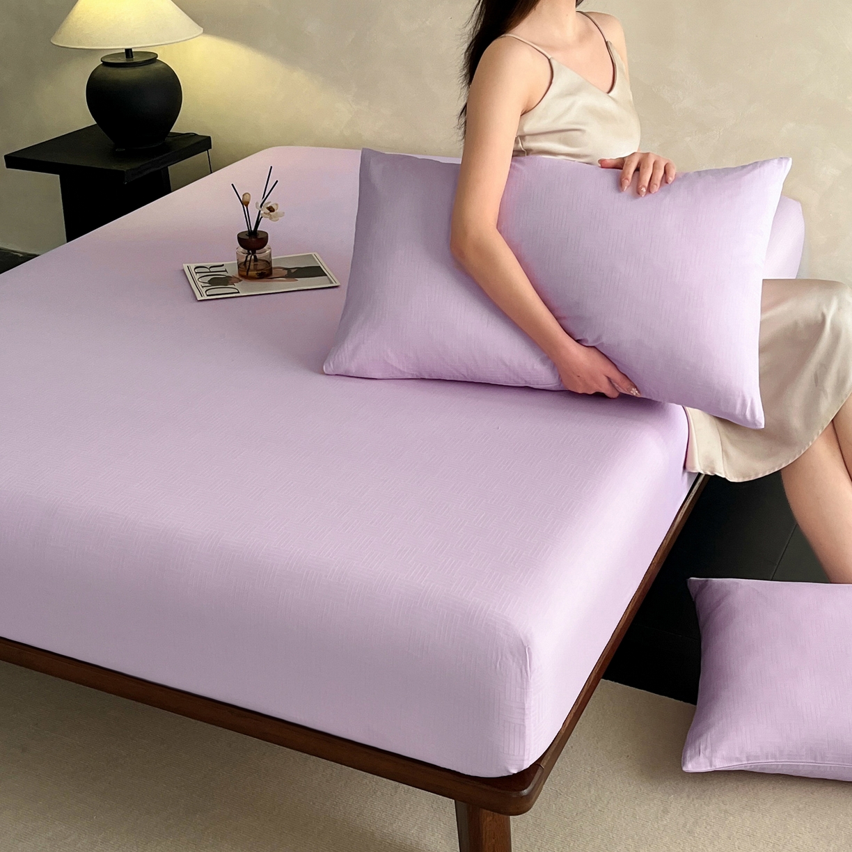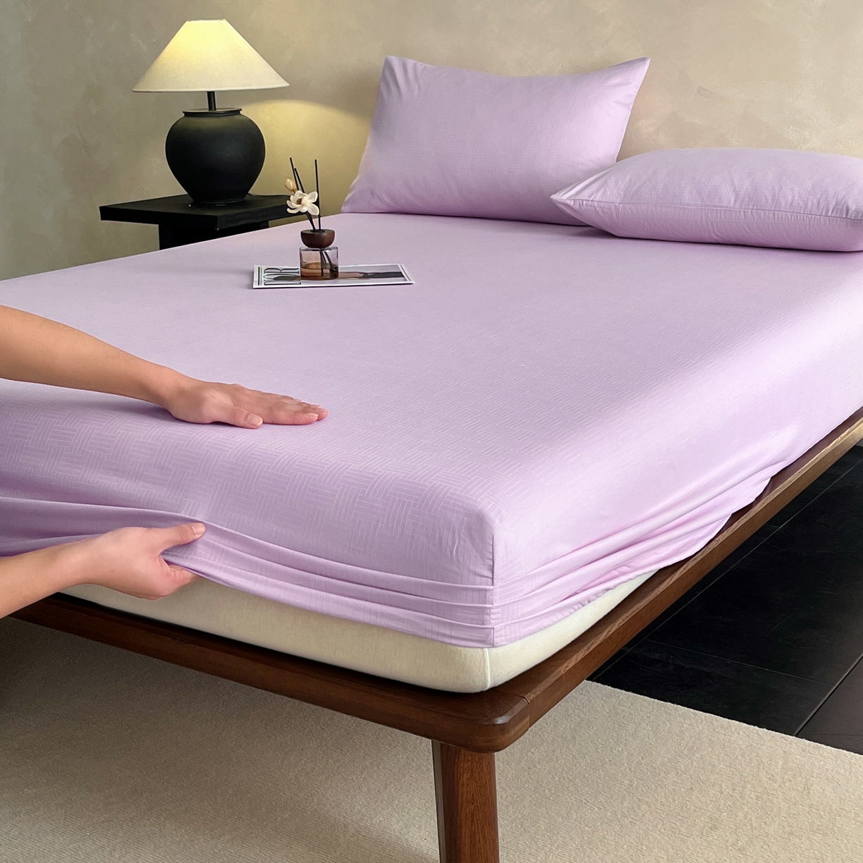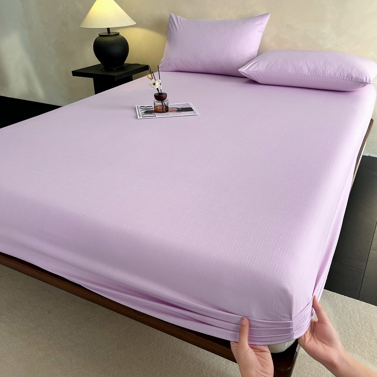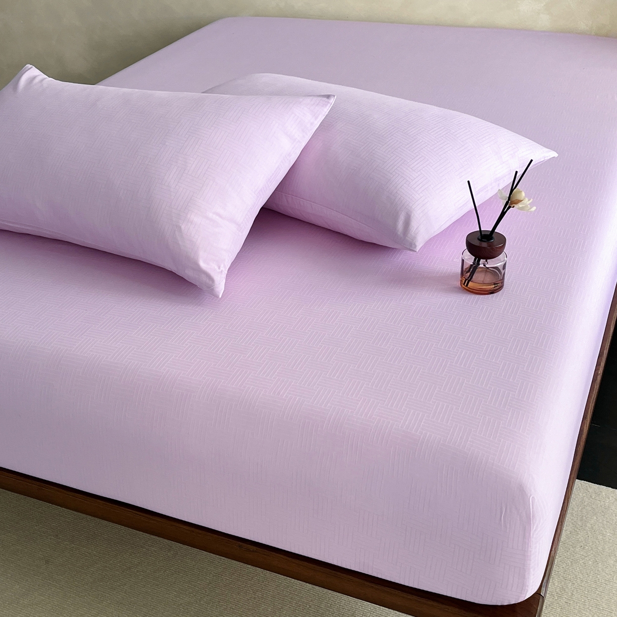 > 莱登卡奴 2026新款全棉A类贡缎提花单品时尚系列-床笠-枕套 床笠-编织浅紫