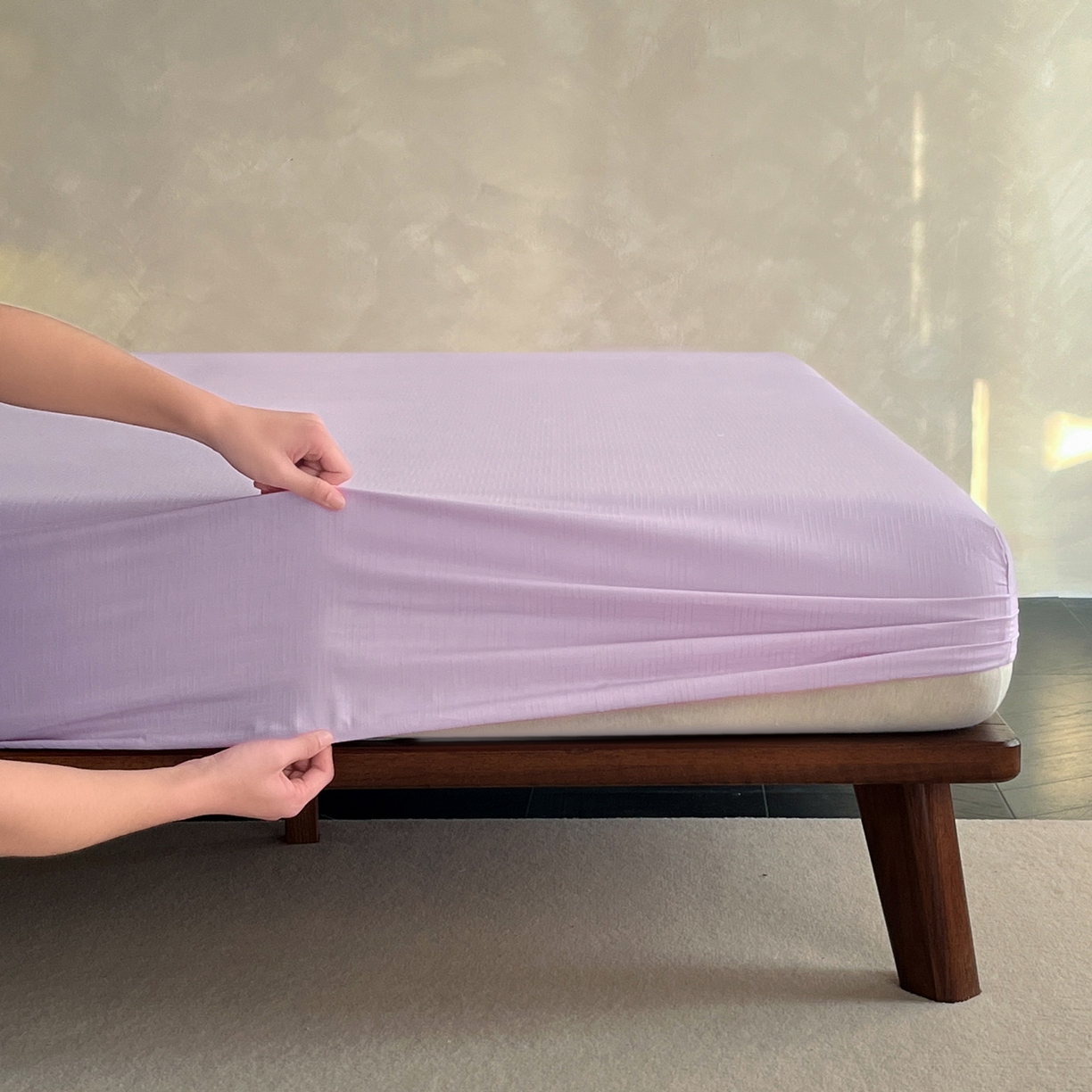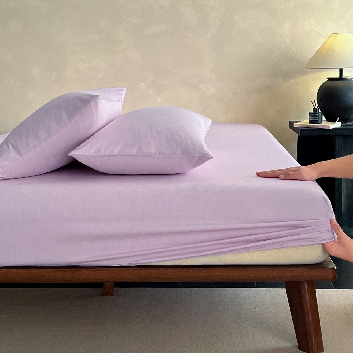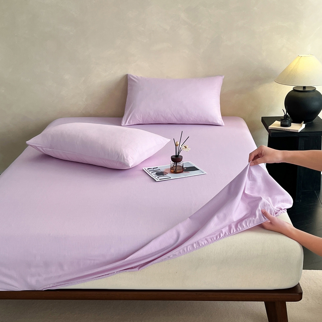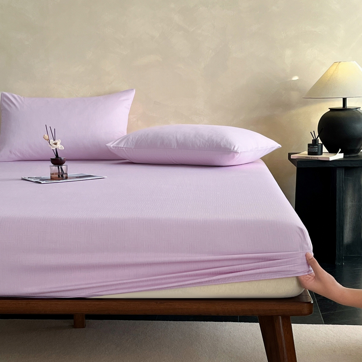 > 莱登卡奴 2026新款全棉A类贡缎提花单品时尚系列-床笠-枕套 床笠-编织浅紫