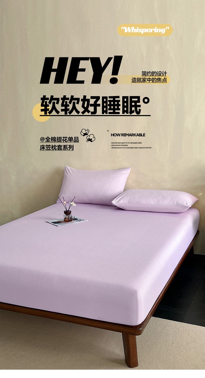 莱登卡奴 2026新款全棉A类贡缎提花单品时尚系列-床笠-枕套 床笠-编织浅紫