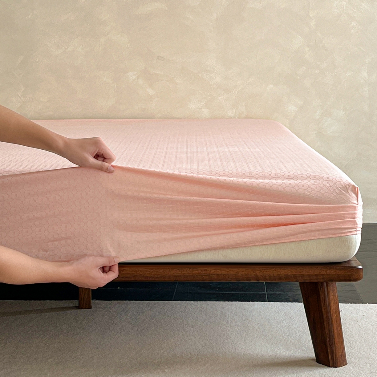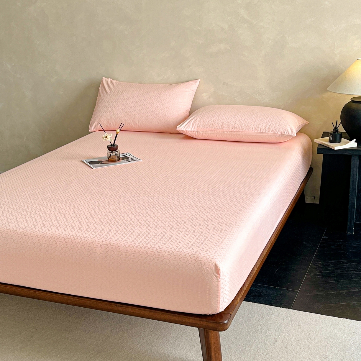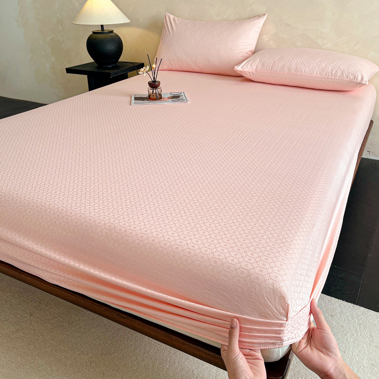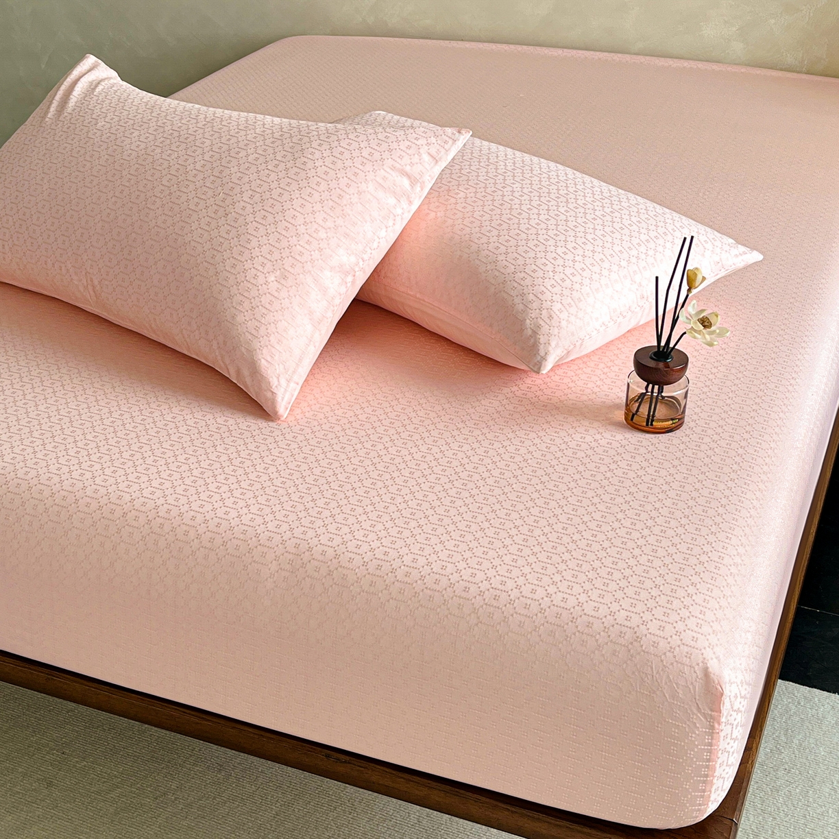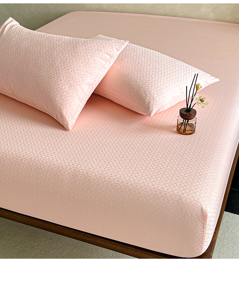 > 莱登卡奴 2026新款全棉A类贡缎提花单品时尚系列-床笠-枕套 床笠-菱格粉