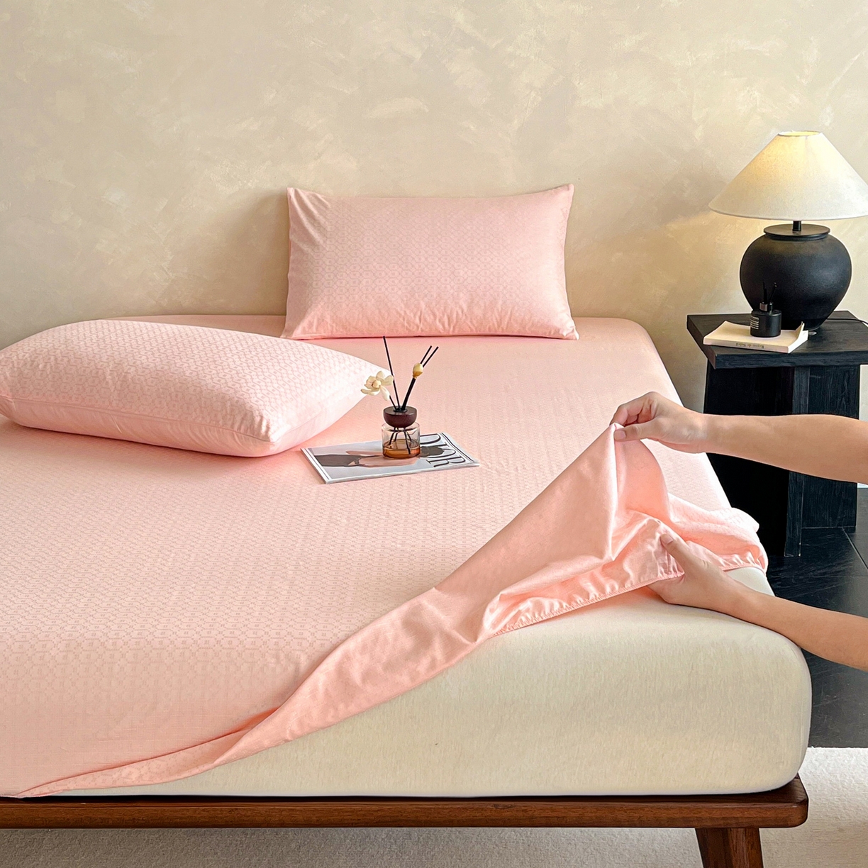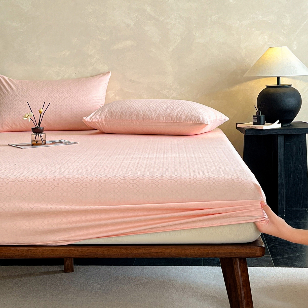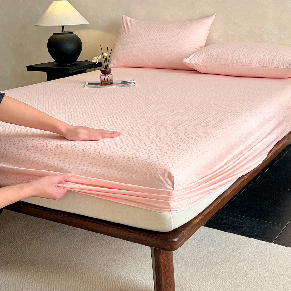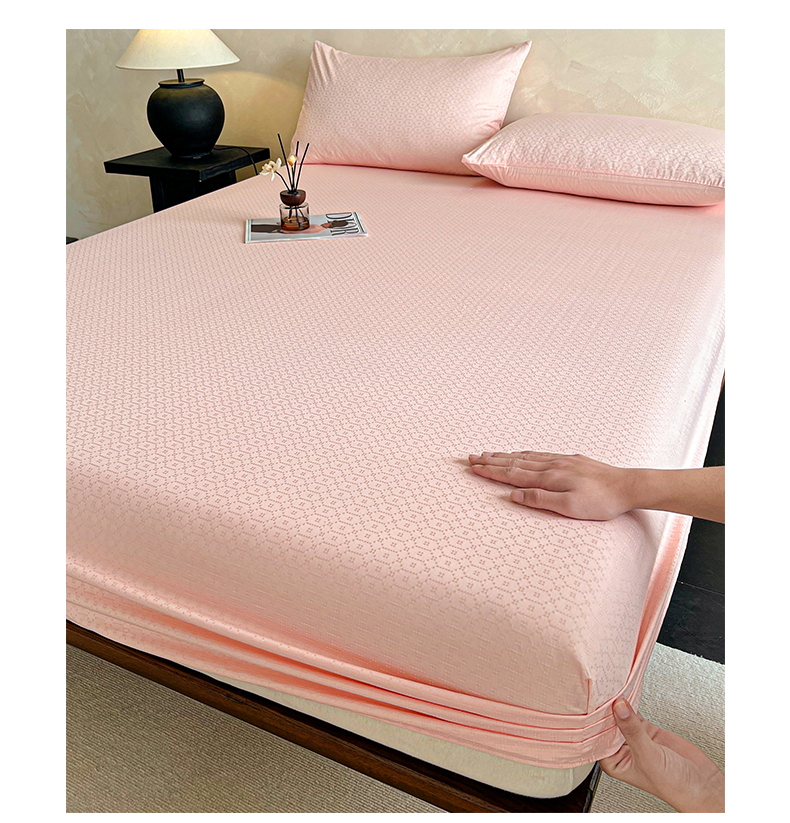 莱登卡奴 2026新款全棉A类贡缎提花单品时尚系列-床笠-枕套 床笠-菱格粉