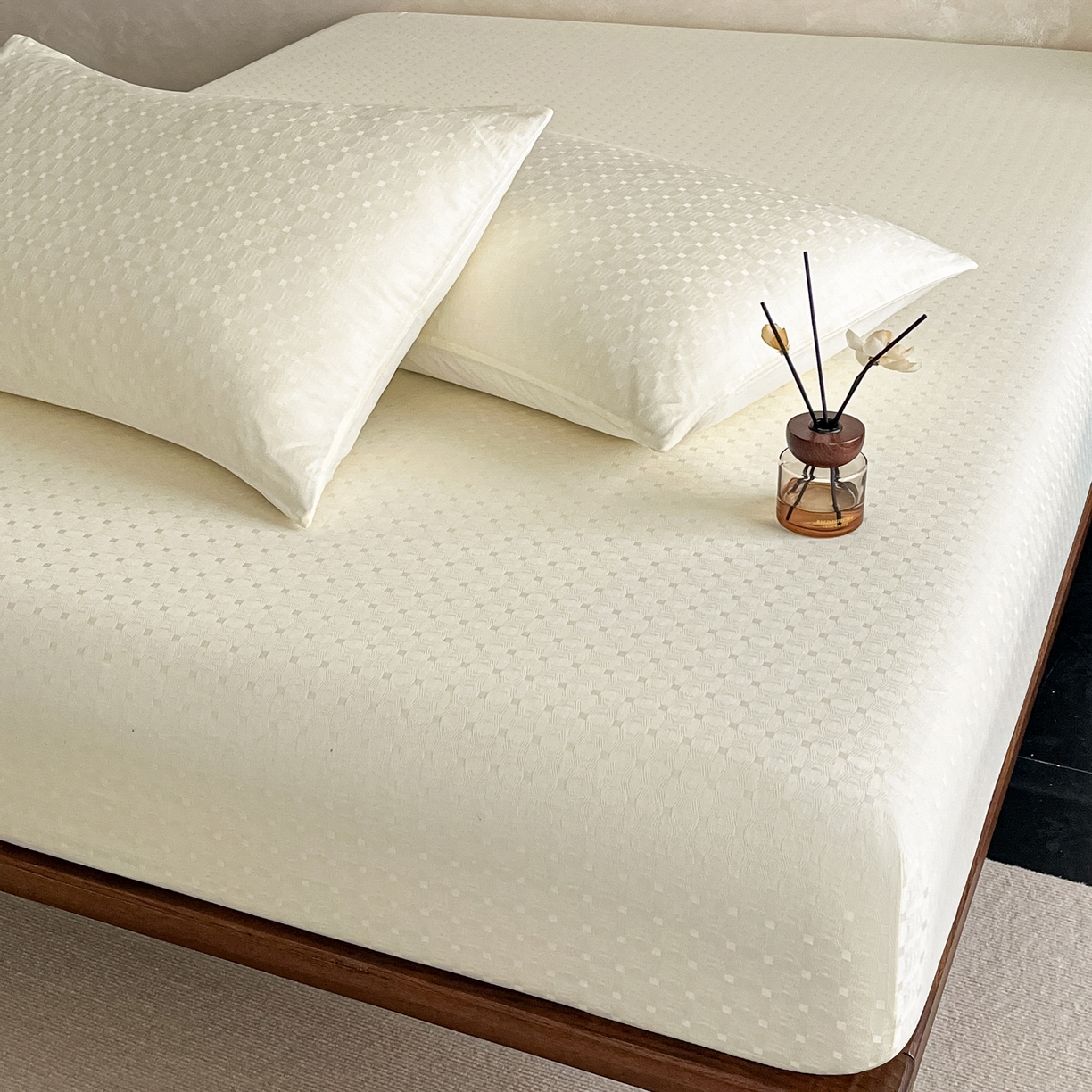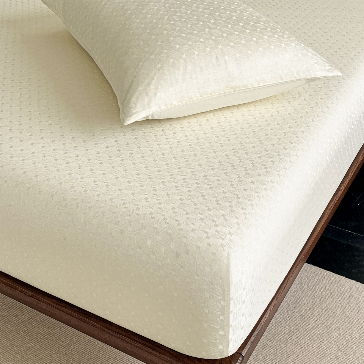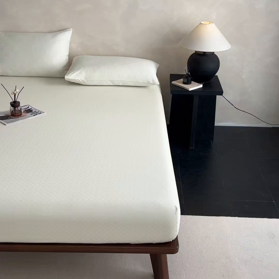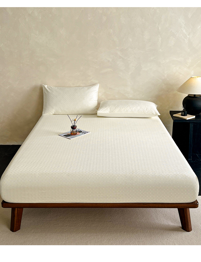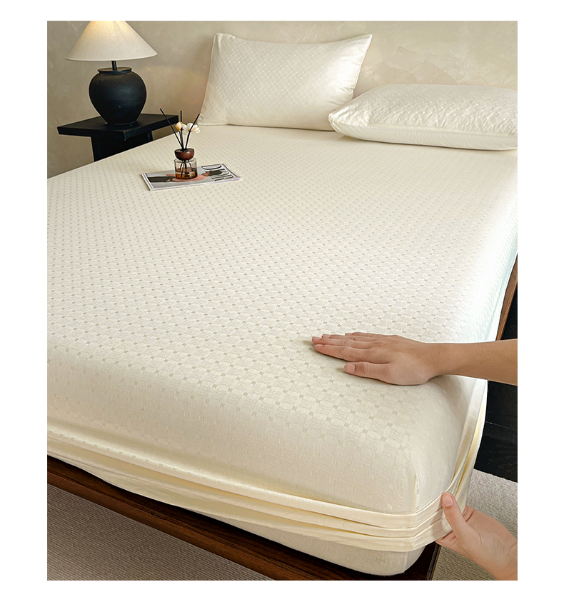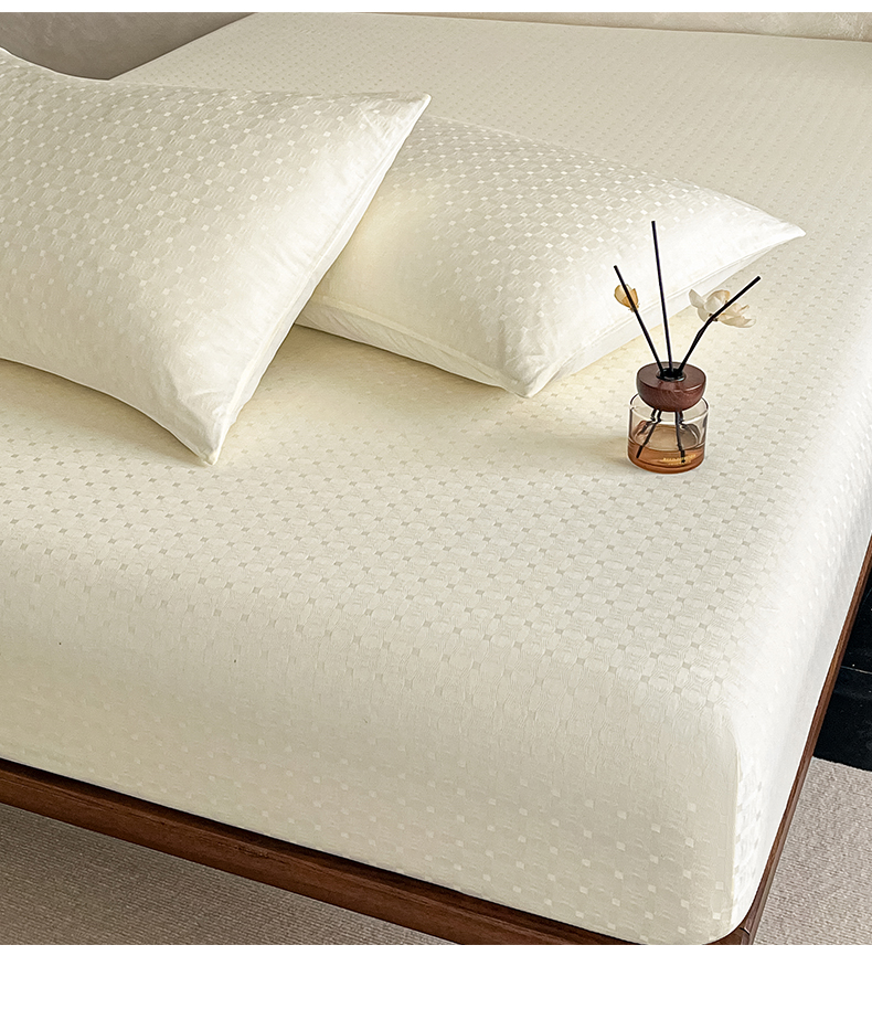 莱登卡奴 2026新款全棉A类贡缎提花单品时尚系列-床笠-枕套 床笠-小方格奶白