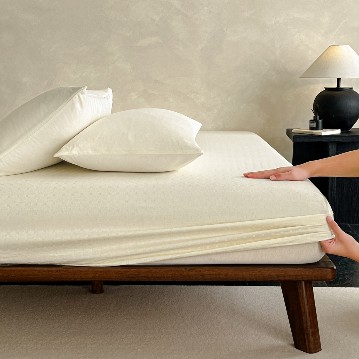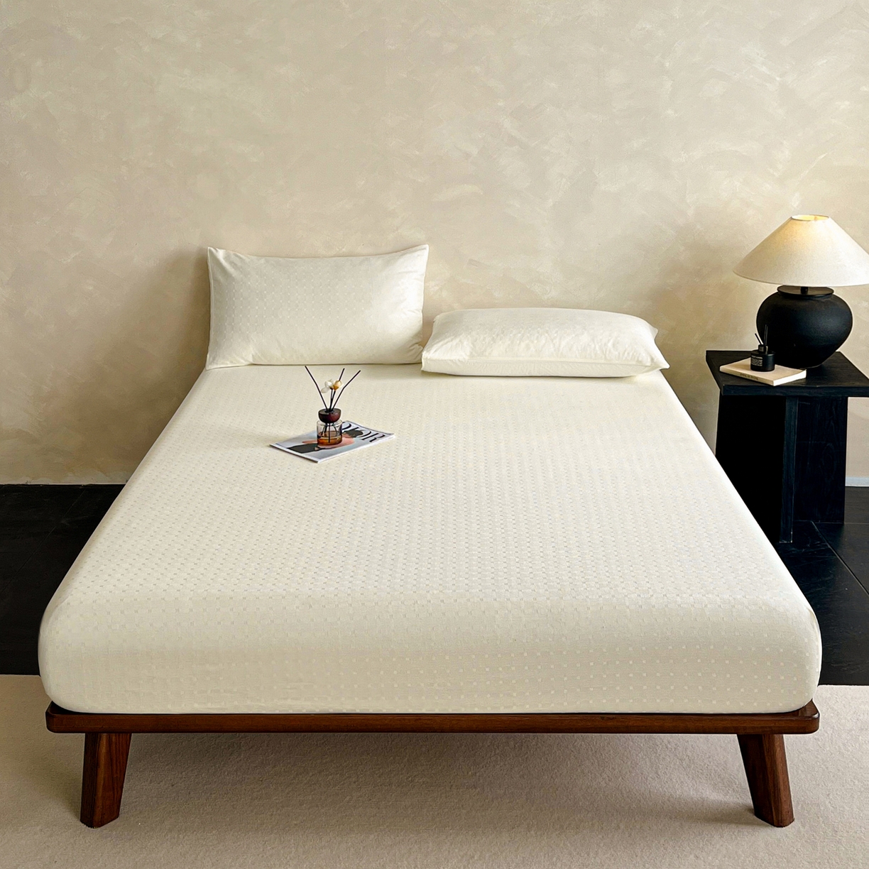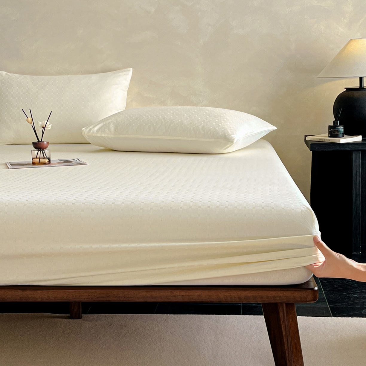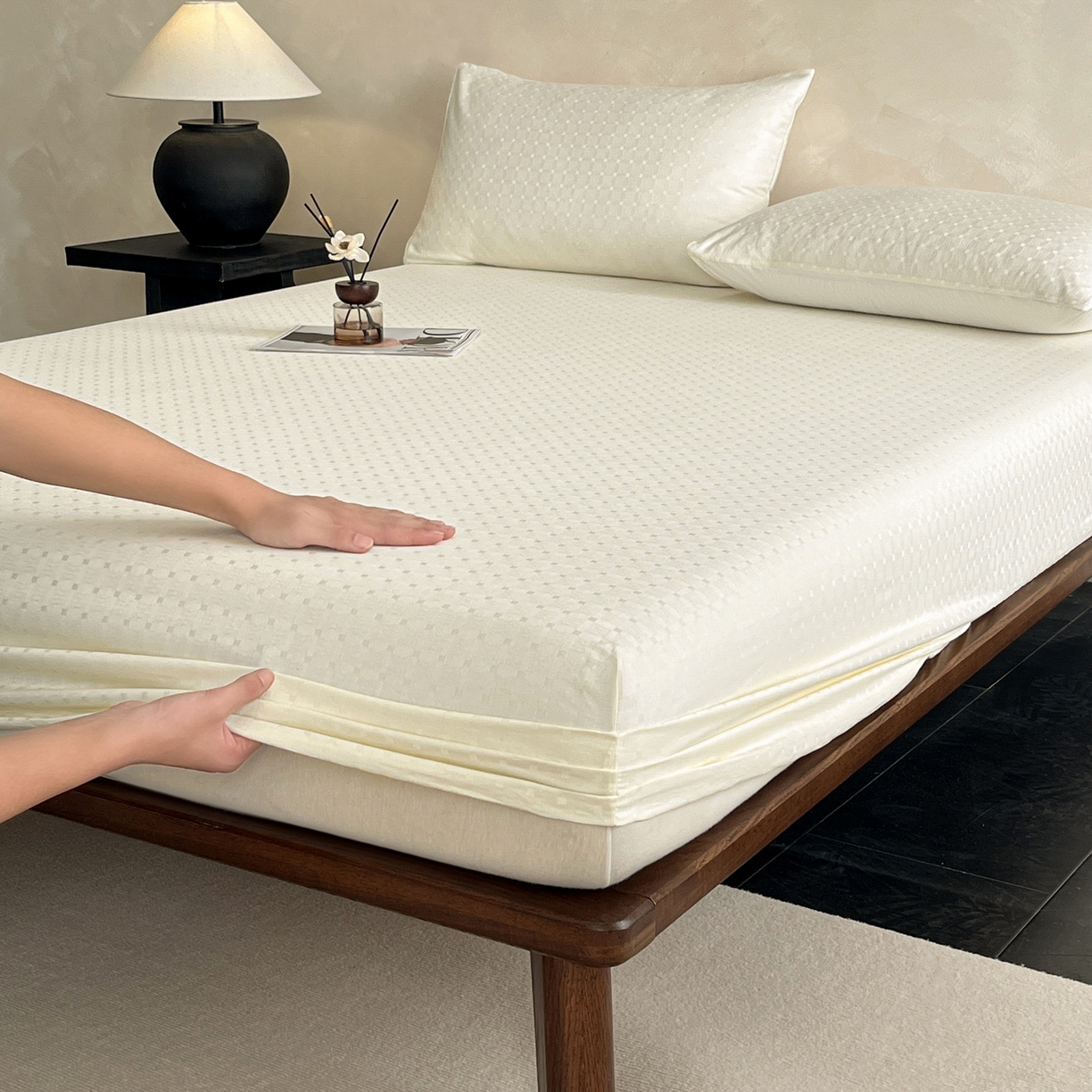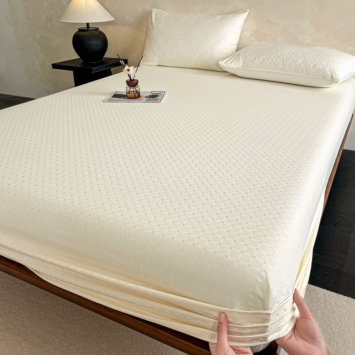 莱登卡奴 2026新款全棉A类贡缎提花单品时尚系列-床笠-枕套 床笠-小方格奶白