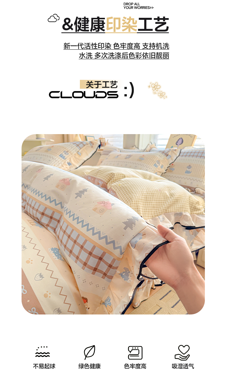 全棉A类色织水洗棉贝壳绣学生宿舍床系列
