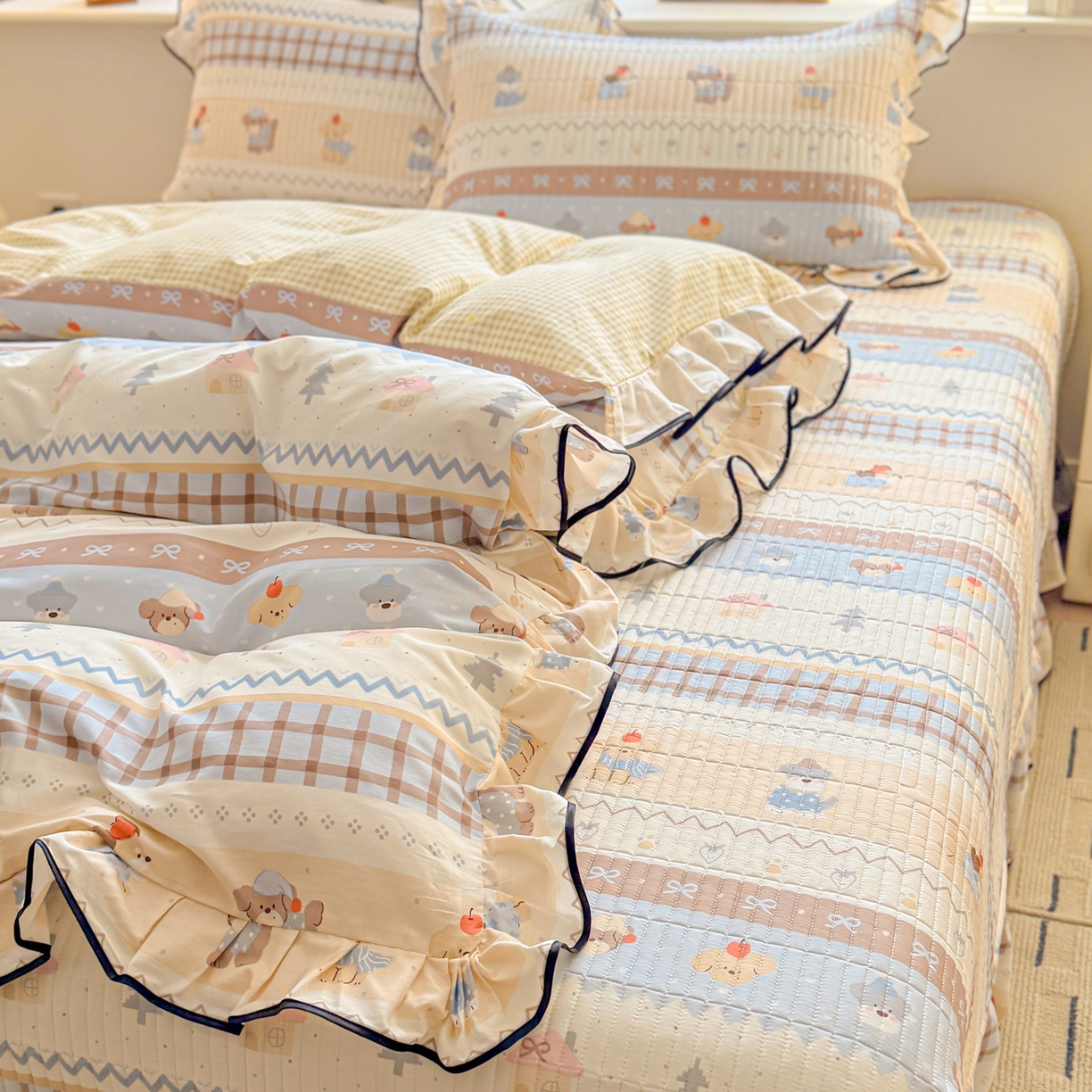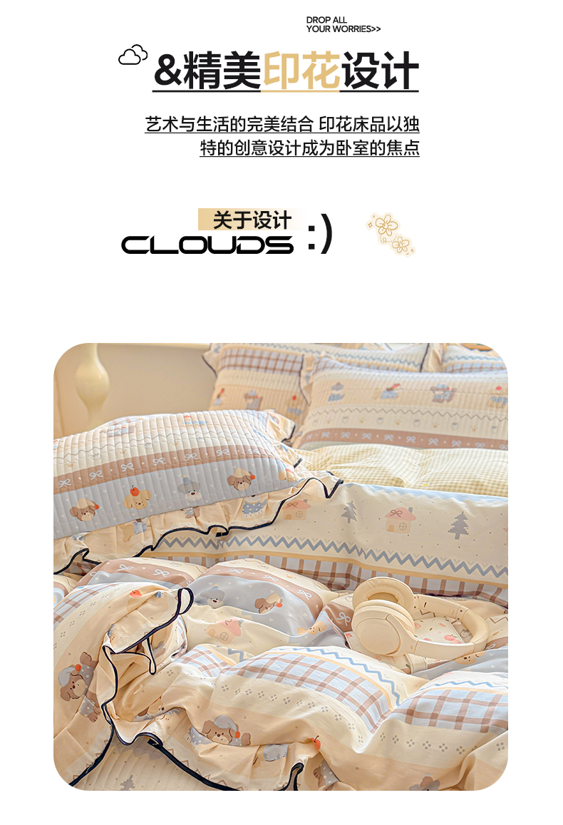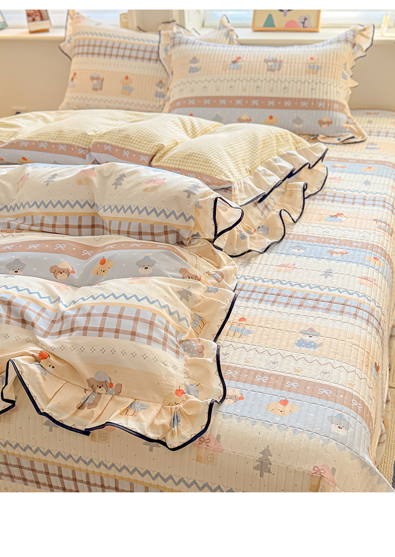莱登卡奴 2026新款全棉A类小清新花边床盖款系列四件套 费尔岛小狗
