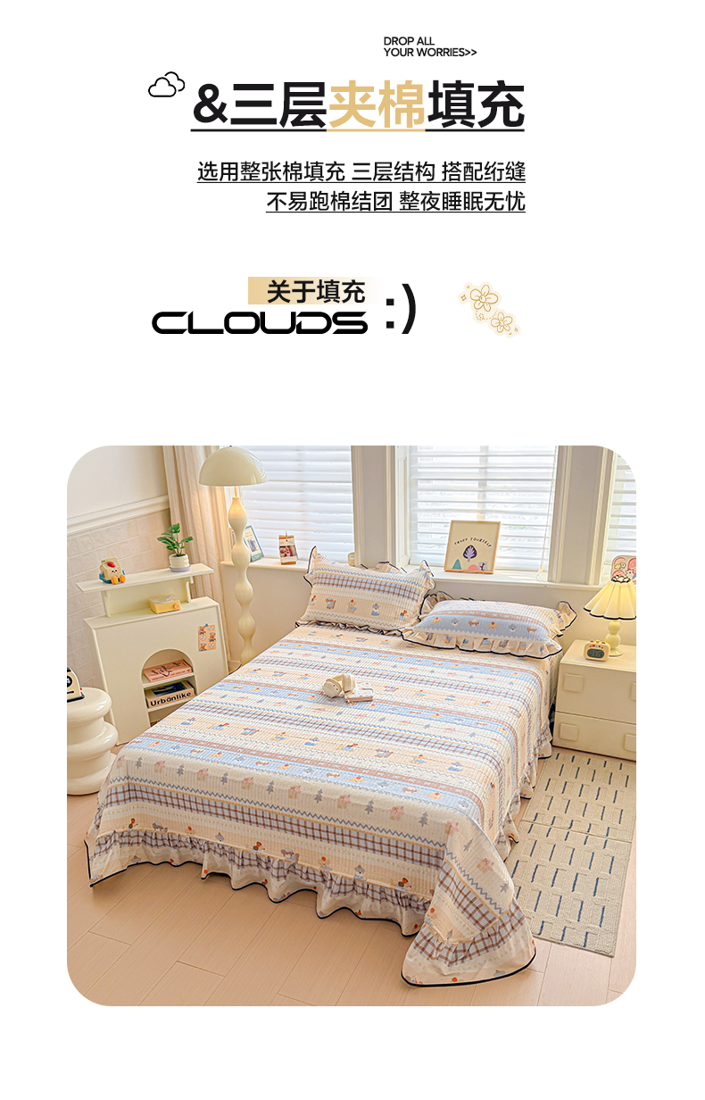 2025新款全棉磨毛加绒夹棉床盖卡通系列