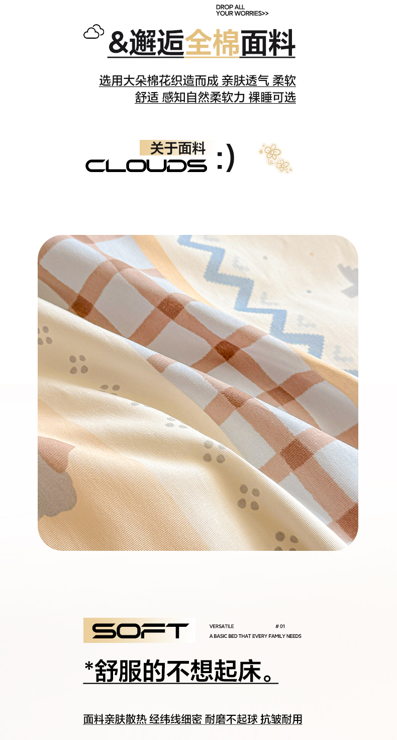 2025新款A类100%全棉磨毛条格卡通单品系列