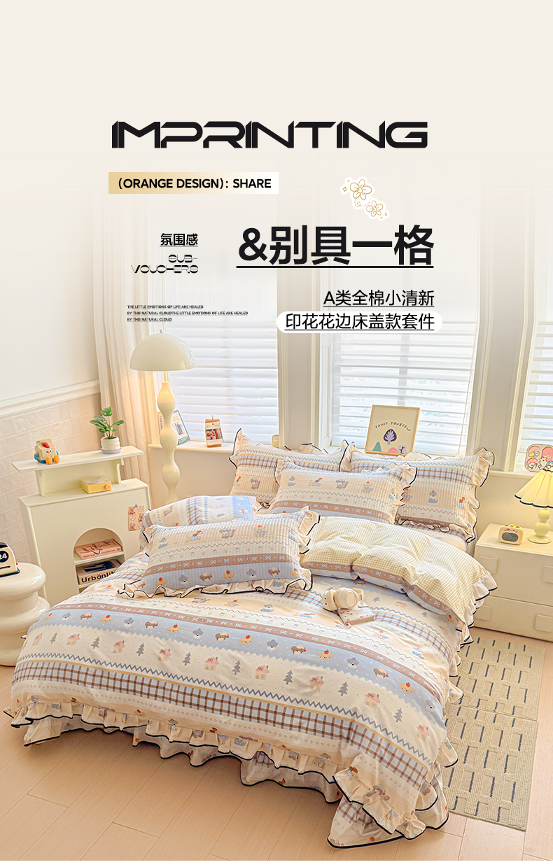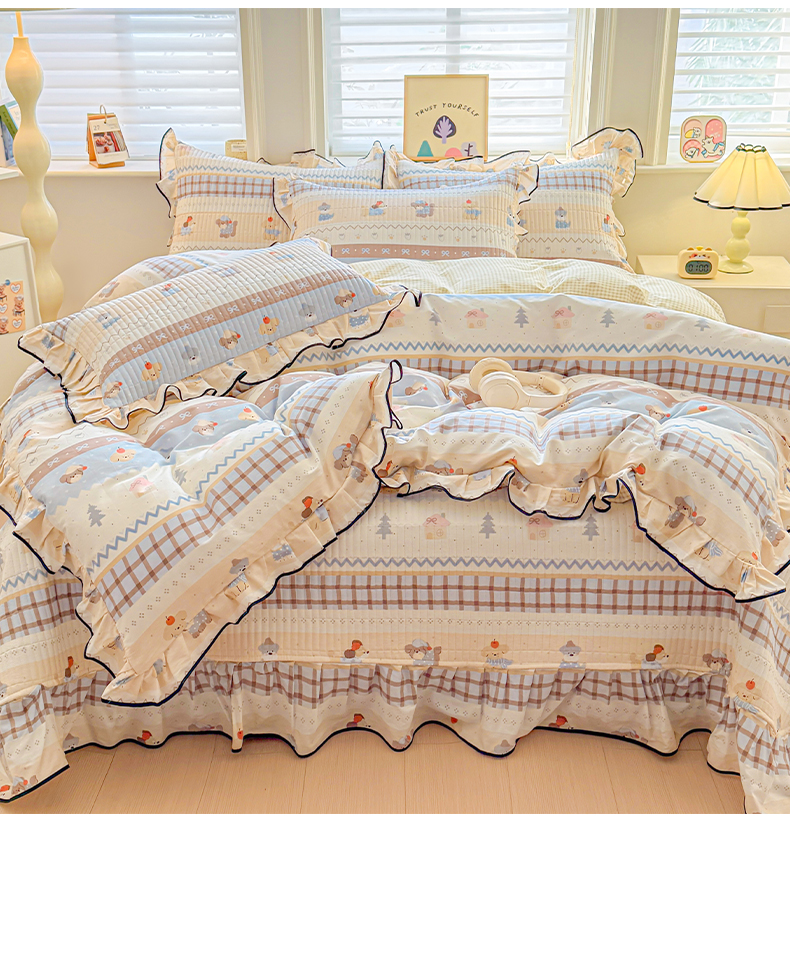 2026新款全棉A类小清新花边床盖款系列四件套