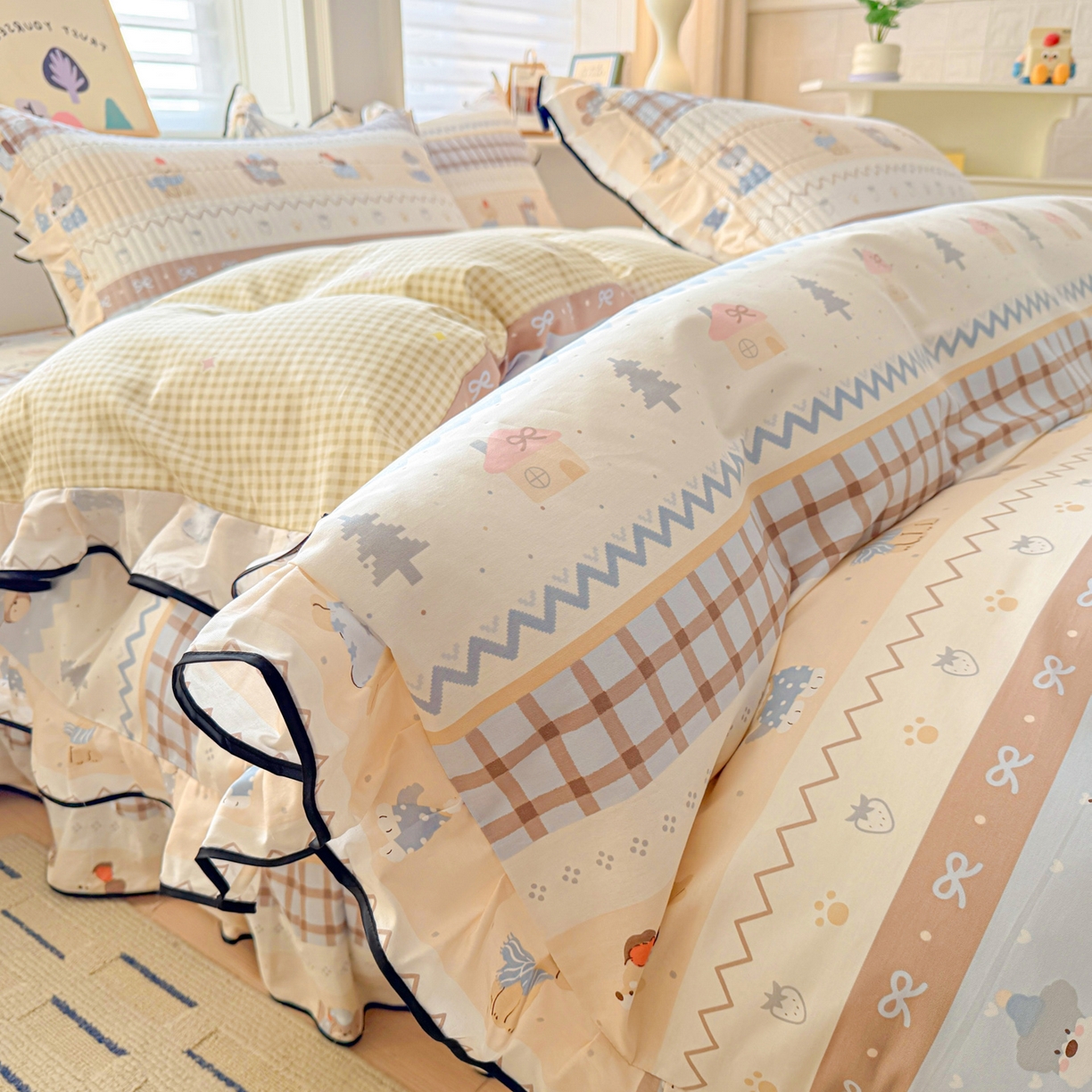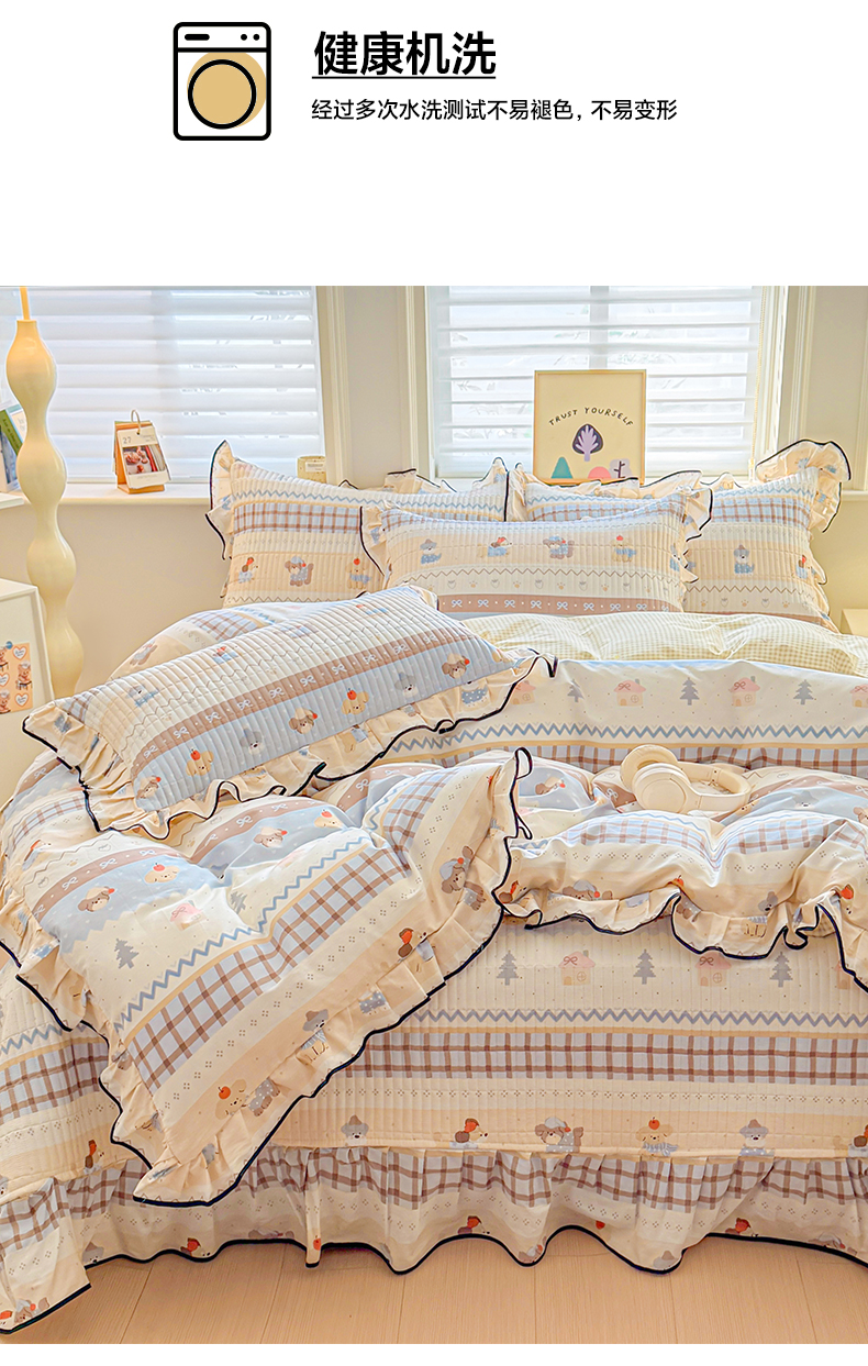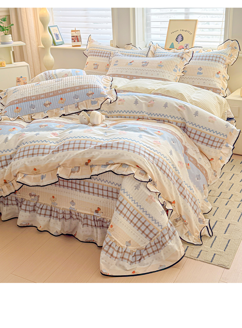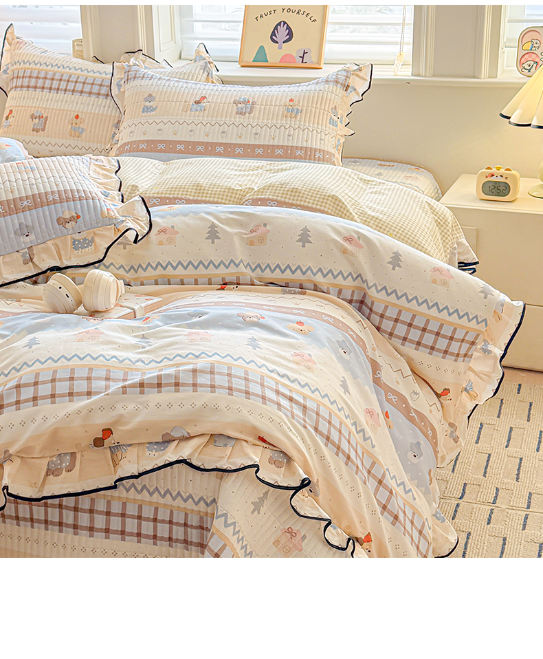 2025新款A类100%全棉磨毛条格卡通系列四件套