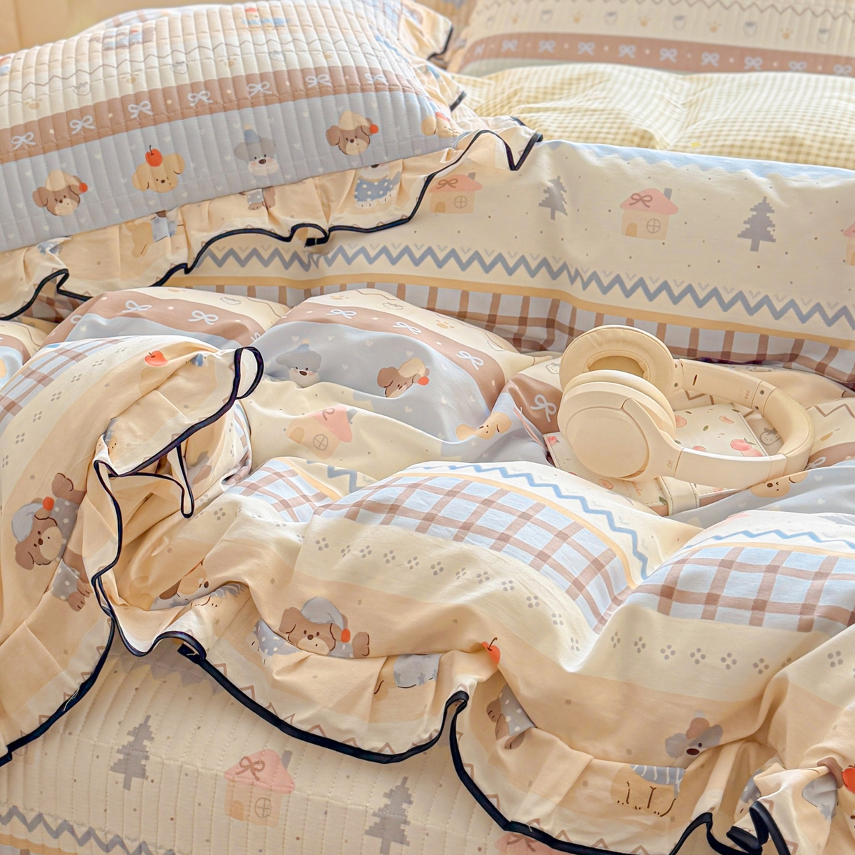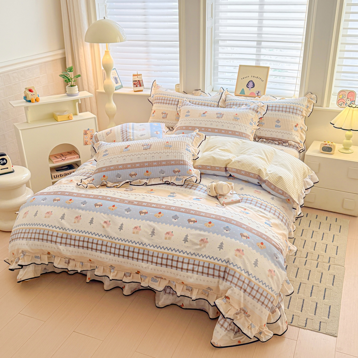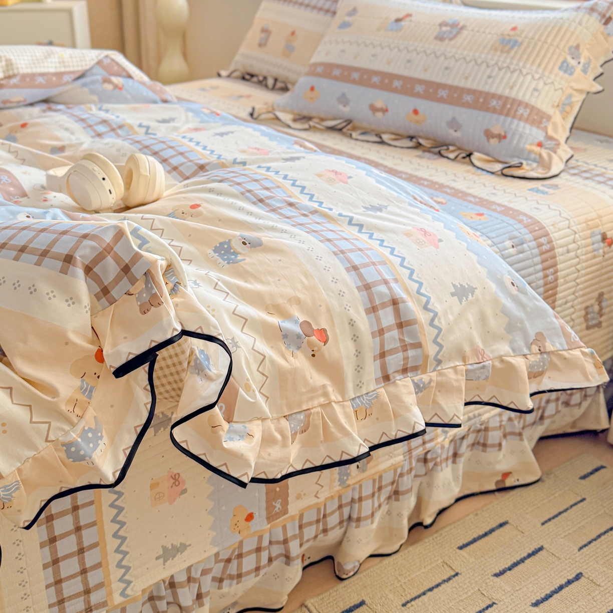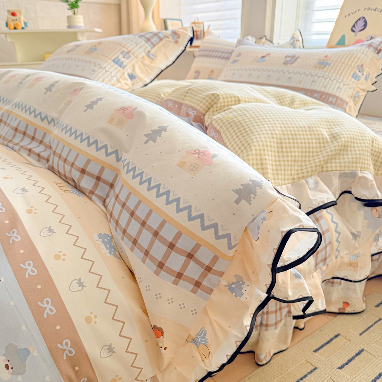 2025新款A类100%全棉磨毛条格卡通系列四件套