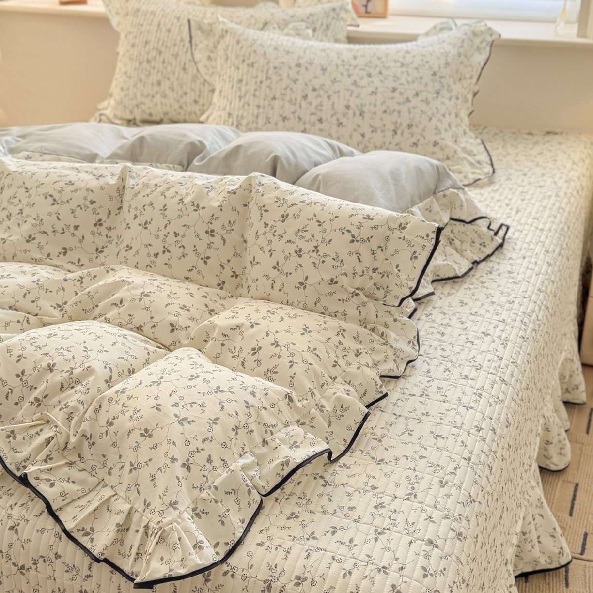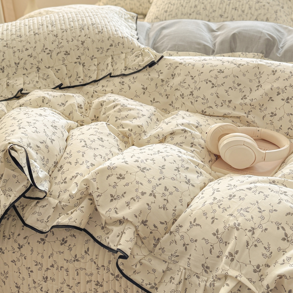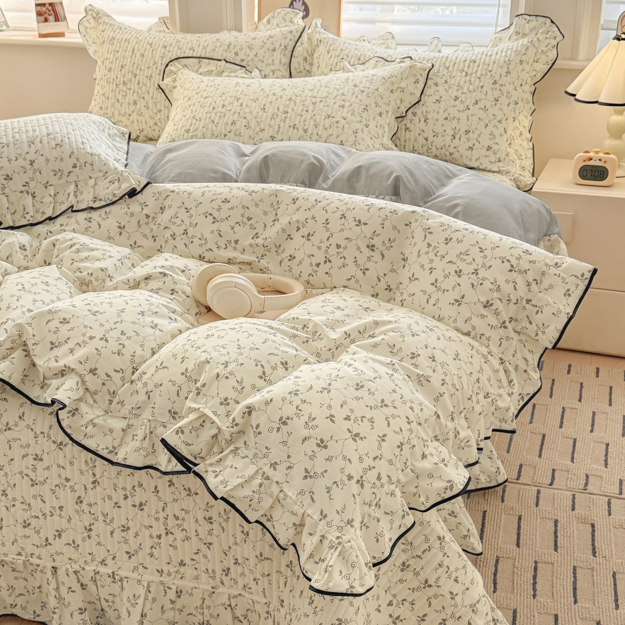 莱登卡奴 2026新款全棉A类小清新花边床盖款系列四件套 花溪