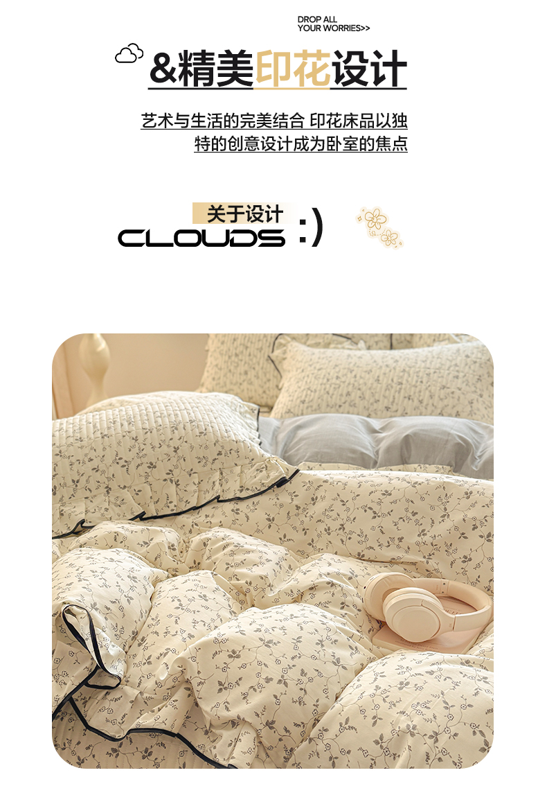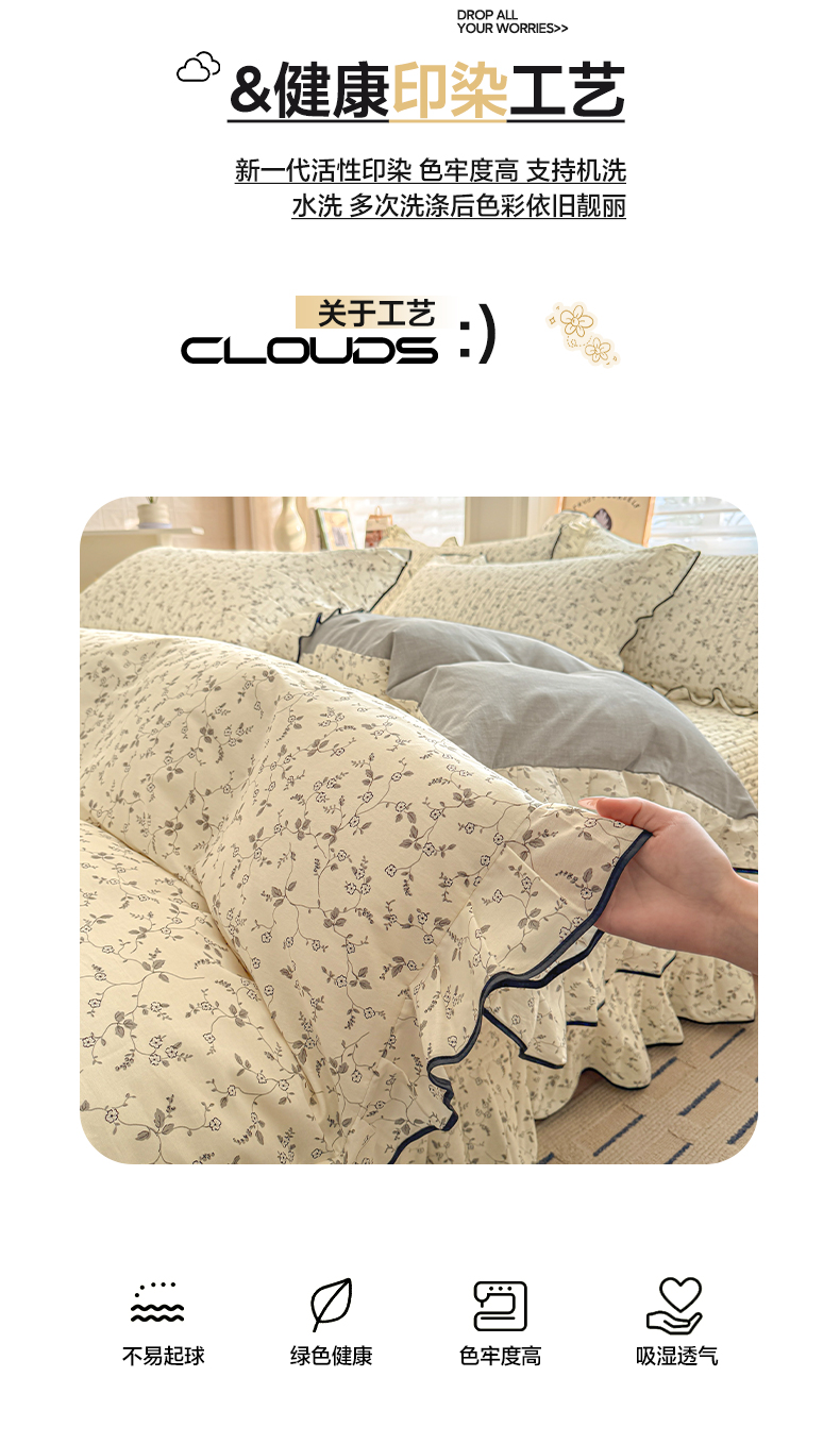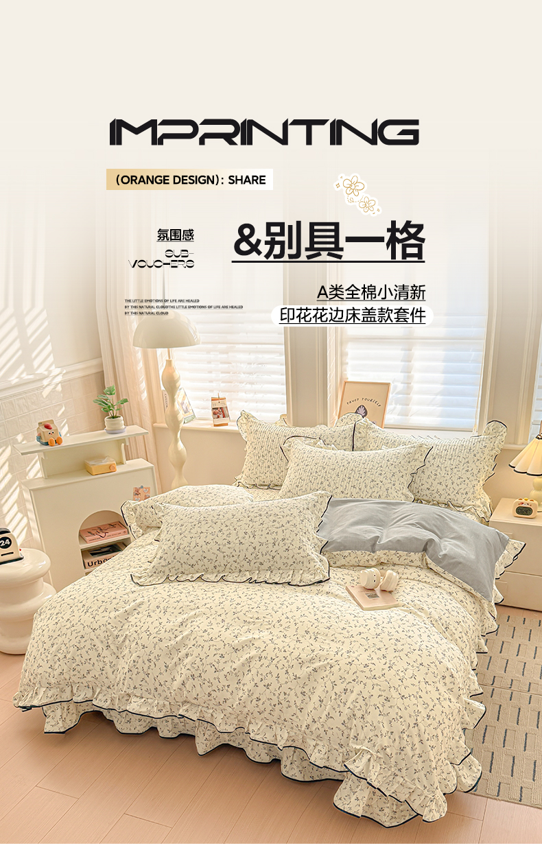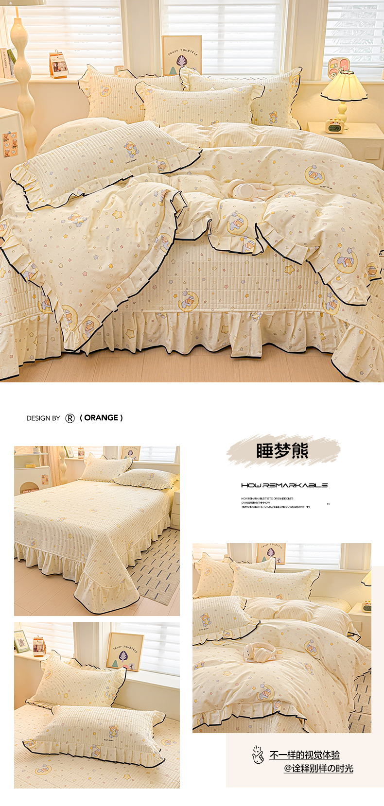 莱登卡奴 2026新款全棉A类小清新花边床盖款系列四件套 花溪
