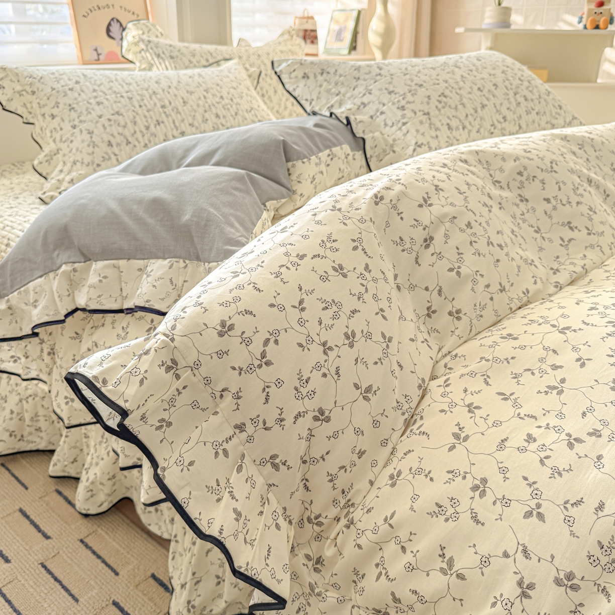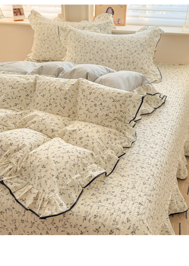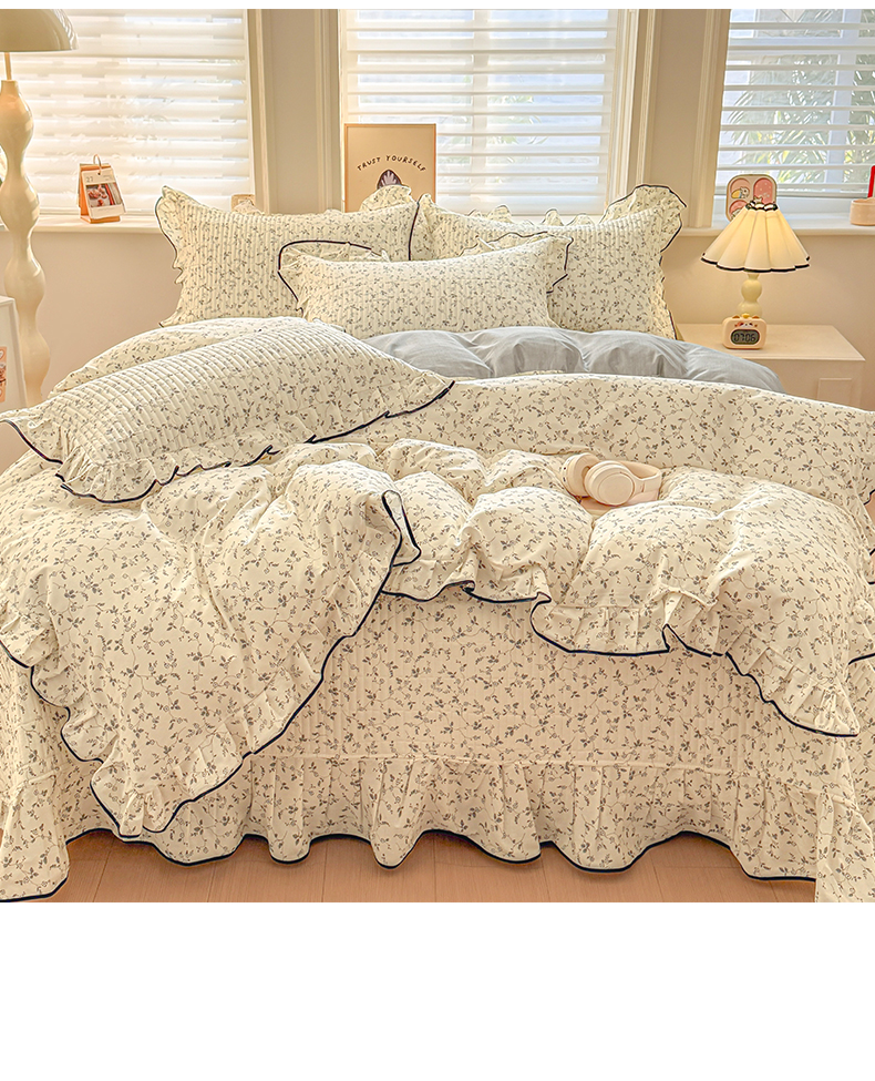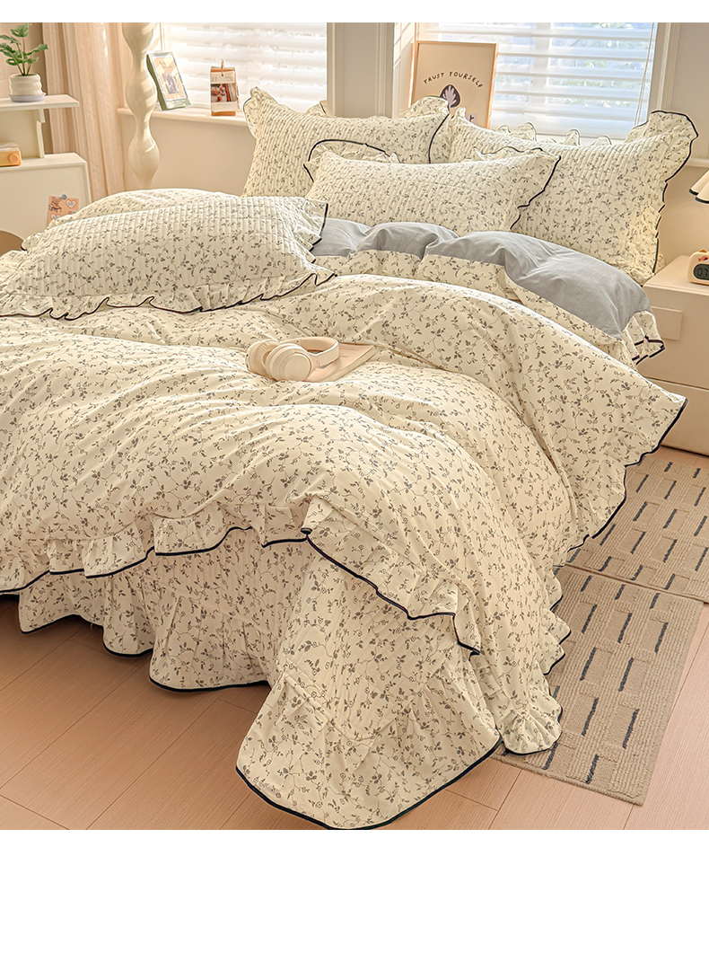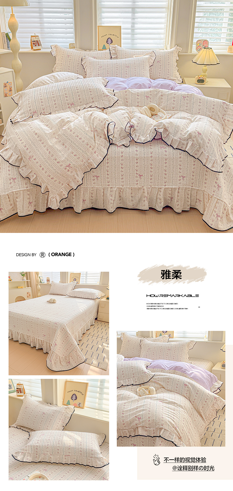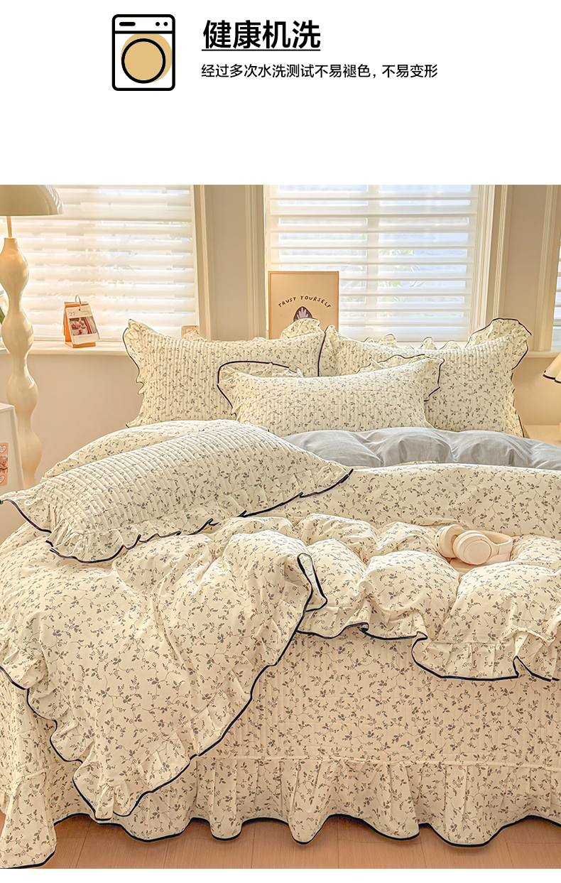 > 莱登卡奴 2026新款全棉A类小清新花边床盖款系列四件套 花溪