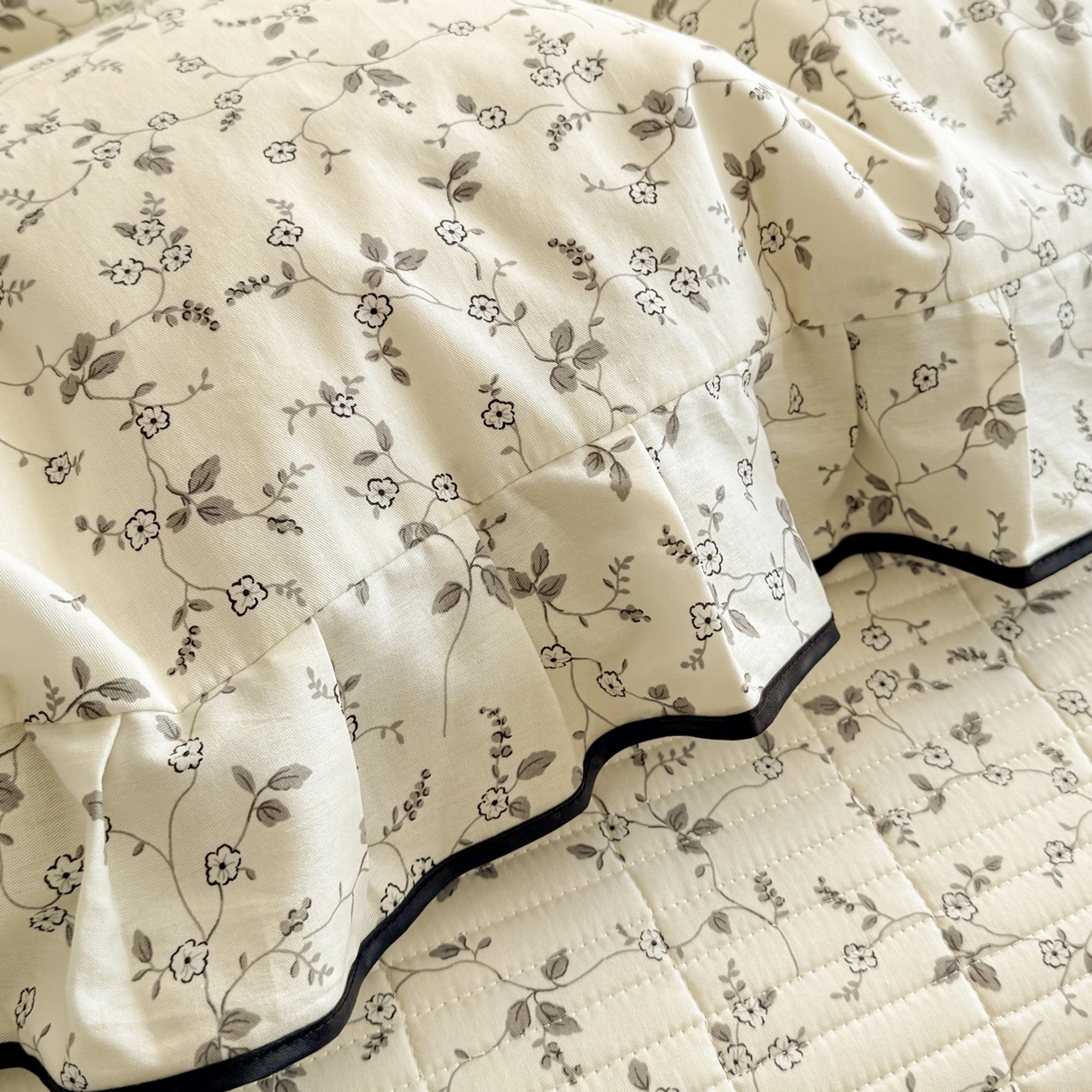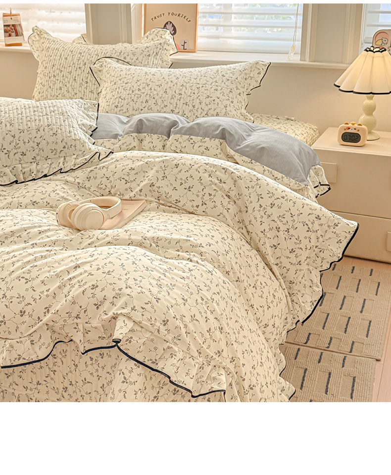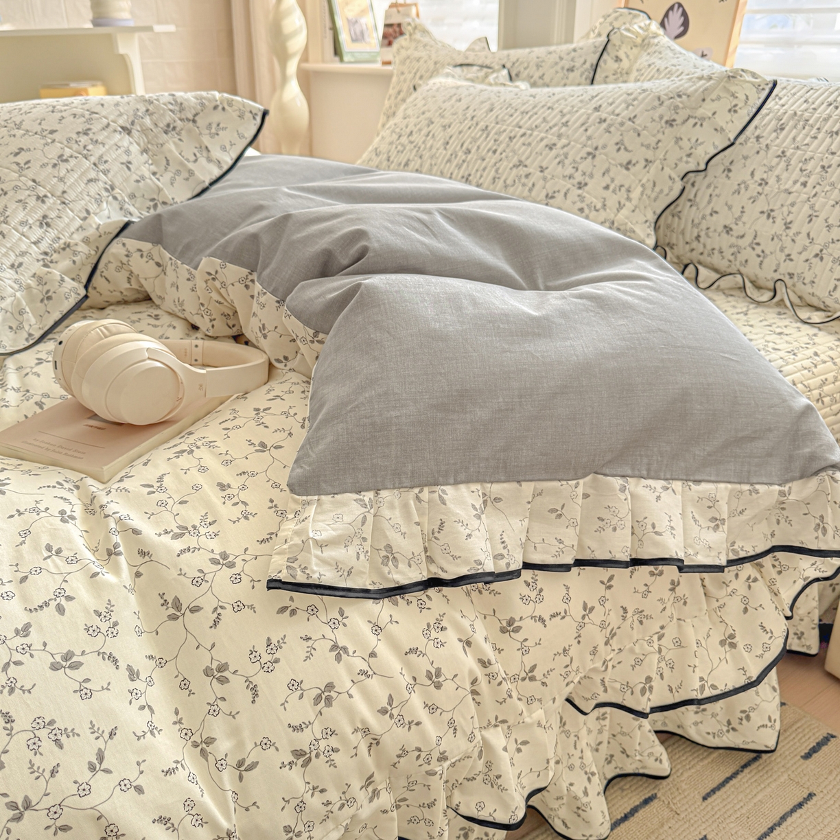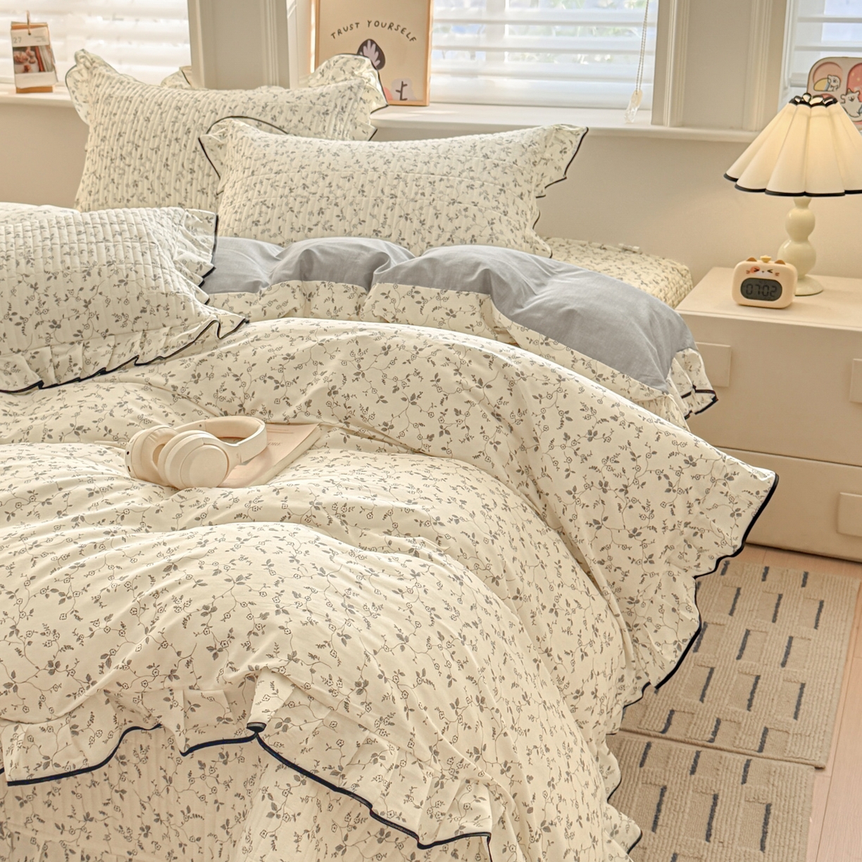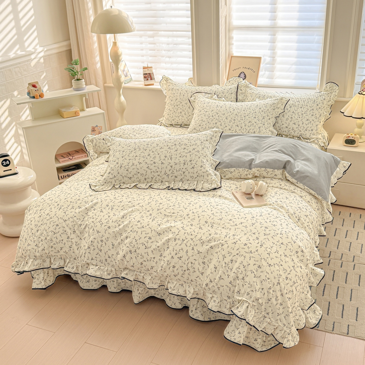 > 莱登卡奴 2026新款全棉A类小清新花边床盖款系列四件套 花溪