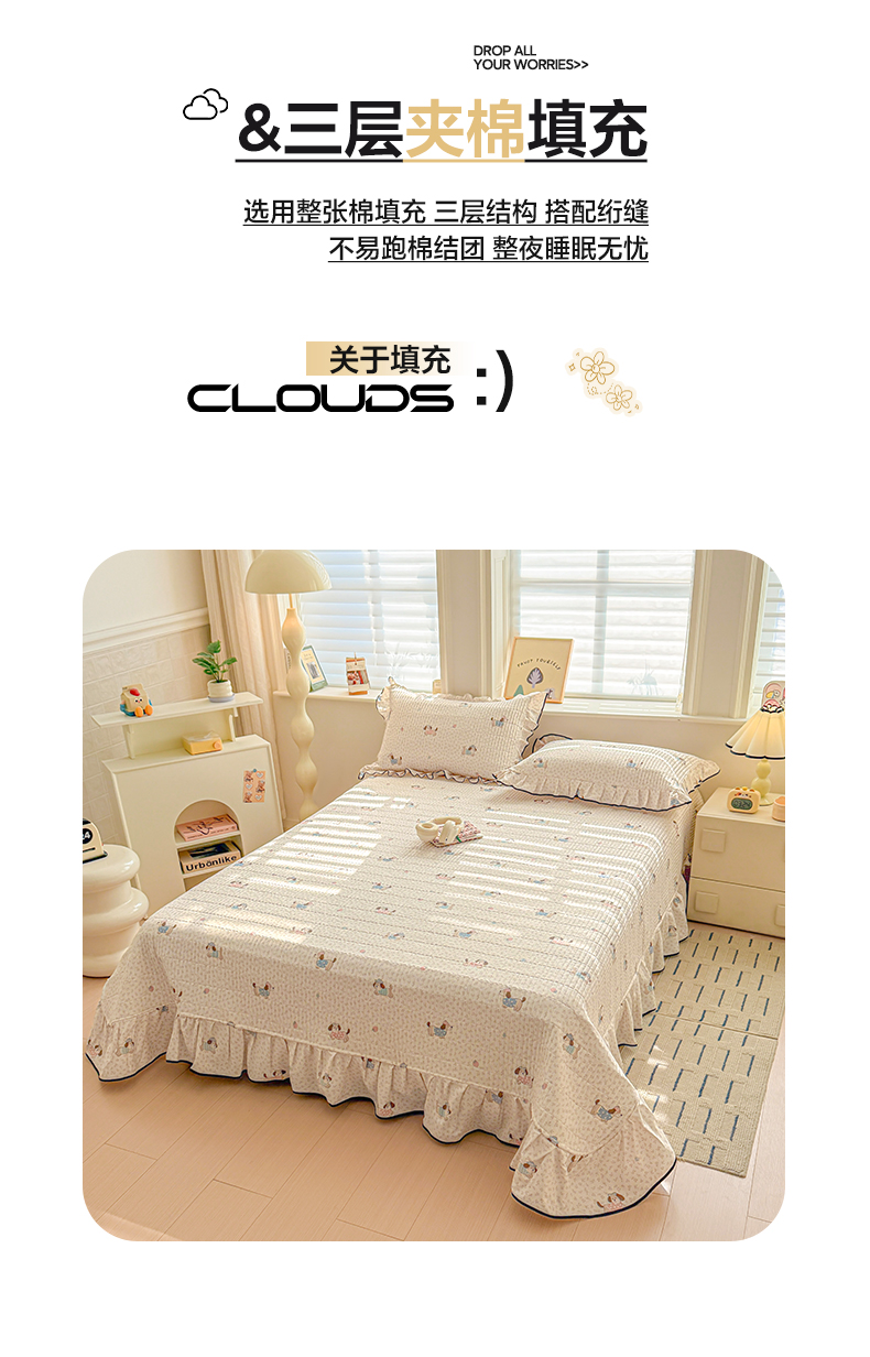 2025新款全棉磨毛加绒夹棉床盖卡通系列