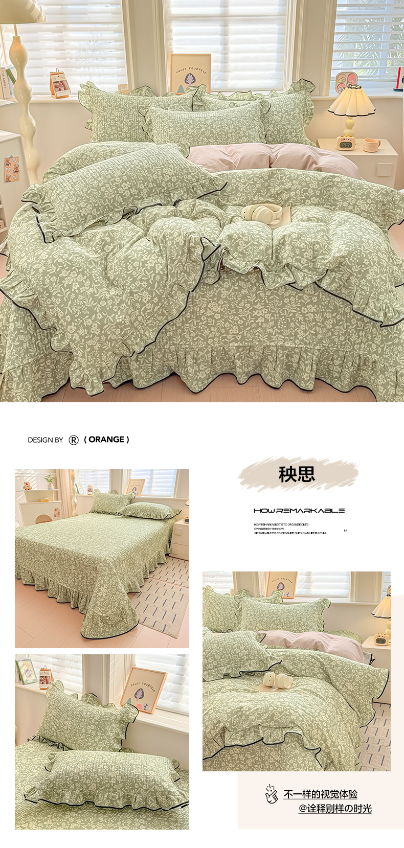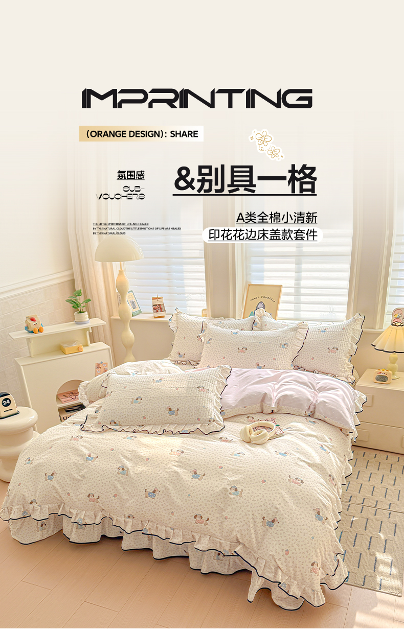 2026新款全棉A类小清新花边床盖款系列四件套
