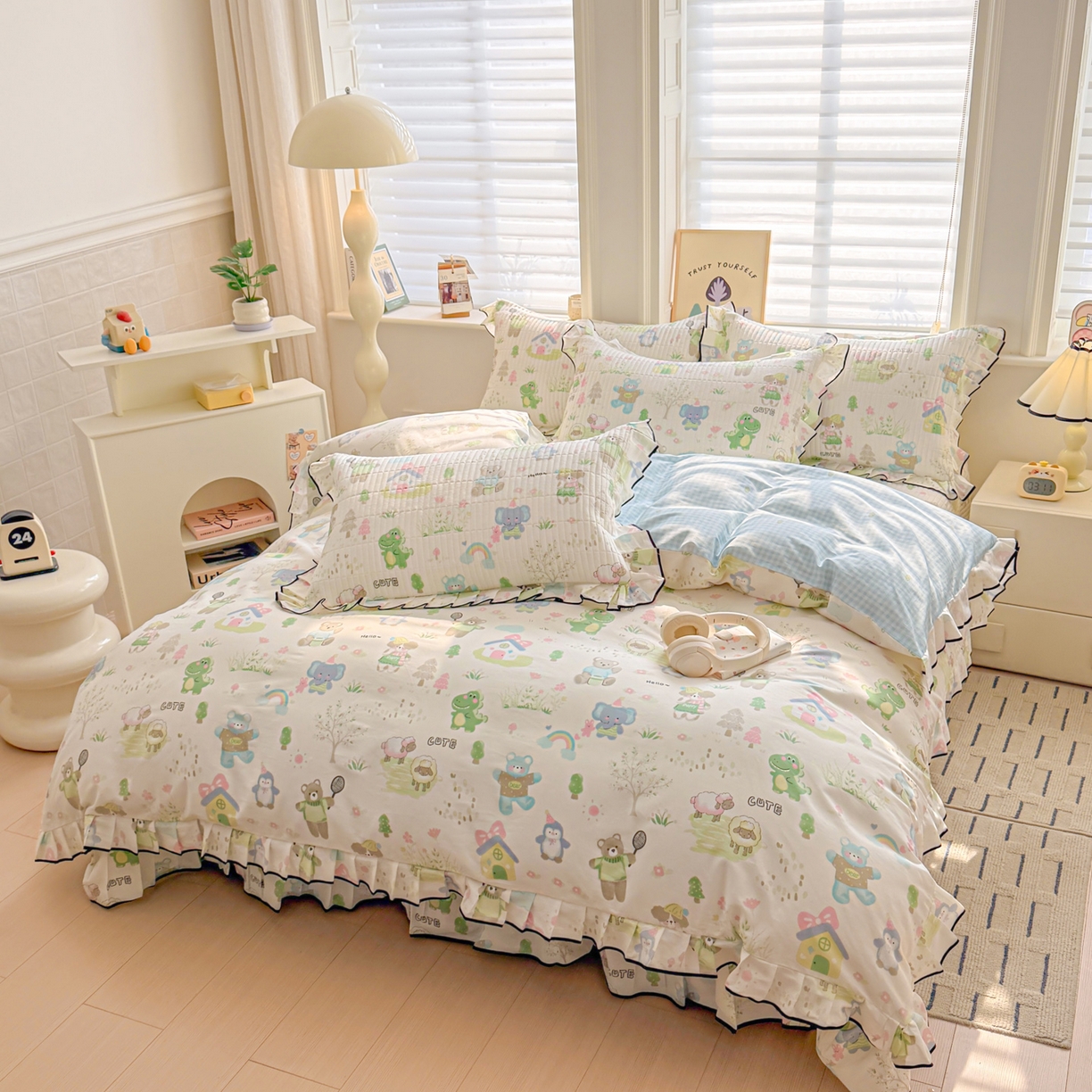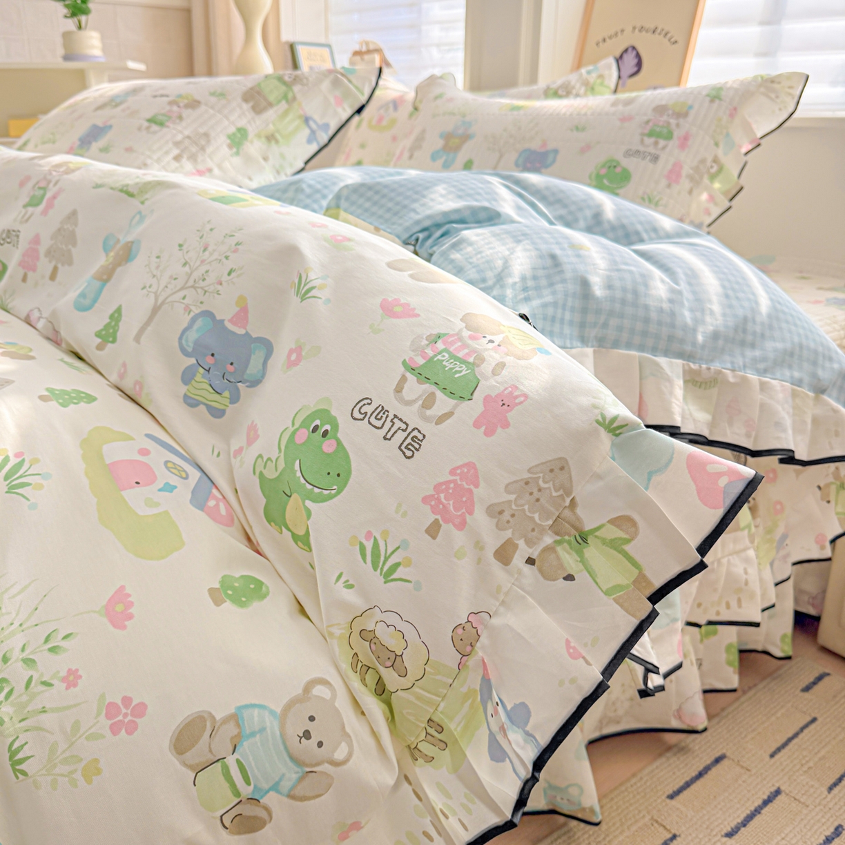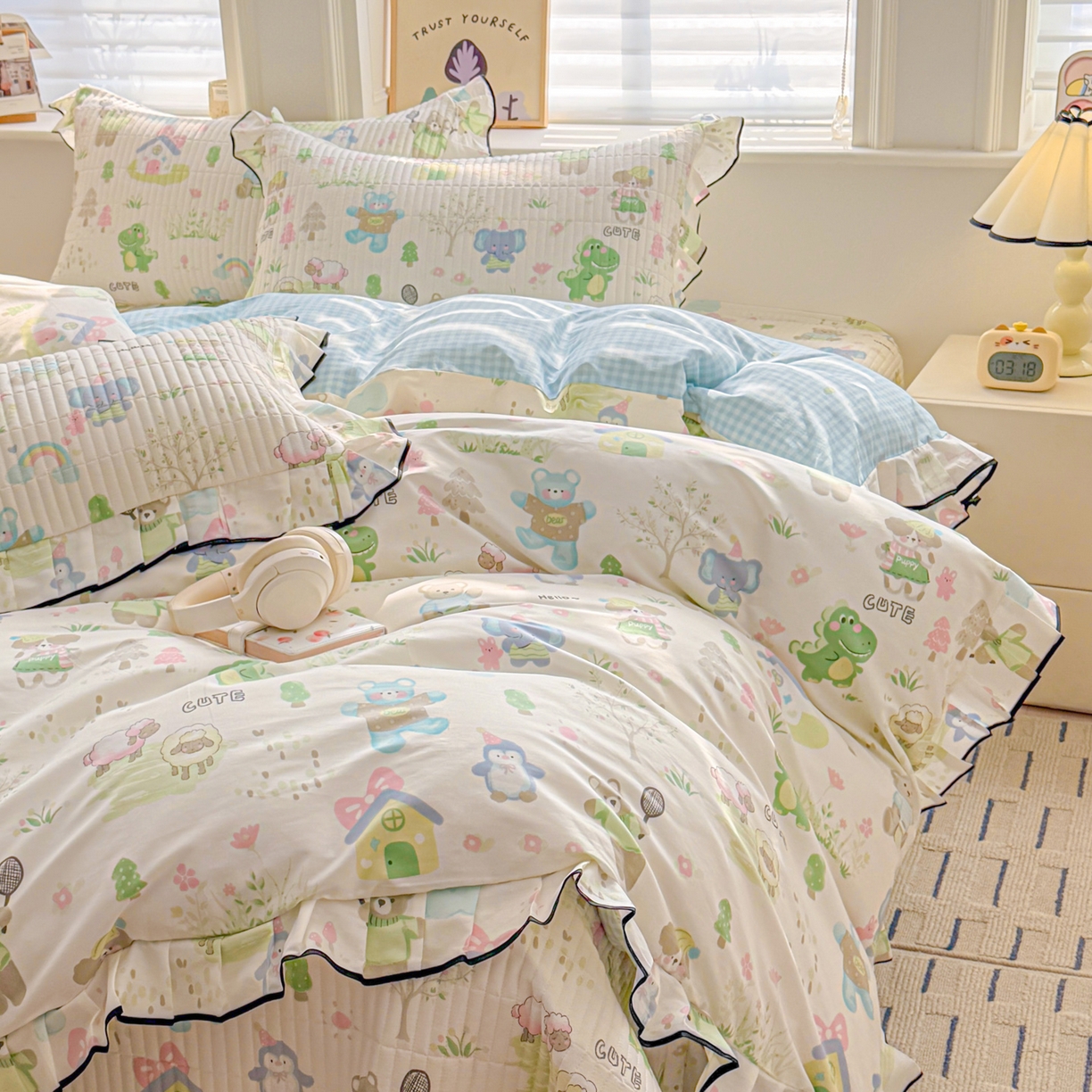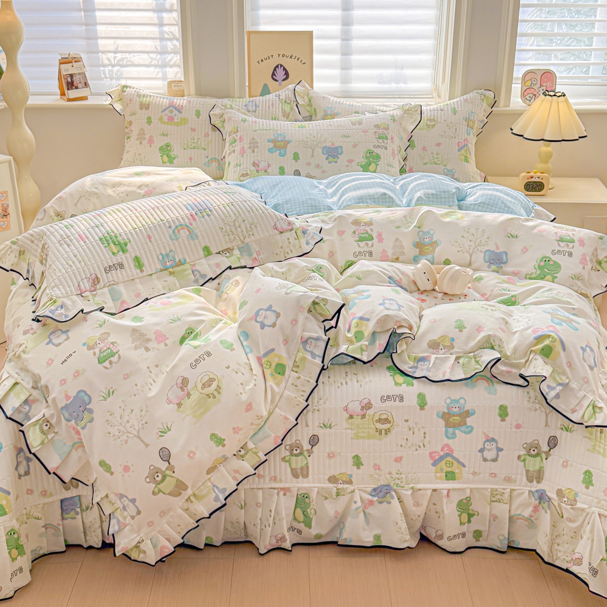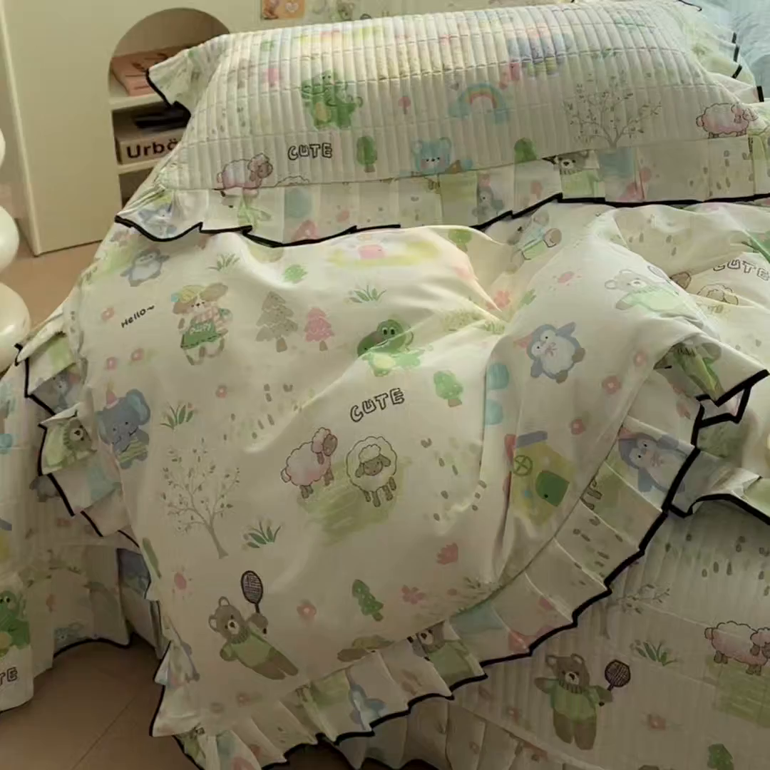 莱登卡奴 2026新款全棉A类小清新花边床盖款系列四件套 妙趣乐园
