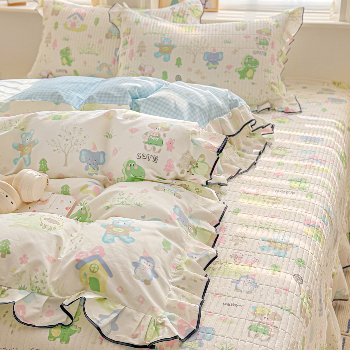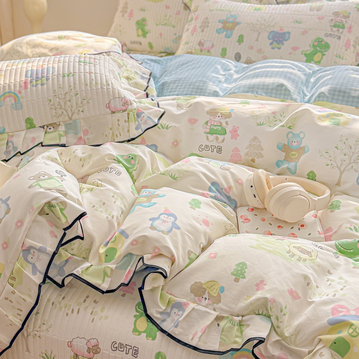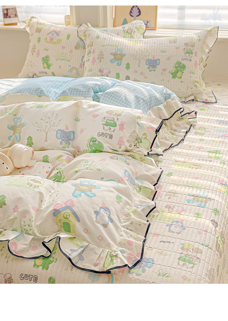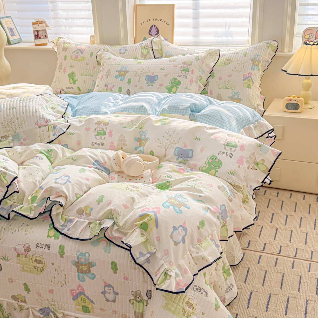 莱登卡奴 2026新款全棉A类小清新花边床盖款系列四件套 妙趣乐园
