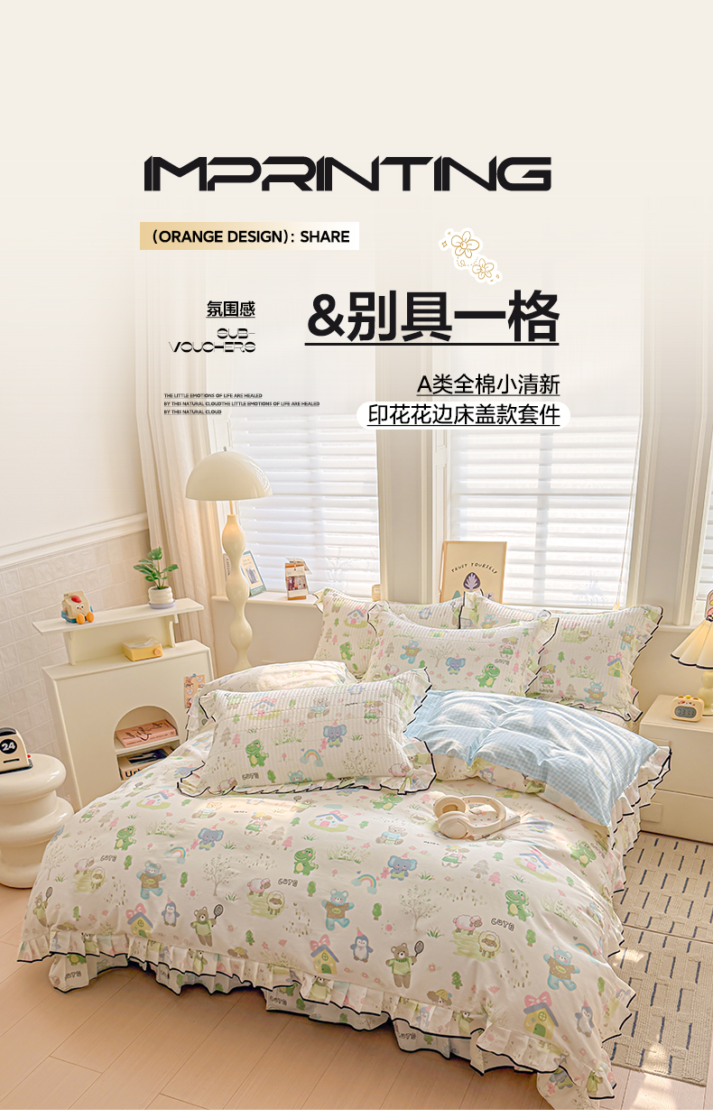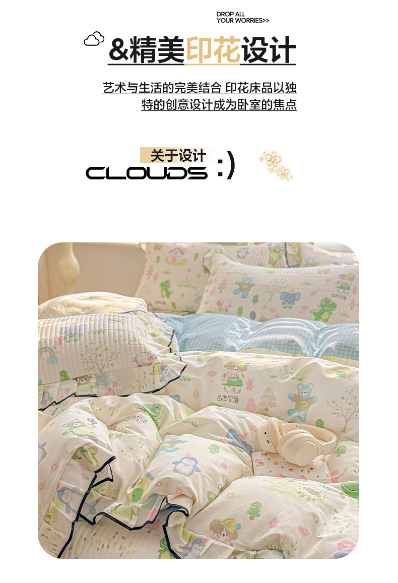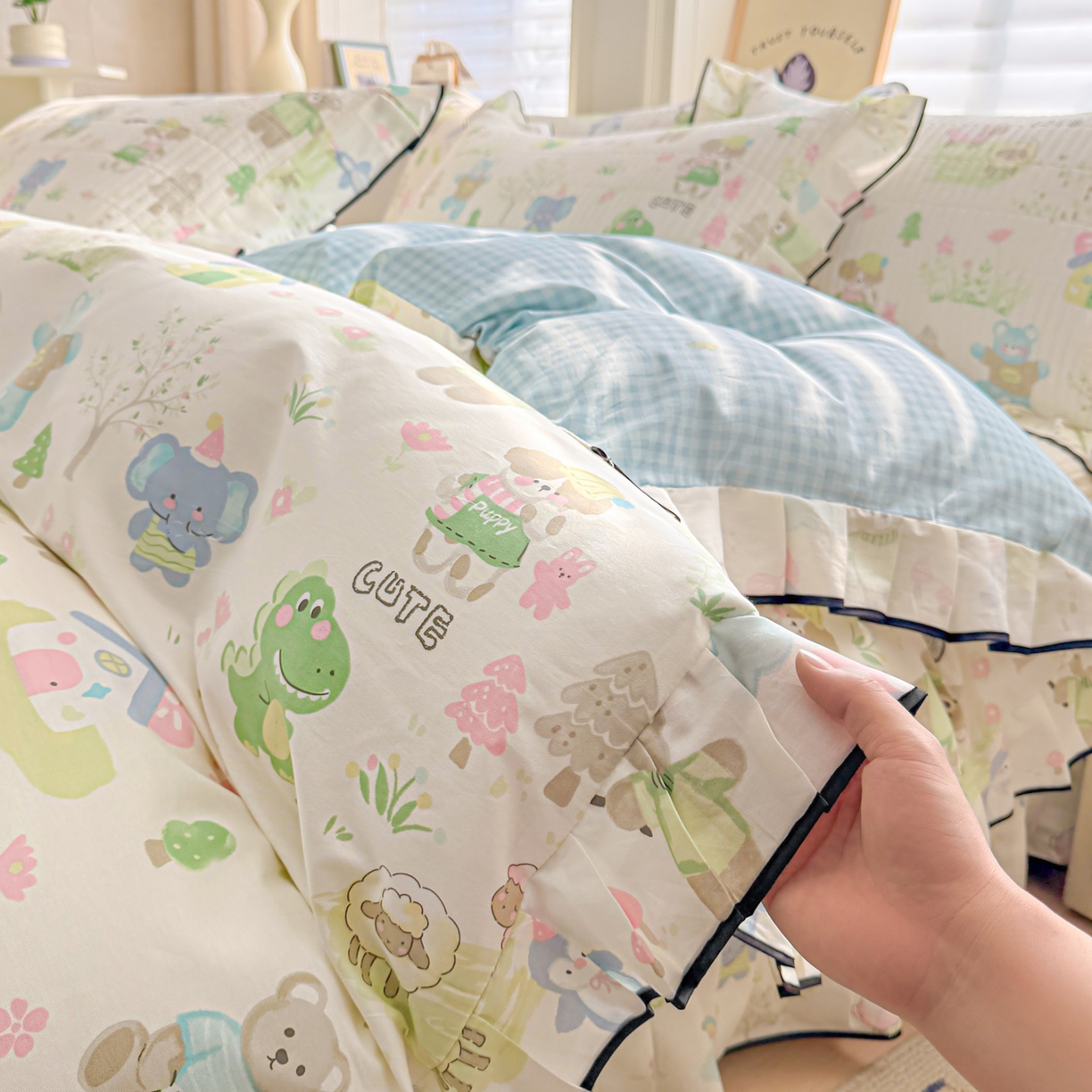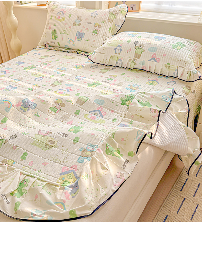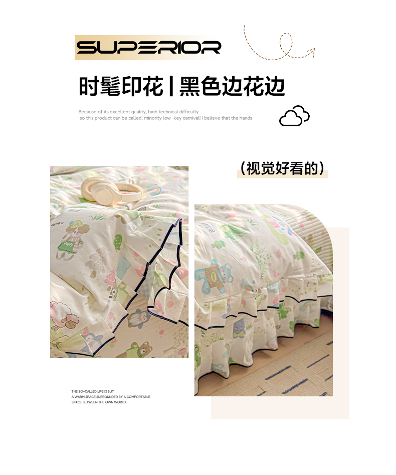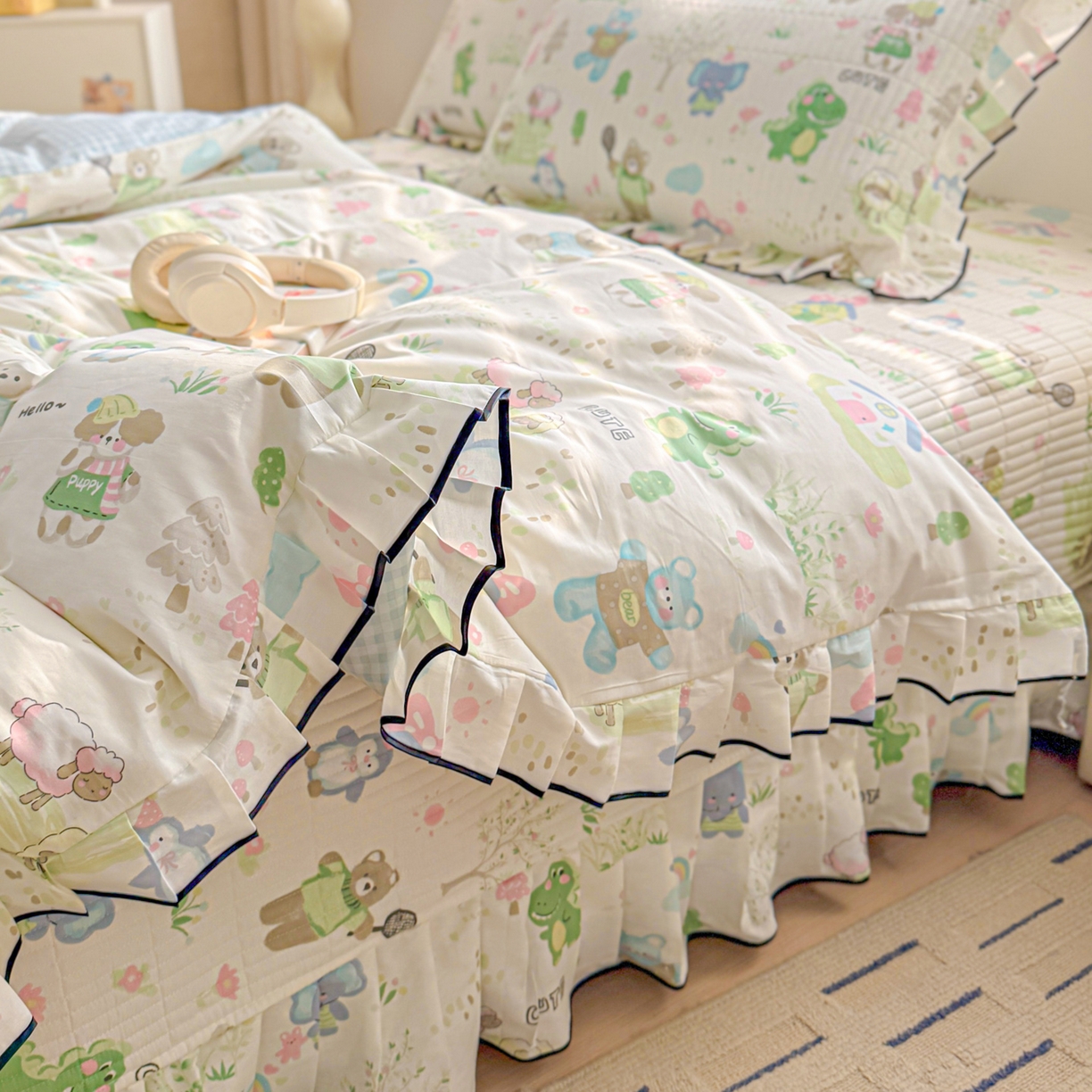 莱登卡奴 2026新款全棉A类小清新花边床盖款系列四件套 妙趣乐园