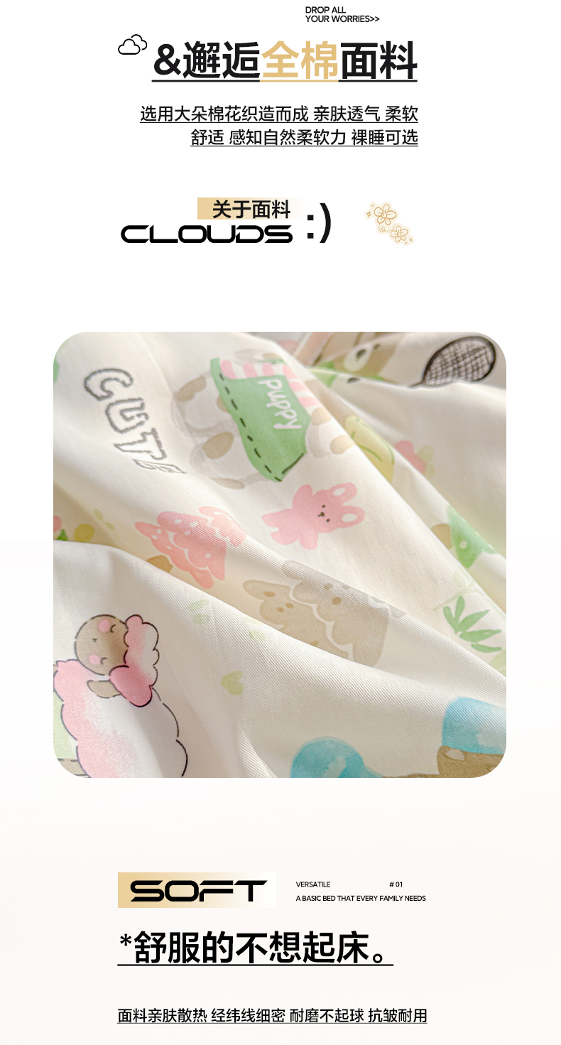 2025新款A类100%全棉磨毛条格卡通单品系列