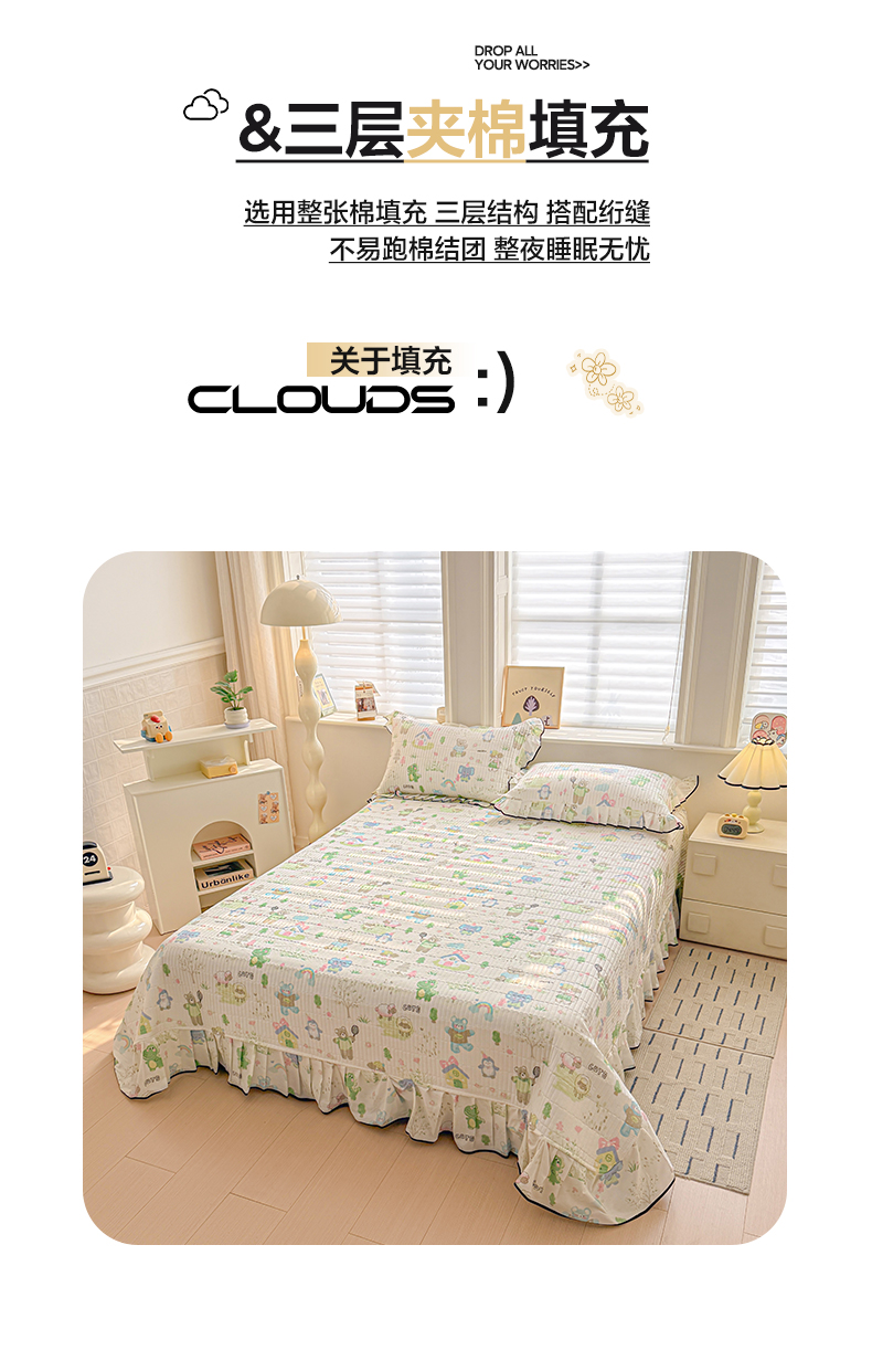 2025新款全棉磨毛加绒夹棉床盖卡通系列