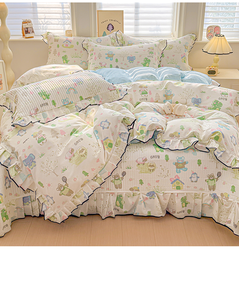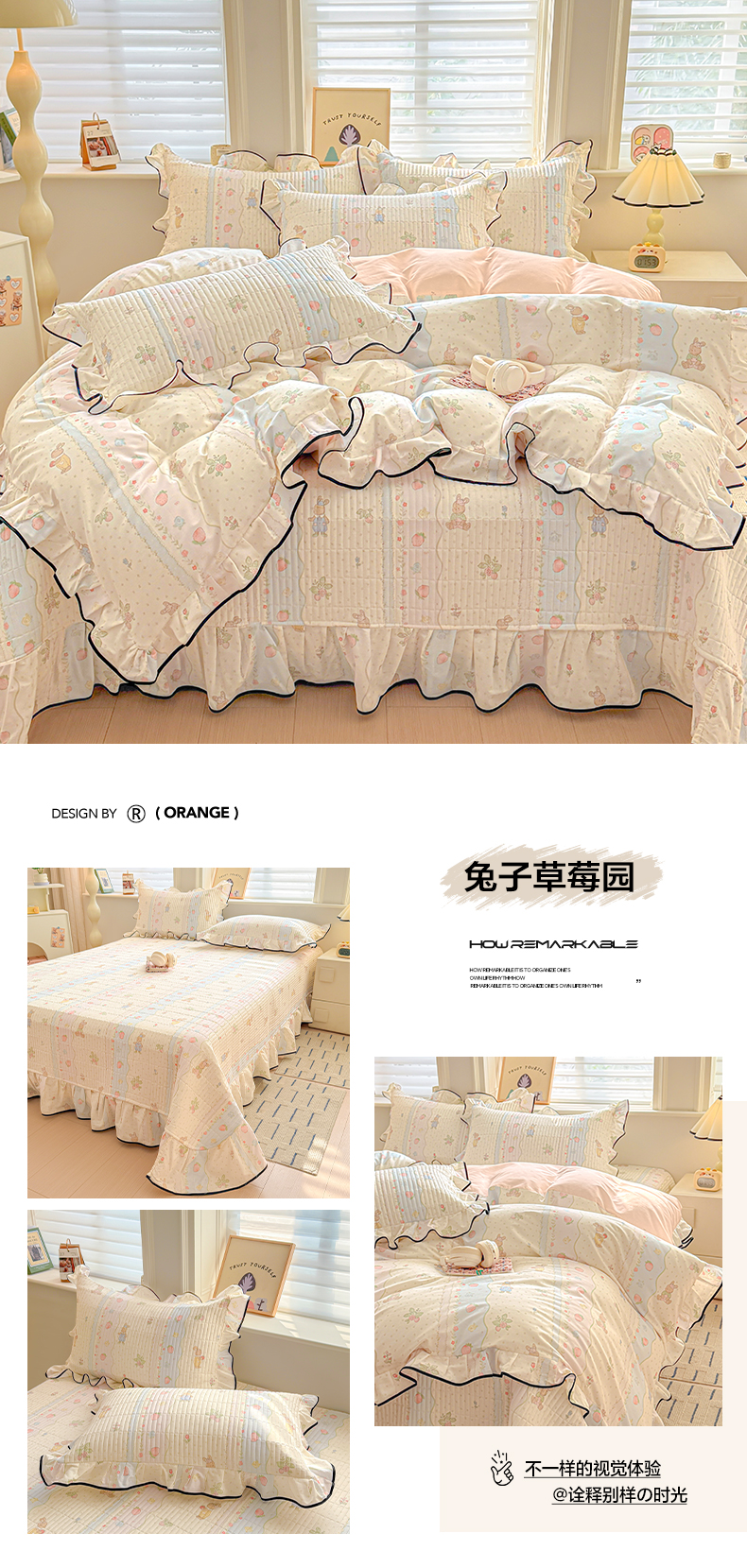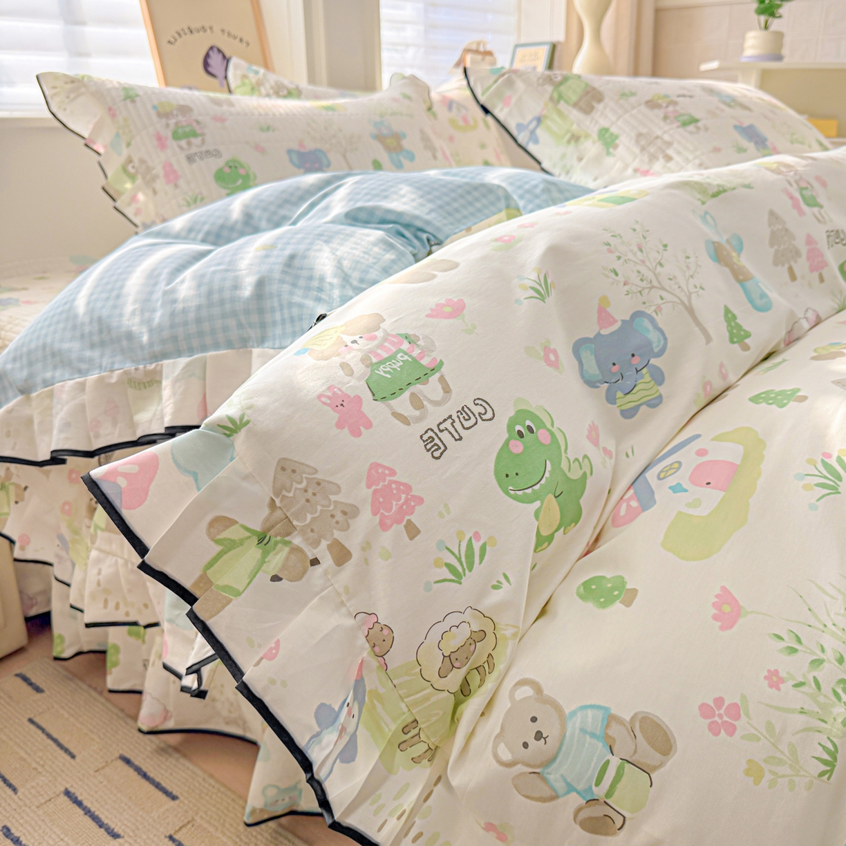 > 莱登卡奴 2026新款全棉A类小清新花边床盖款系列四件套 妙趣乐园