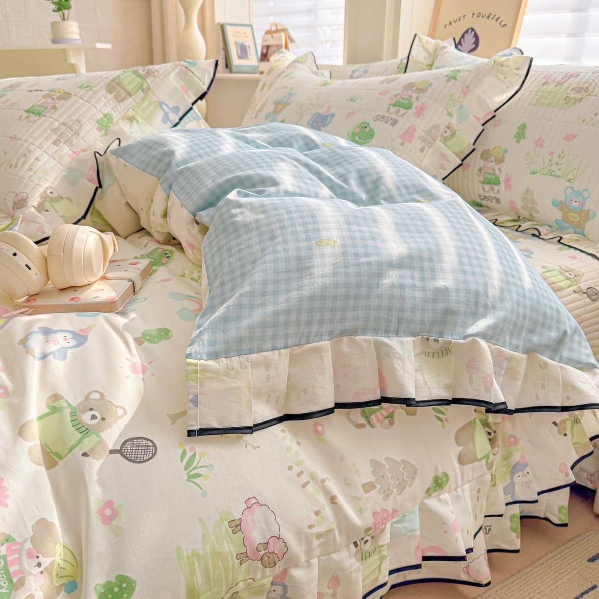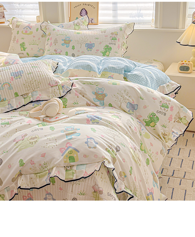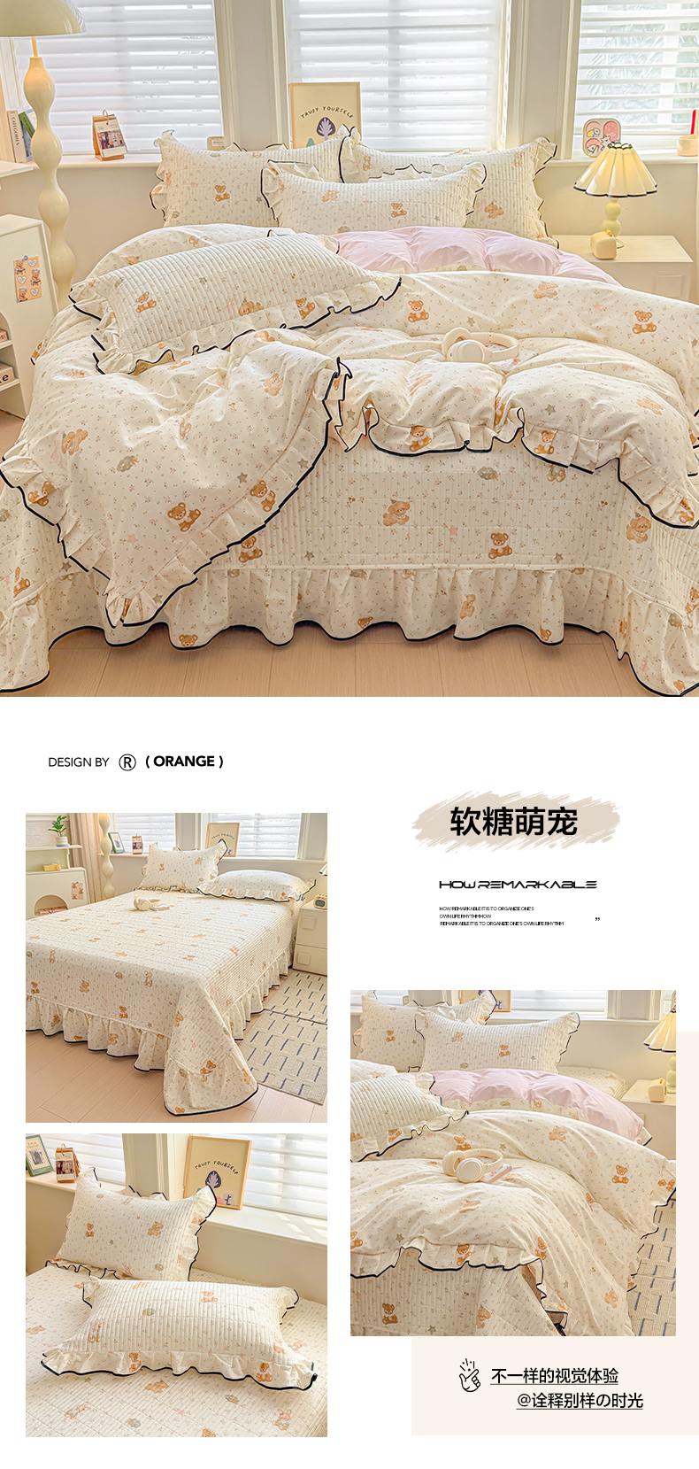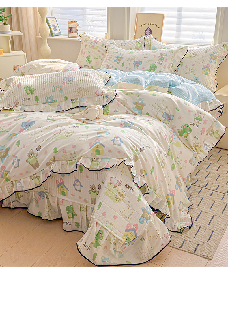 > 莱登卡奴 2026新款全棉A类小清新花边床盖款系列四件套 妙趣乐园