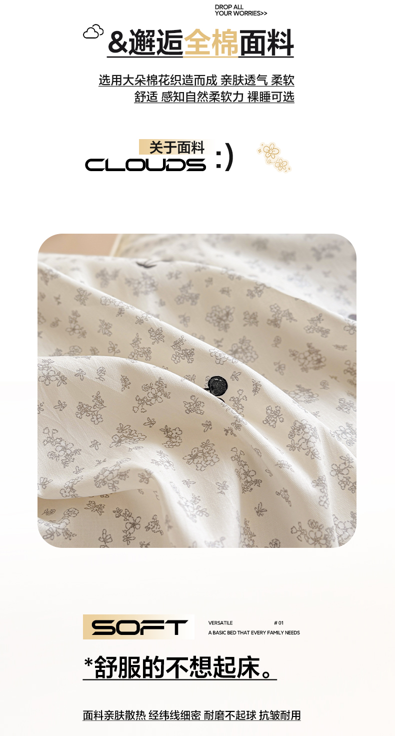 2025新款A类原棉磨毛大豆夹棉床笠云纹系列