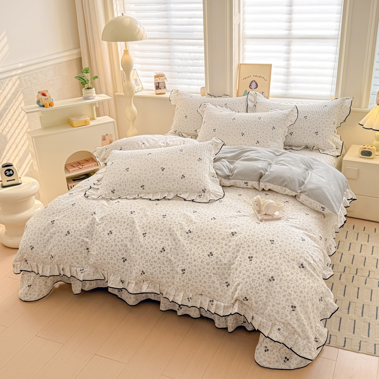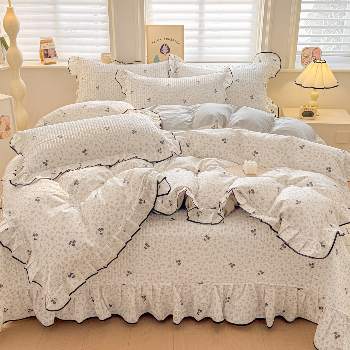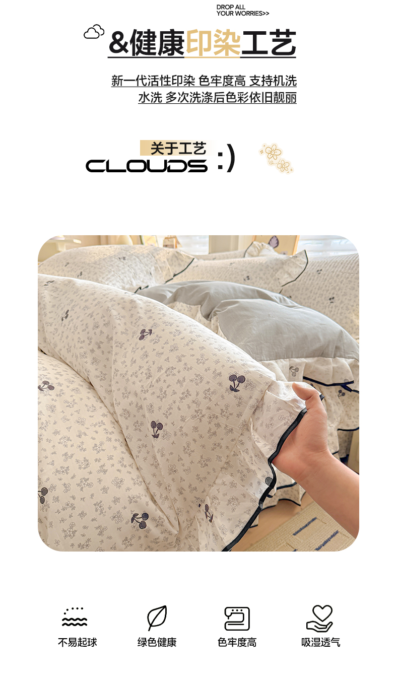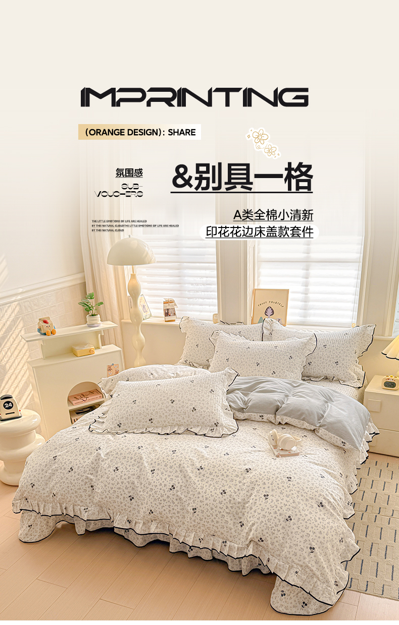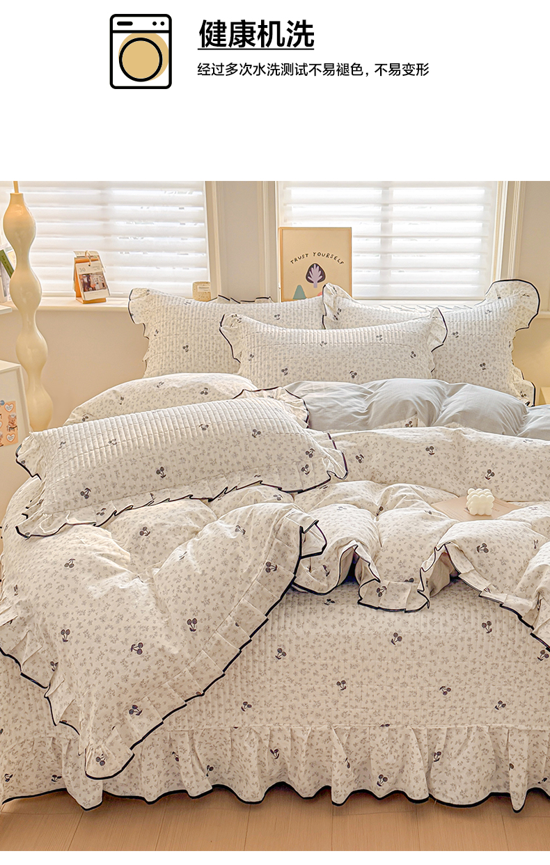 2026新款全棉A类小清新花边床盖款系列四件套