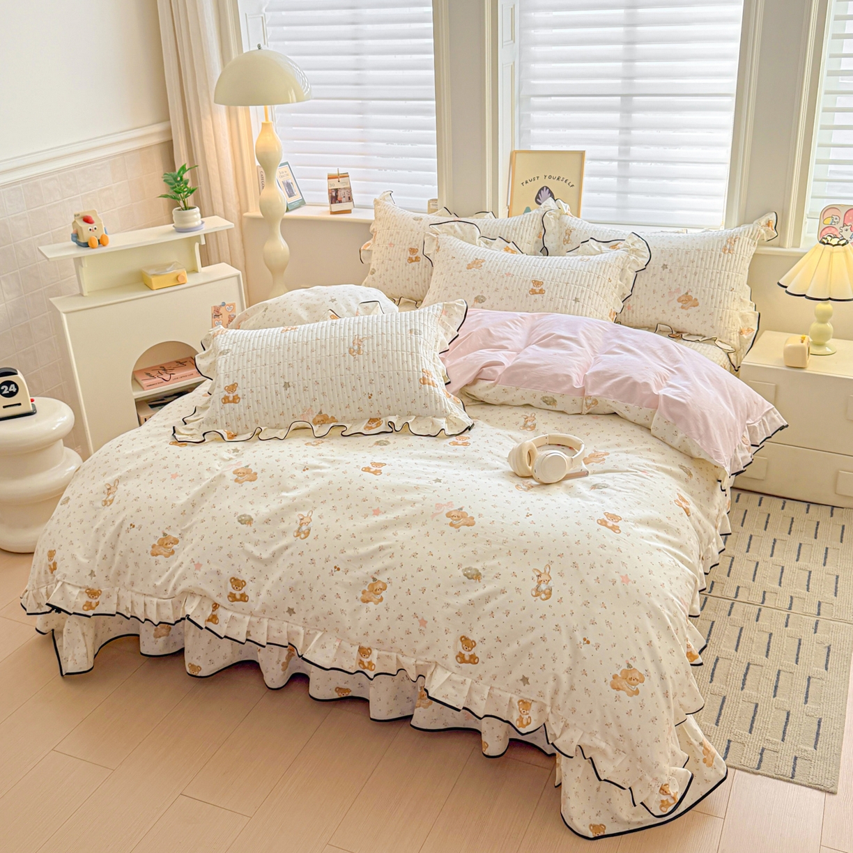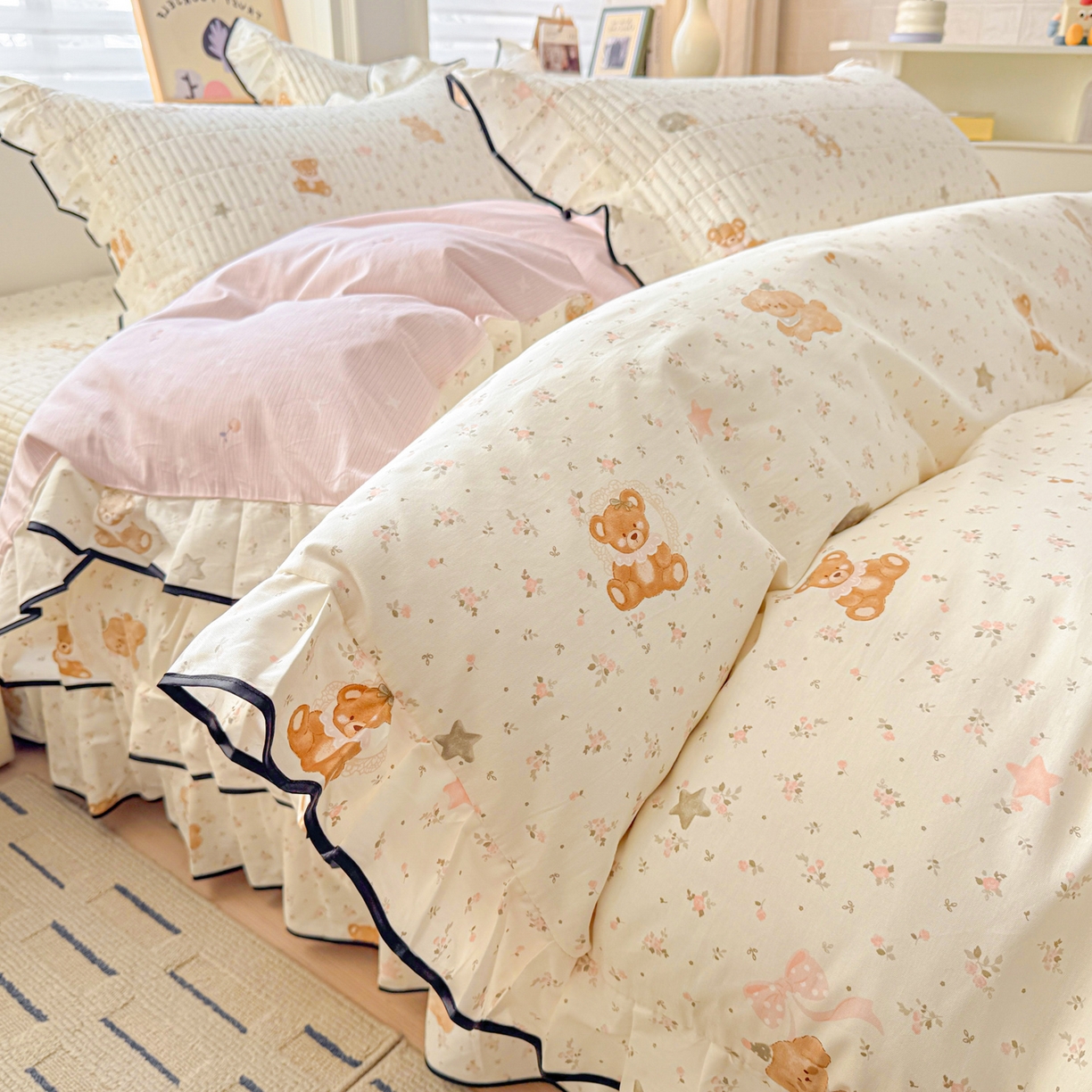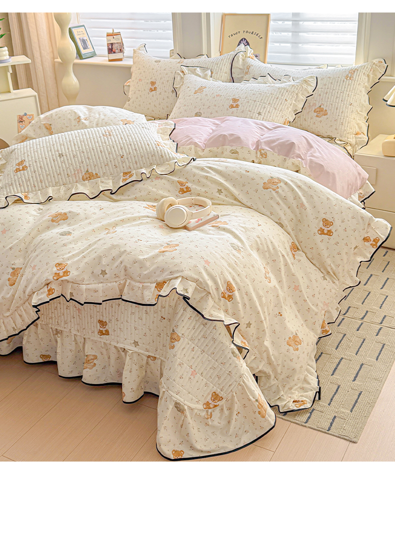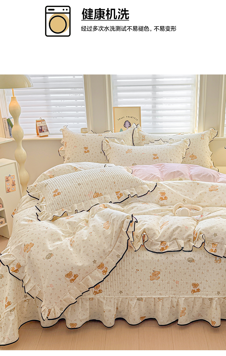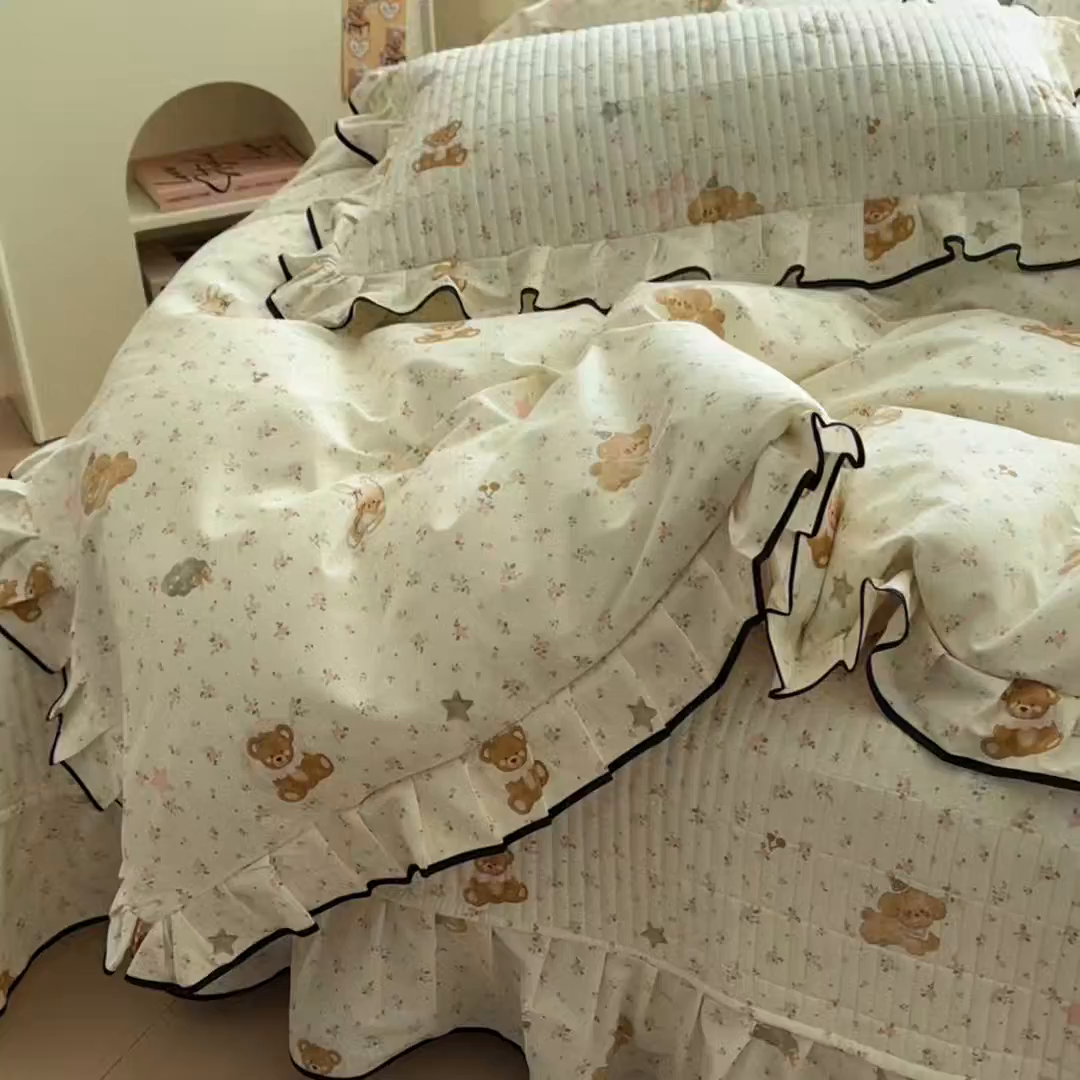 > 莱登卡奴 2026新款全棉A类小清新花边床盖款系列四件套 软糖萌宠