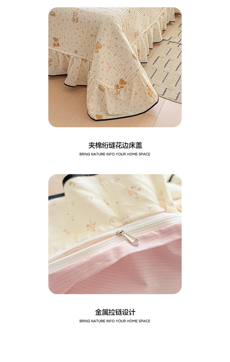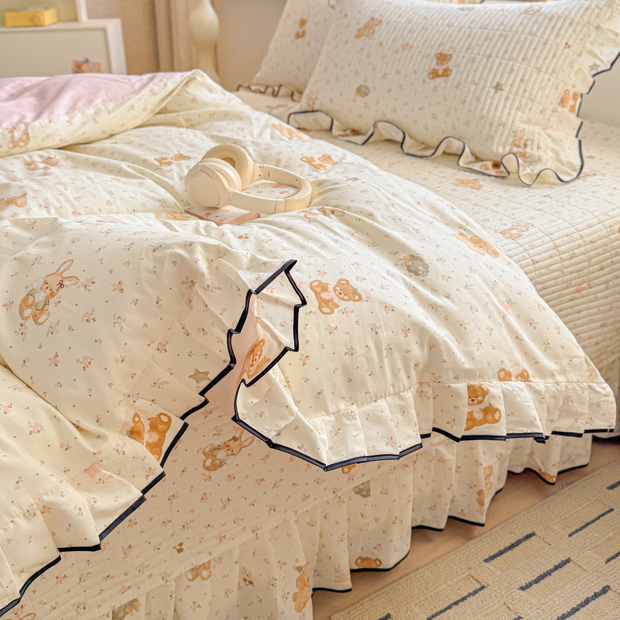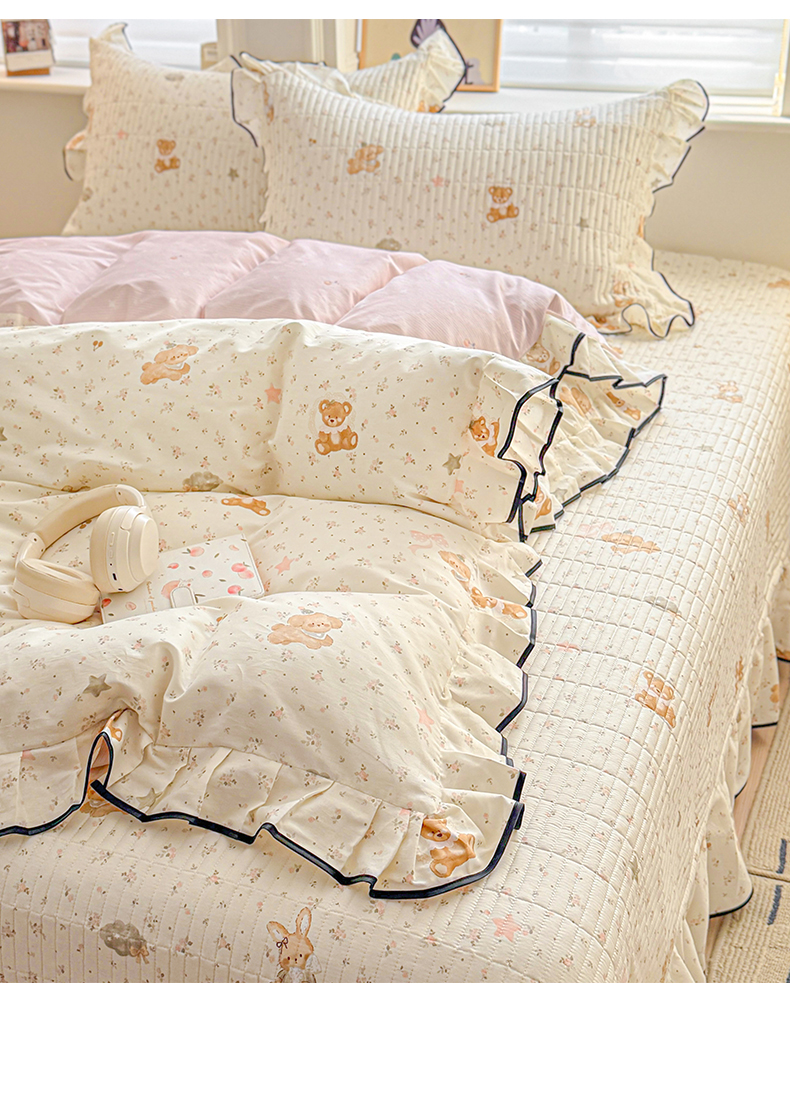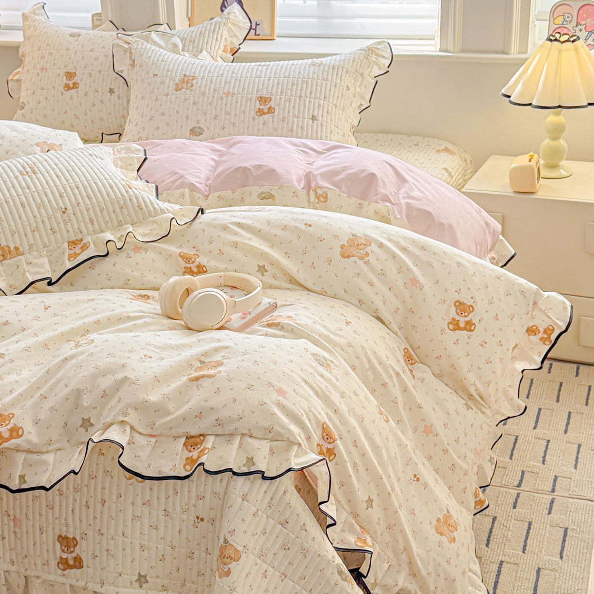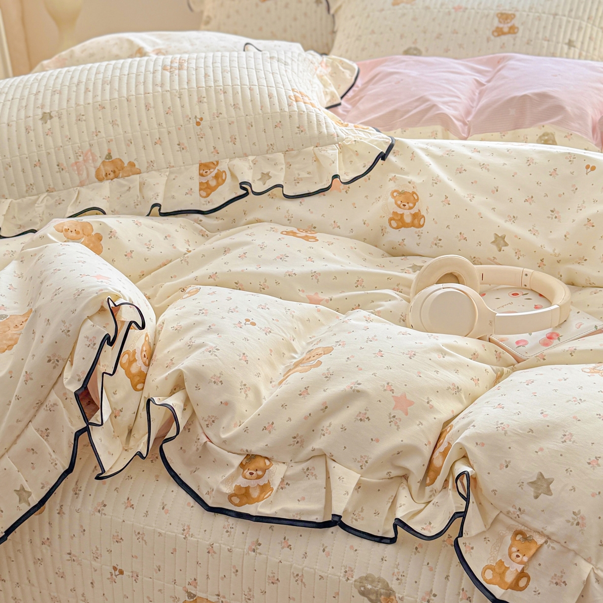> 莱登卡奴 2026新款全棉A类小清新花边床盖款系列四件套 软糖萌宠
