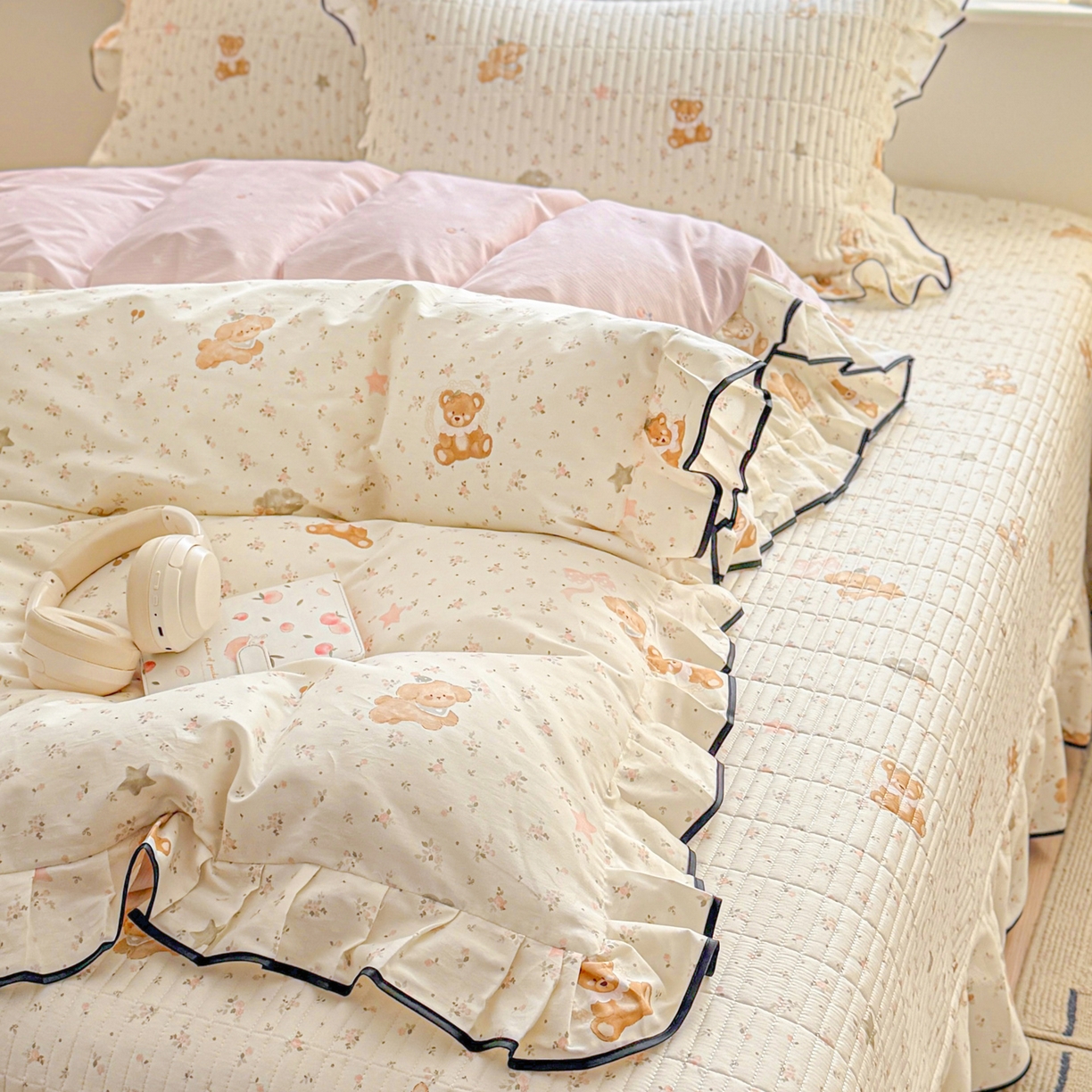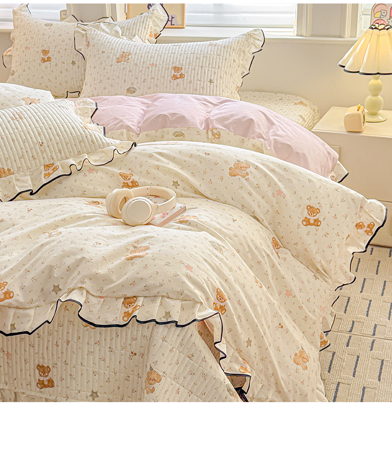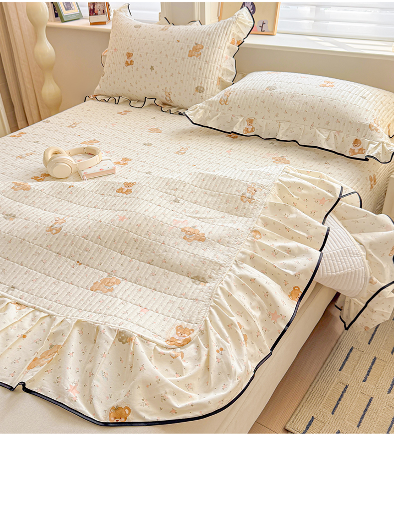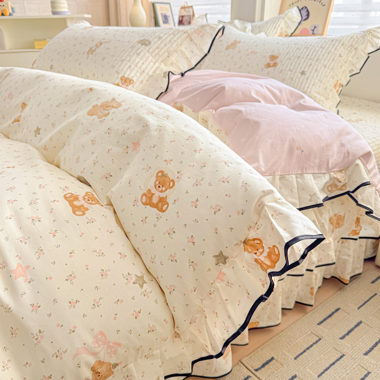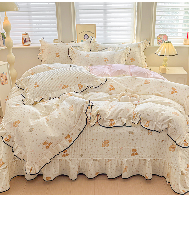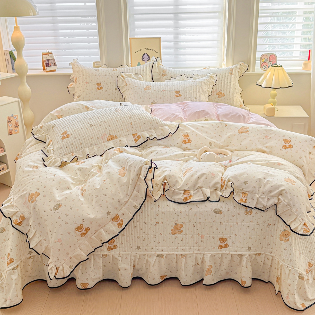 > 莱登卡奴 2026新款全棉A类小清新花边床盖款系列四件套 软糖萌宠