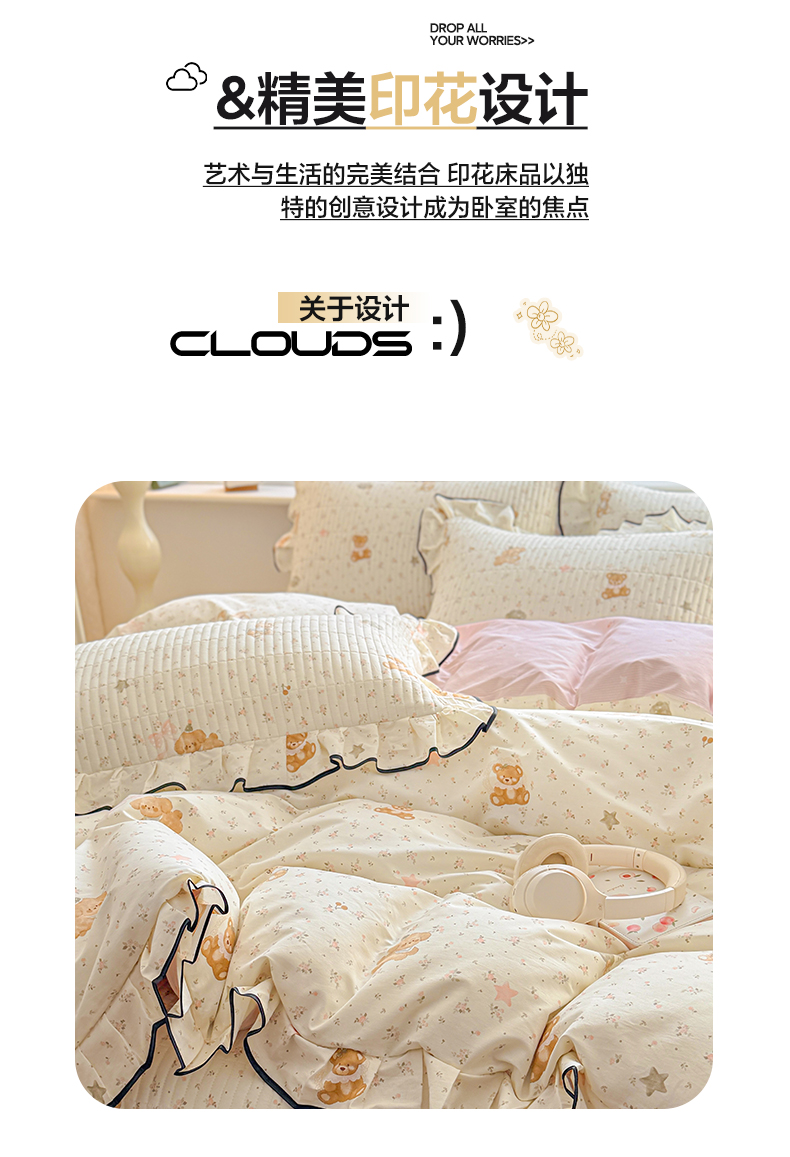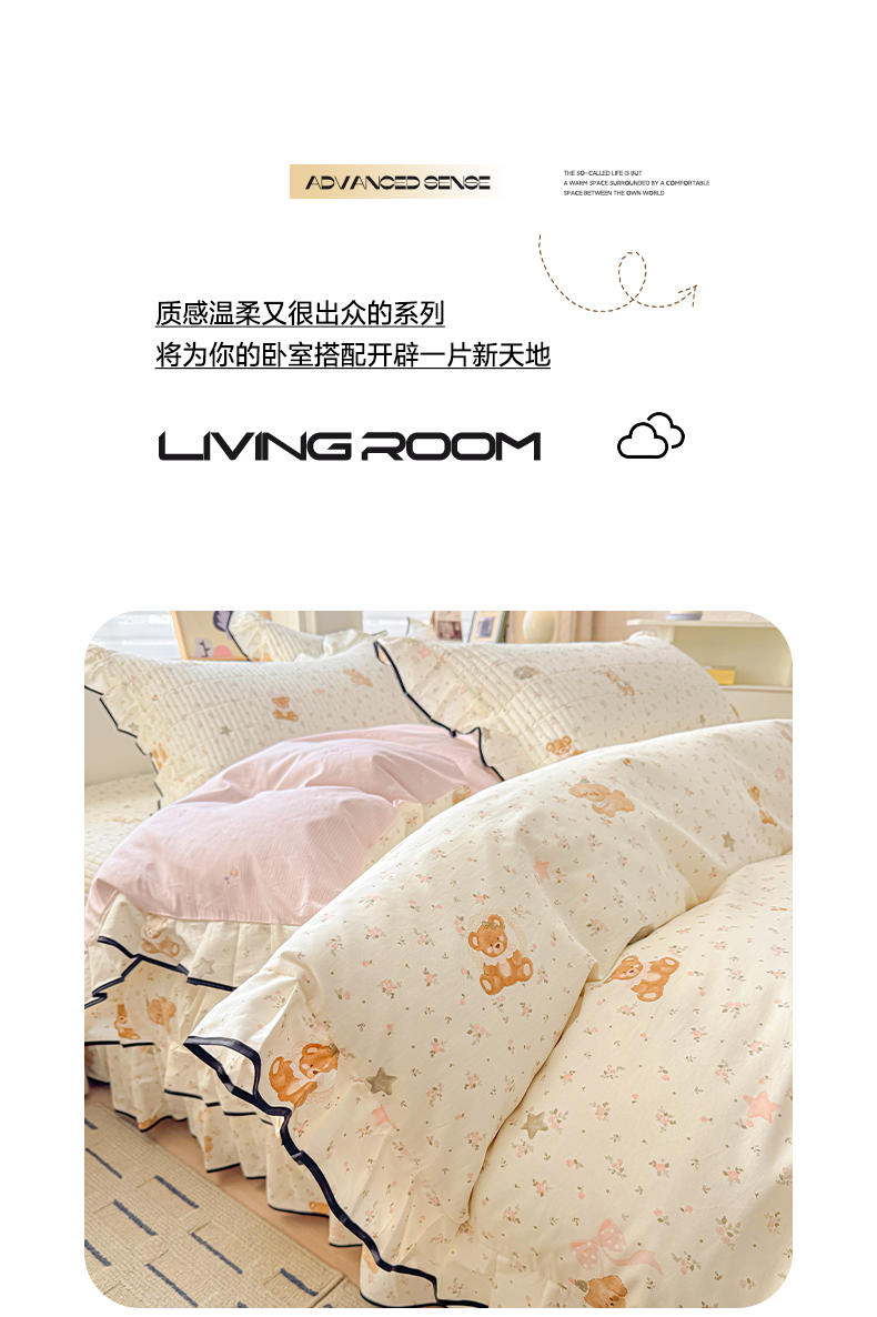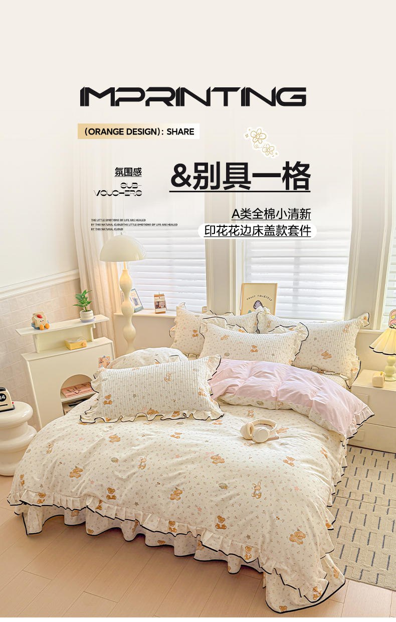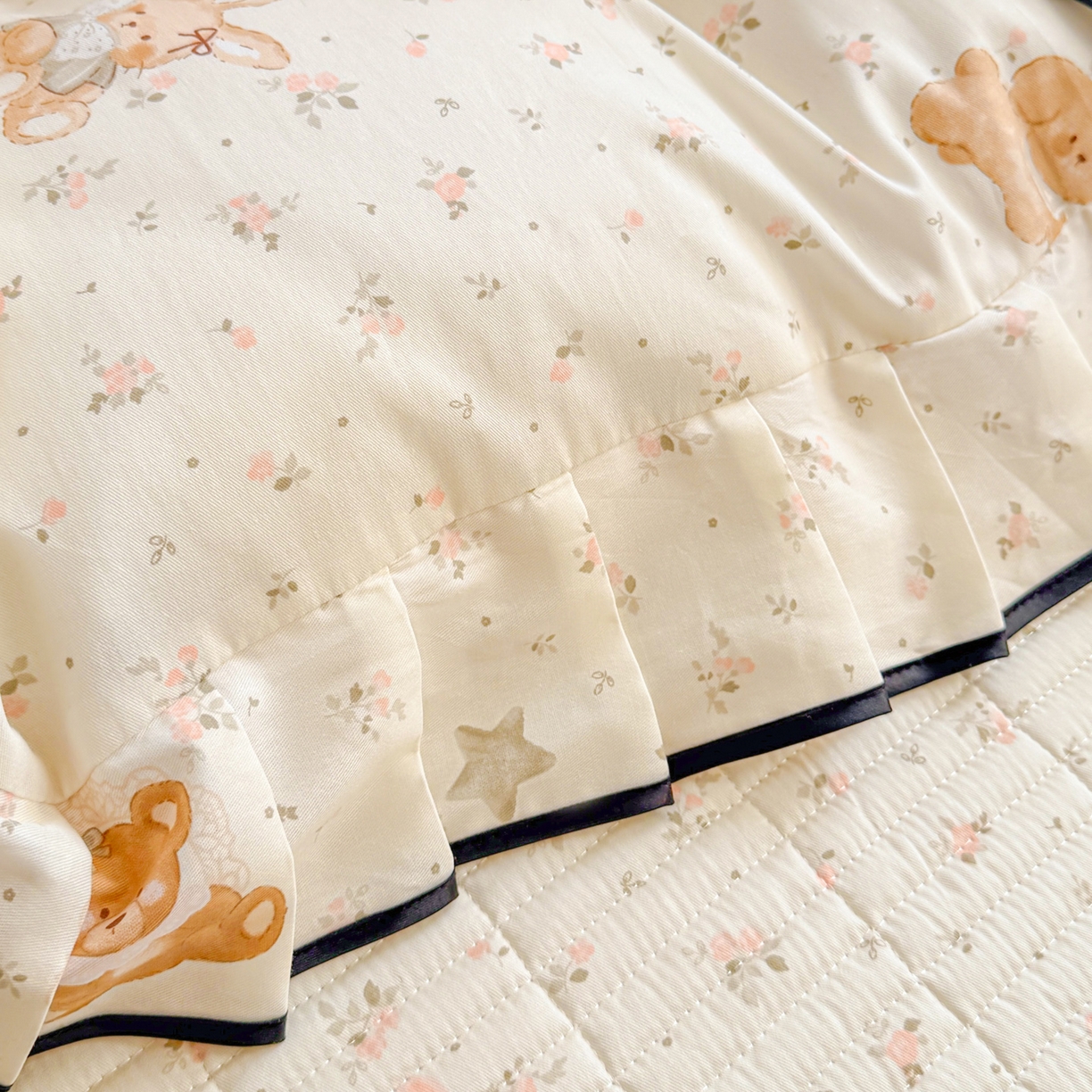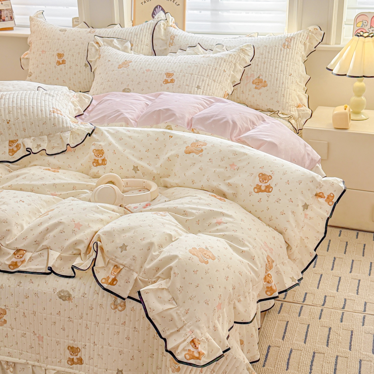 > 莱登卡奴 2026新款全棉A类小清新花边床盖款系列四件套 软糖萌宠