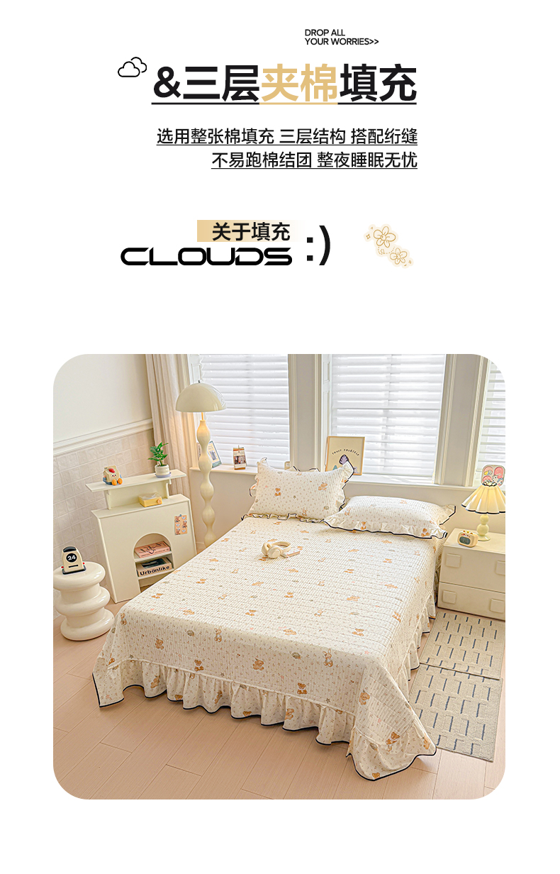 2025新款全棉磨毛加绒夹棉床盖卡通系列
