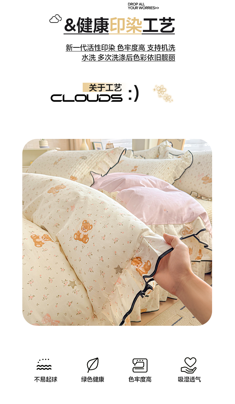 莱登卡奴 2026新款全棉A类小清新花边床盖款系列四件套 软糖萌宠