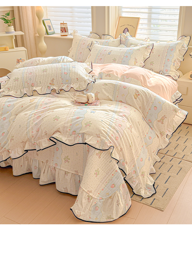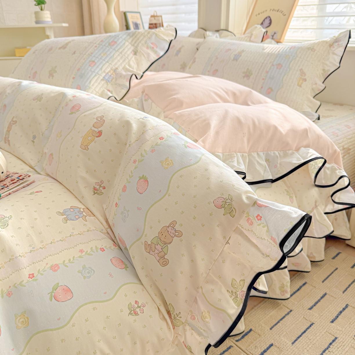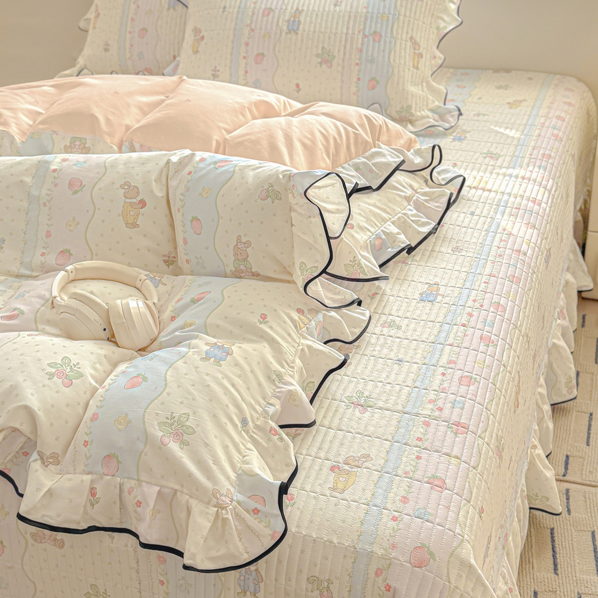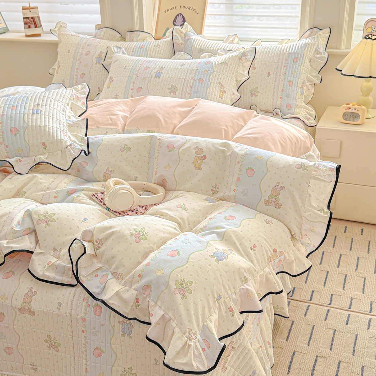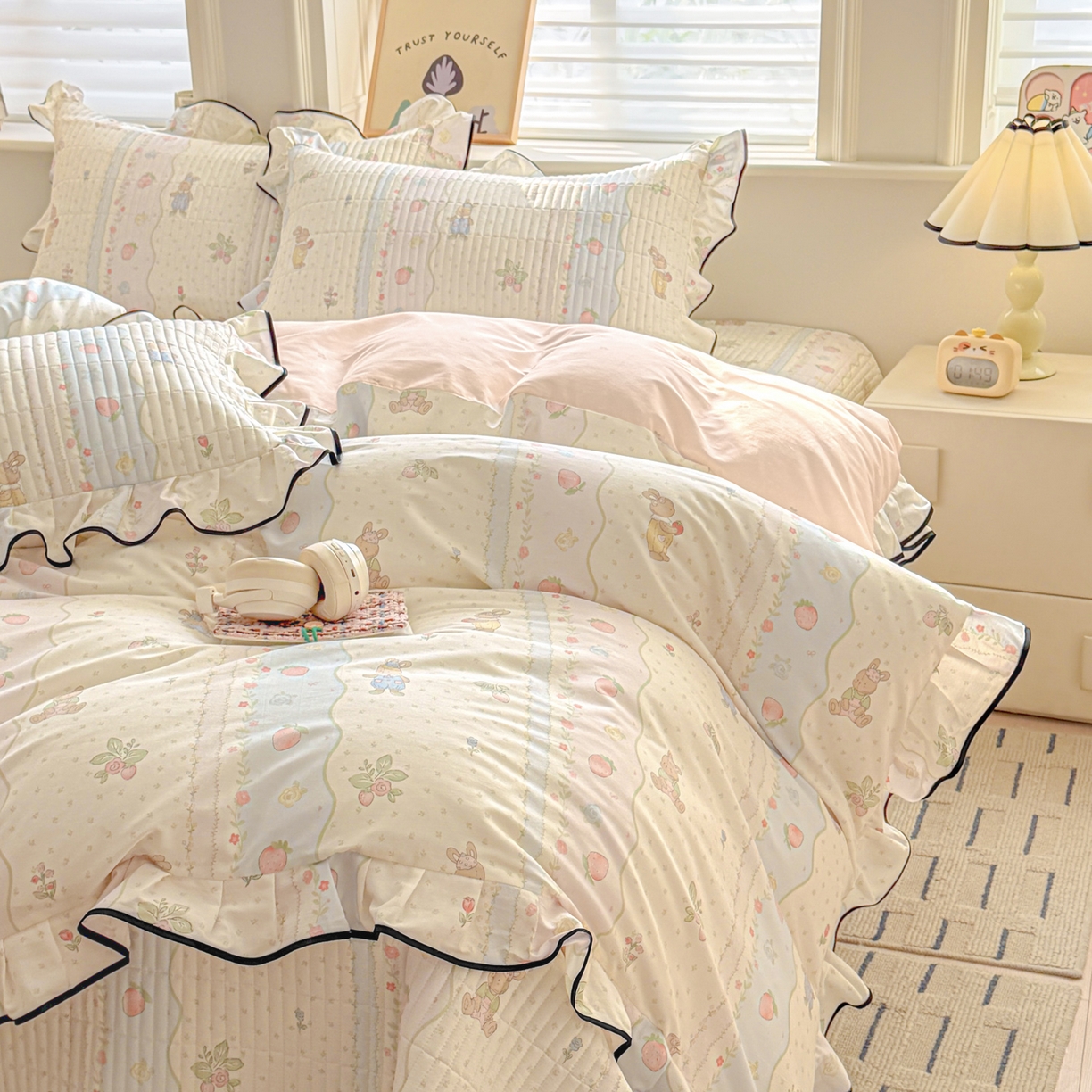 > 莱登卡奴 2026新款全棉A类小清新花边床盖款系列四件套 兔子草莓园
