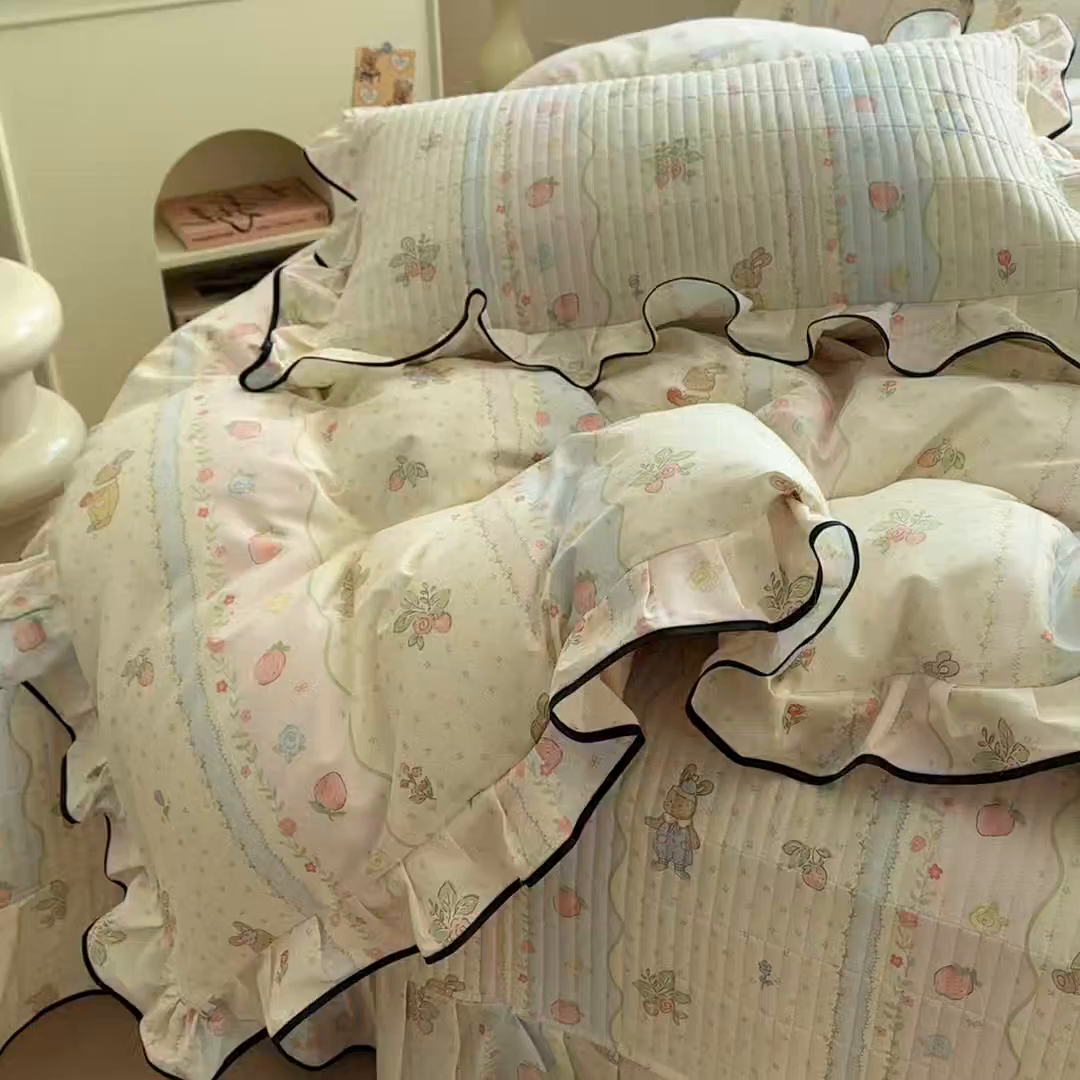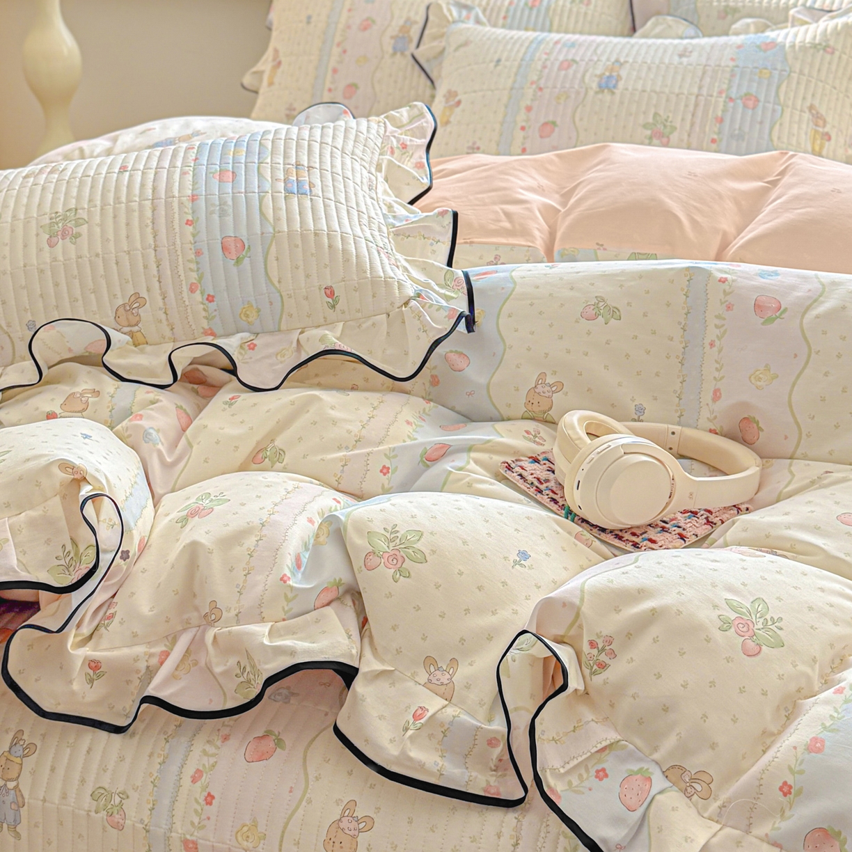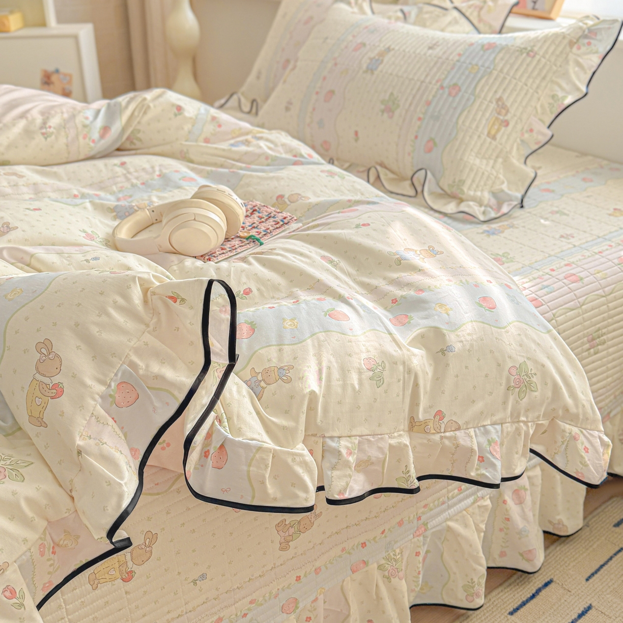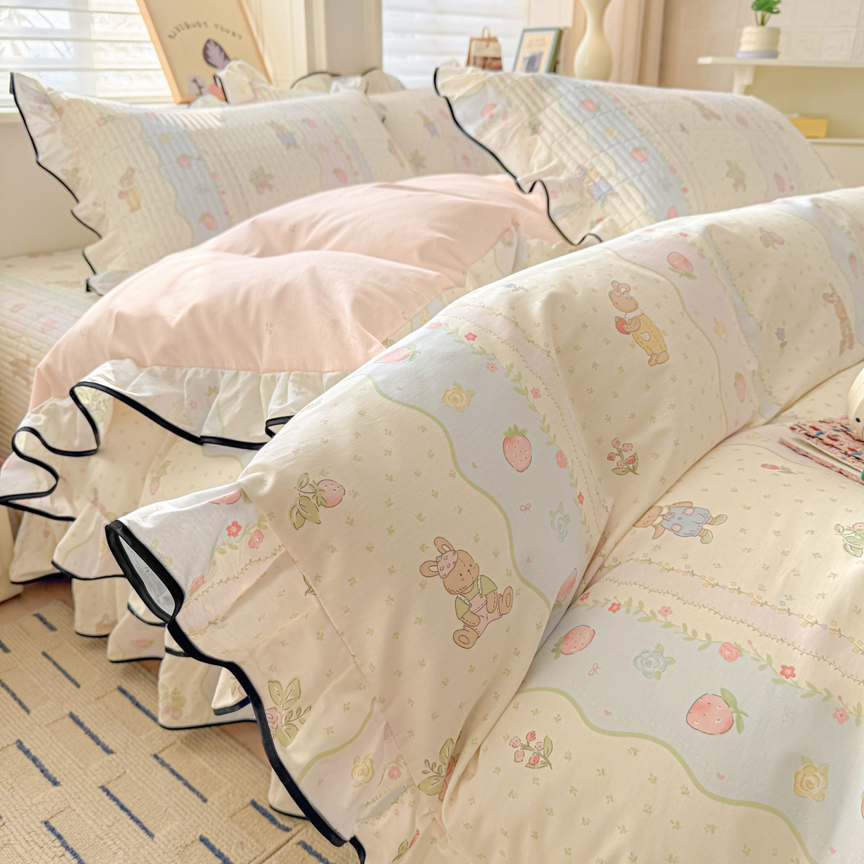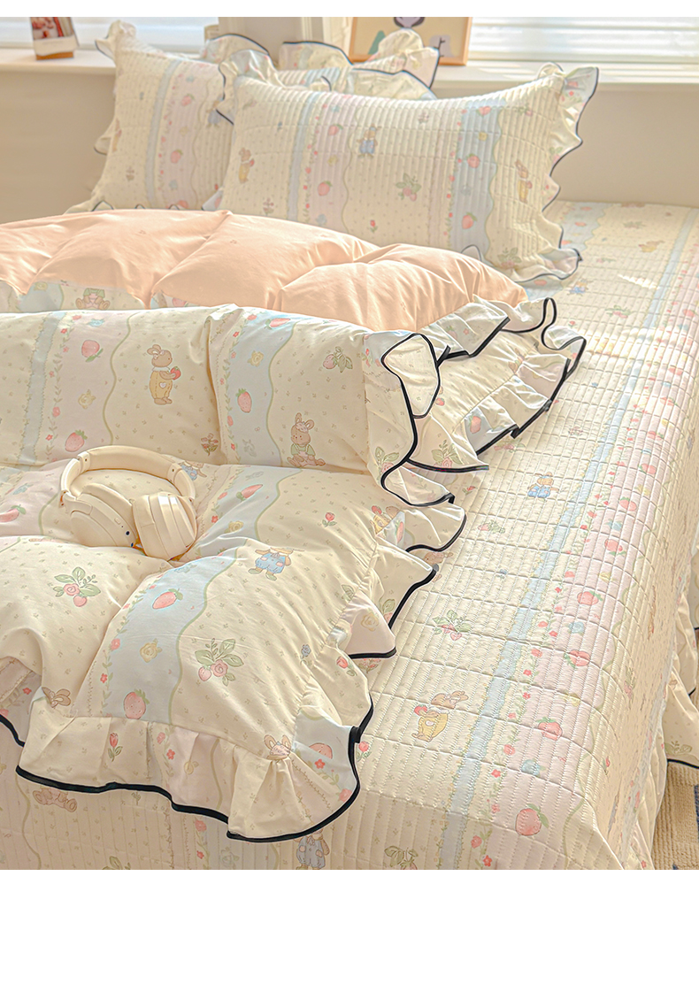 > 莱登卡奴 2026新款全棉A类小清新花边床盖款系列四件套 兔子草莓园