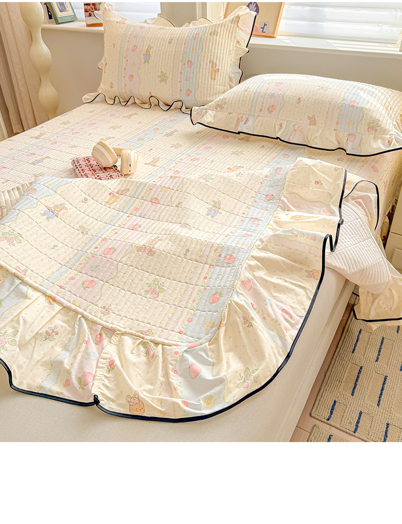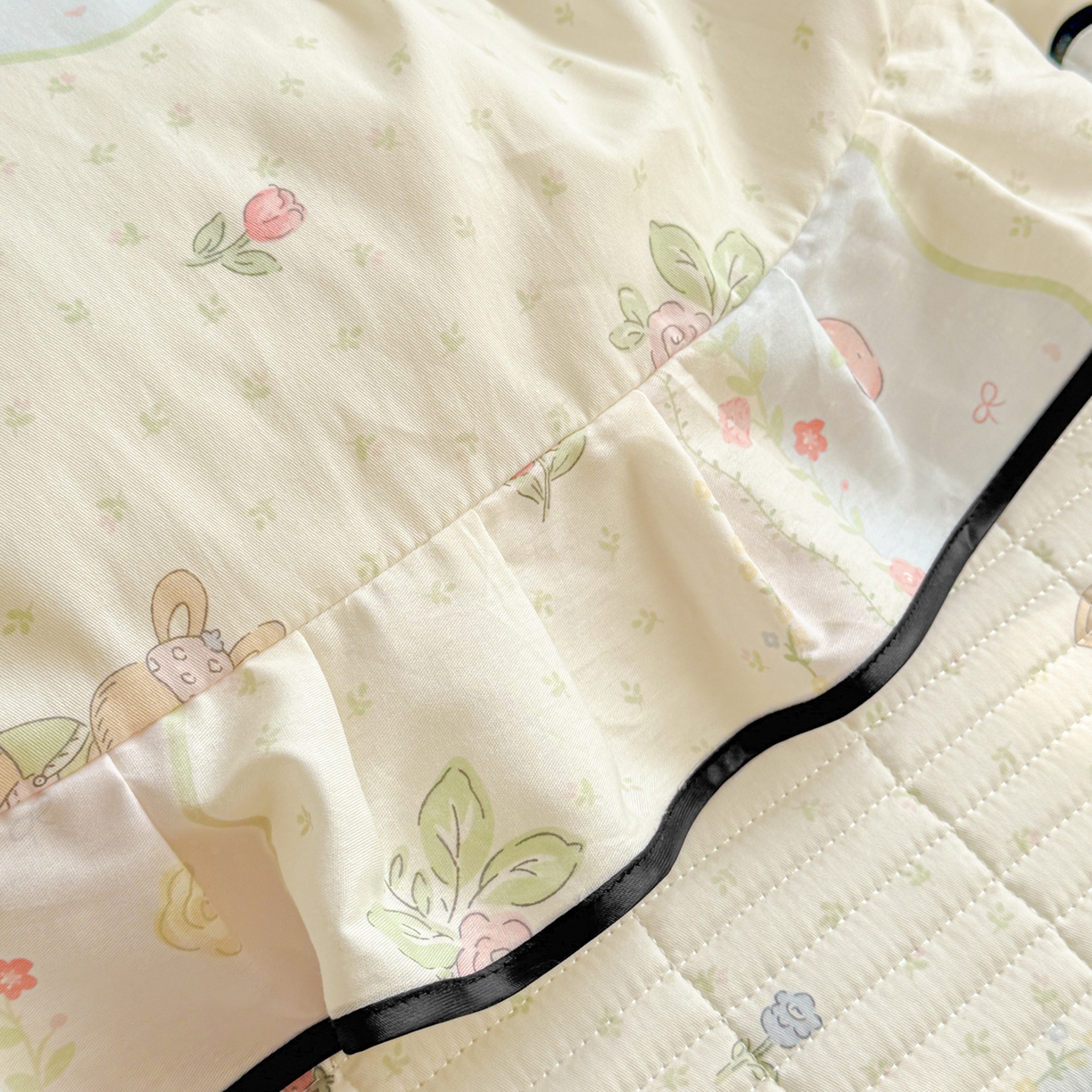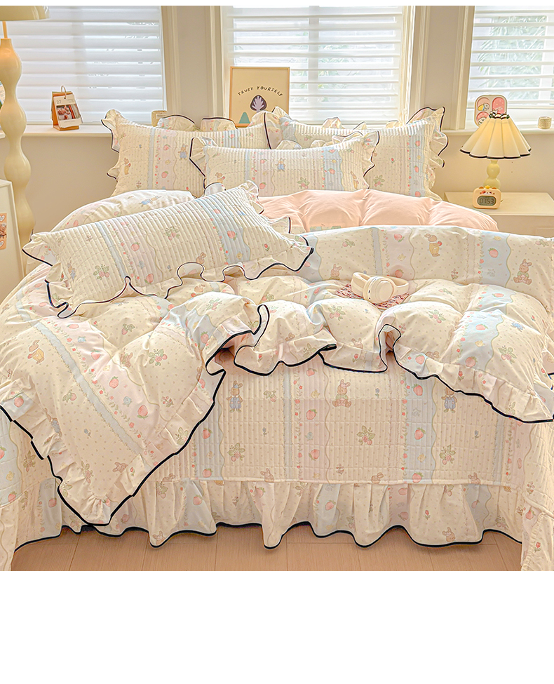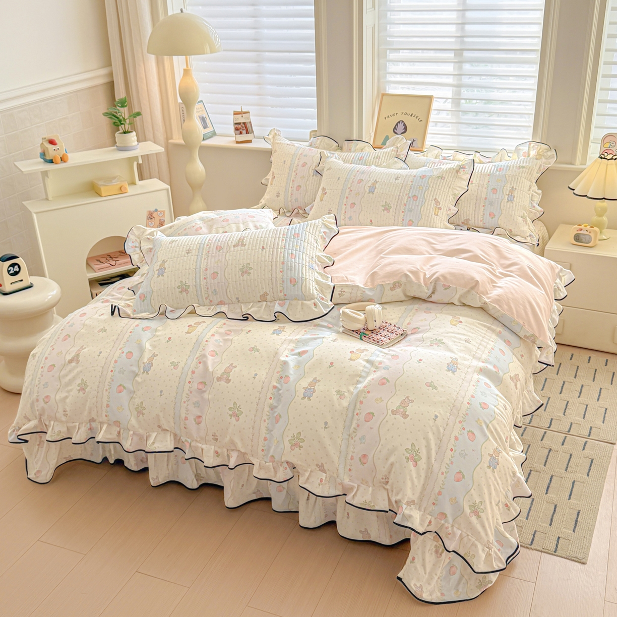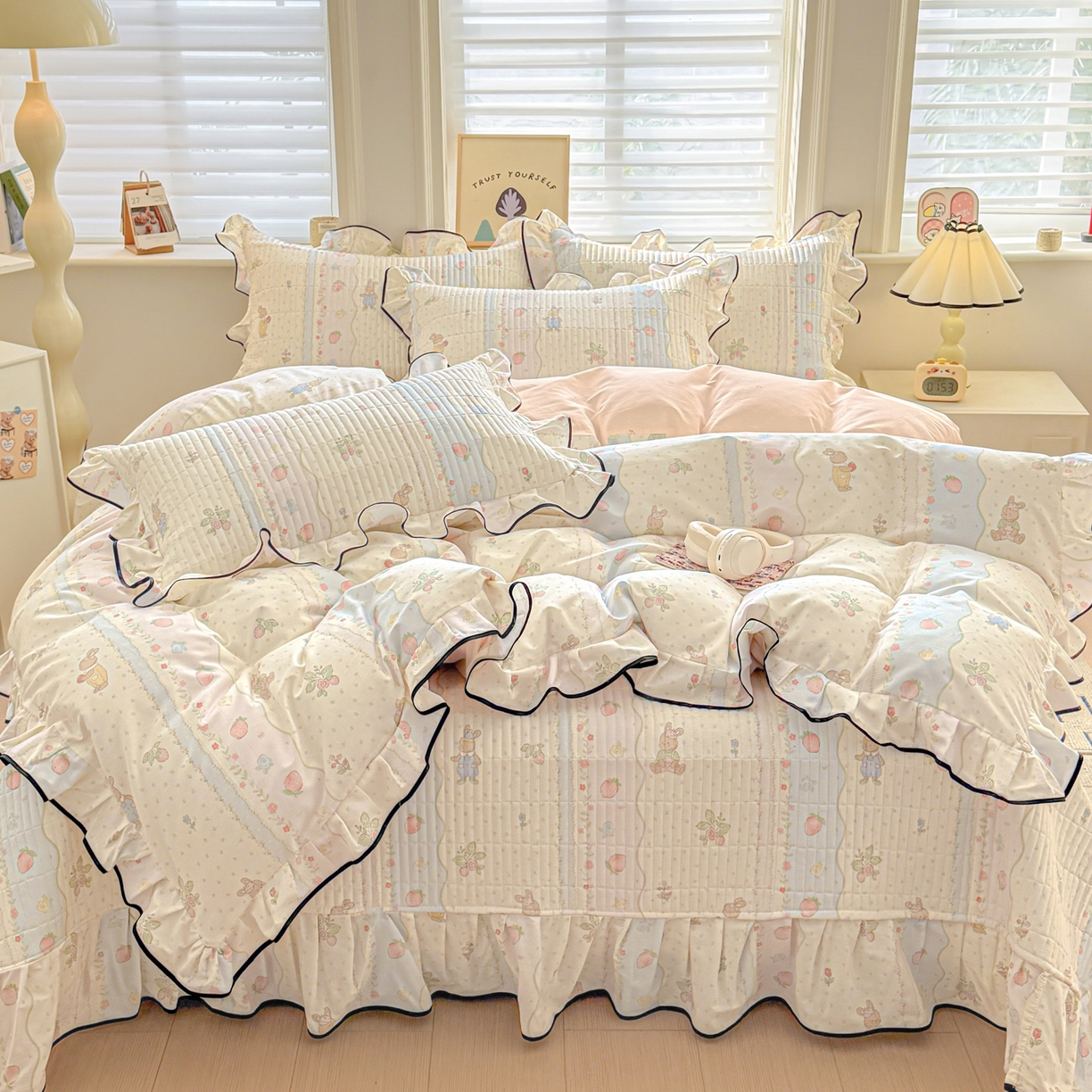 > 莱登卡奴 2026新款全棉A类小清新花边床盖款系列四件套 兔子草莓园