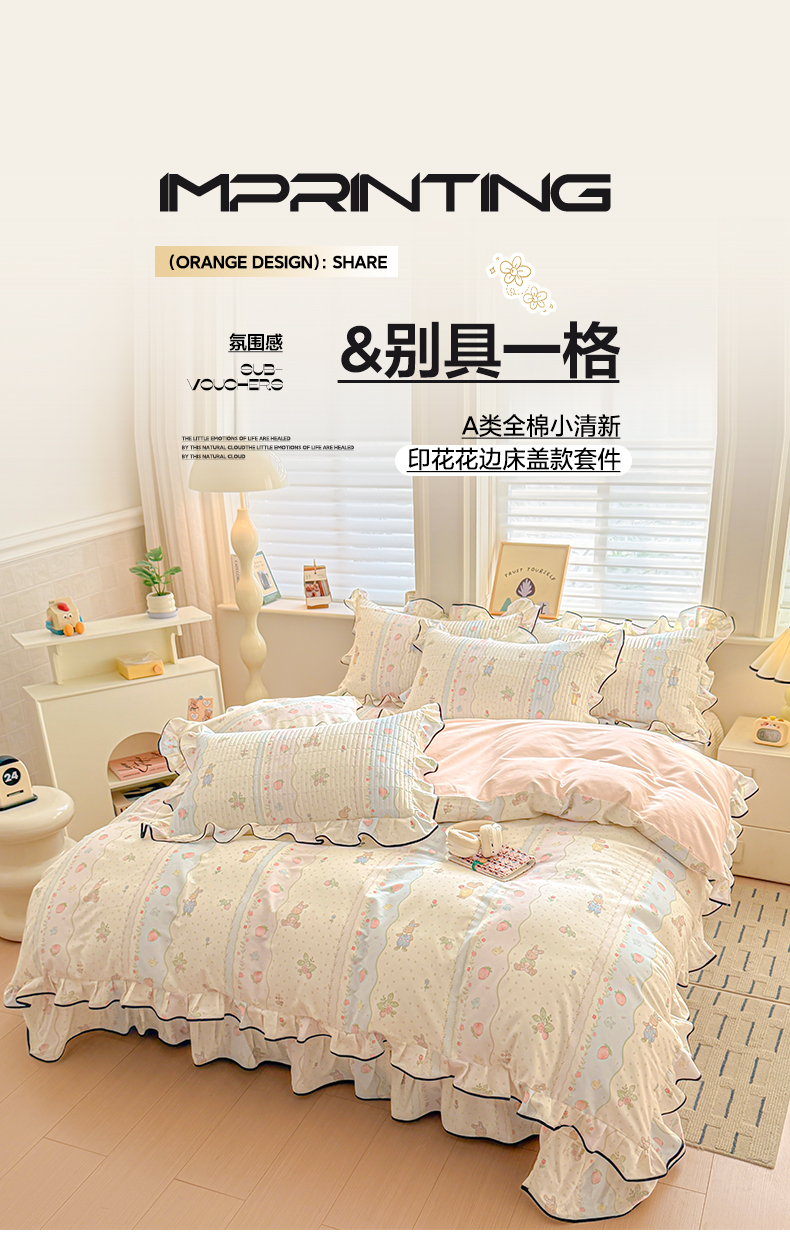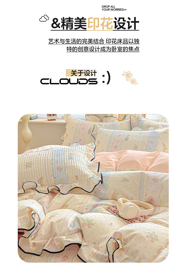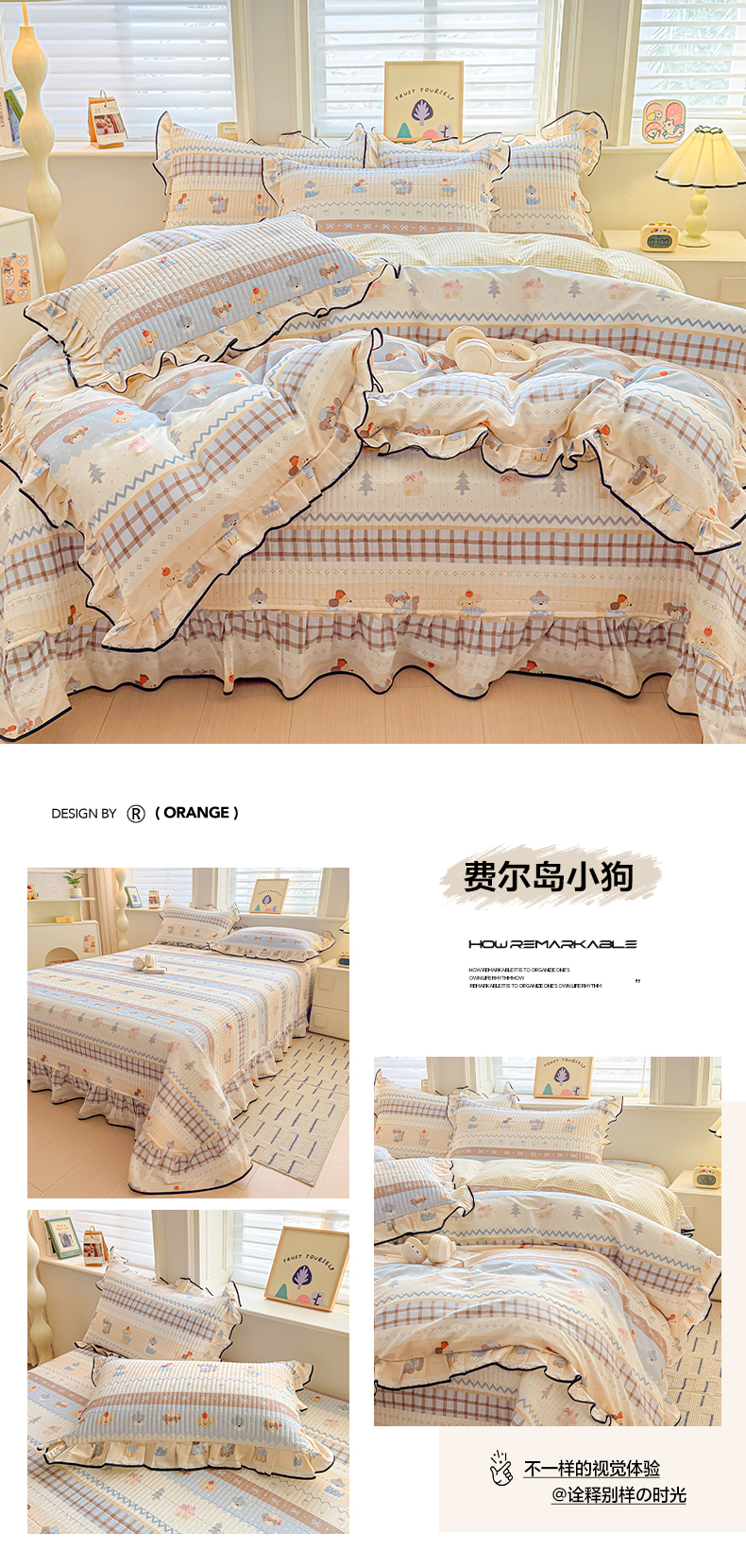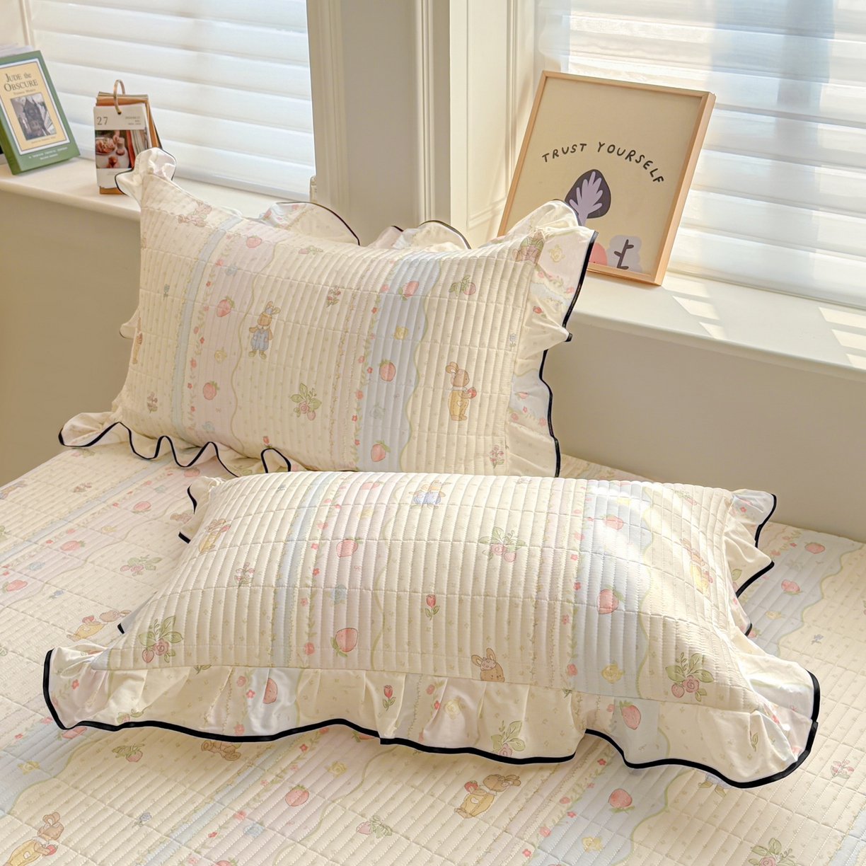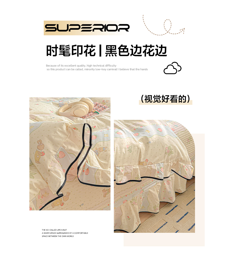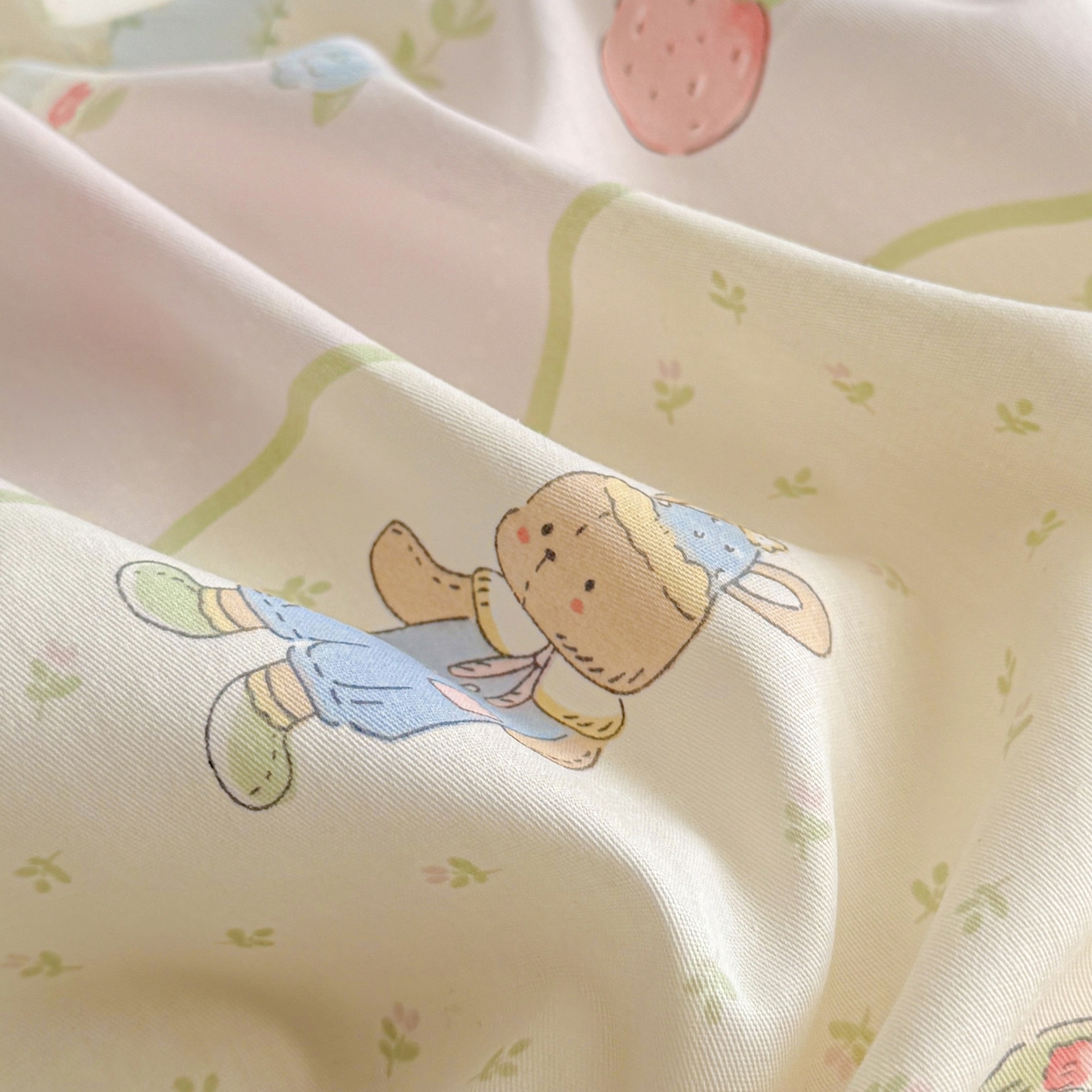 > 莱登卡奴 2026新款全棉A类小清新花边床盖款系列四件套 兔子草莓园