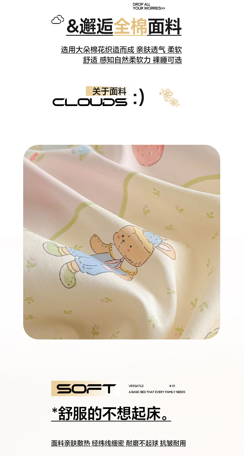 2025新款A类100%全棉磨毛条格卡通系列四件套