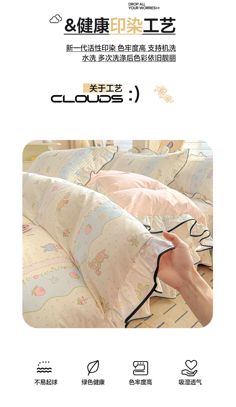 莱登卡奴 2026新款全棉A类小清新花边床盖款系列四件套 兔子草莓园