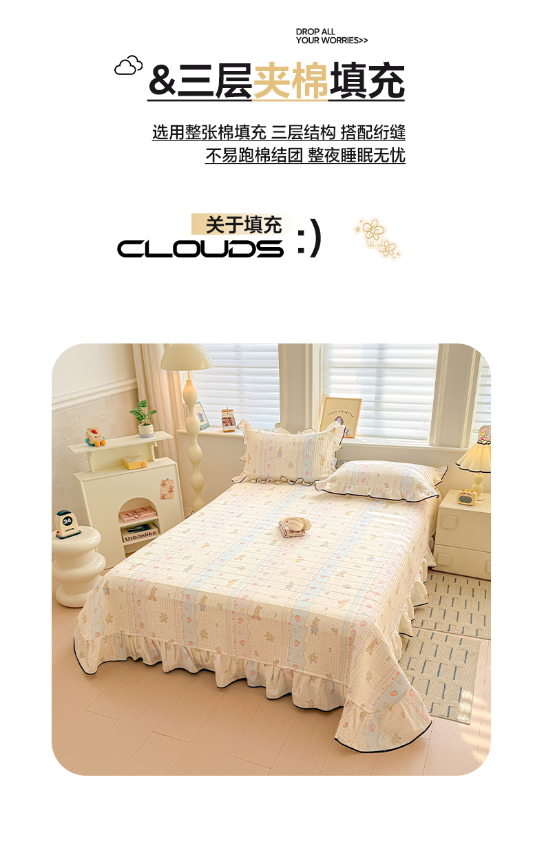 2025新款全棉磨毛加绒夹棉床盖卡通系列