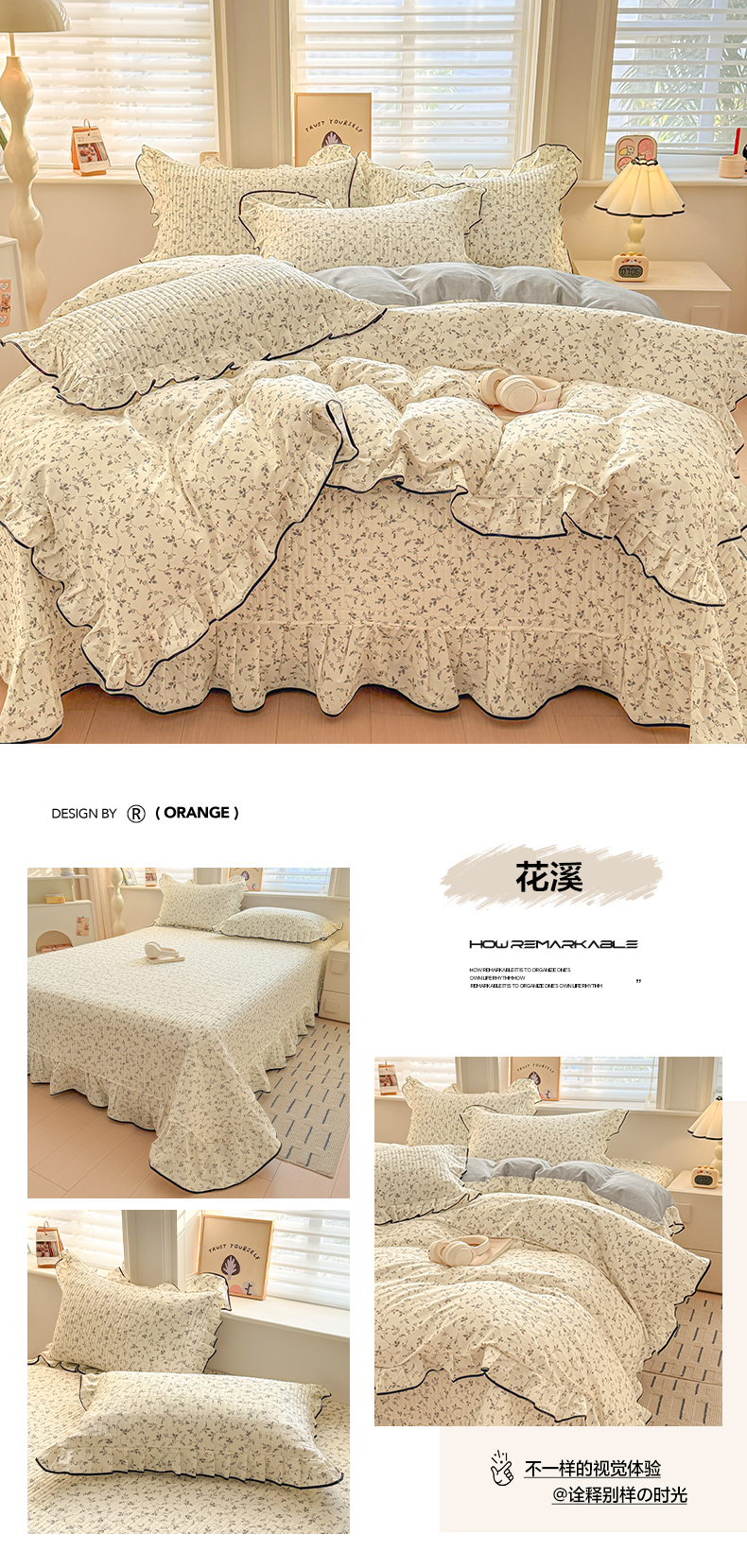 2025新款A类100%全棉纯棉磨毛法式复古花边款系列四件套