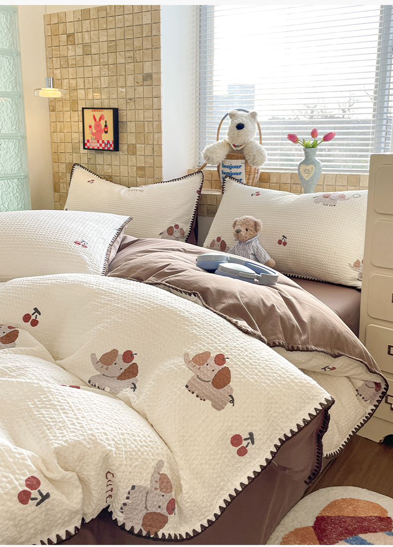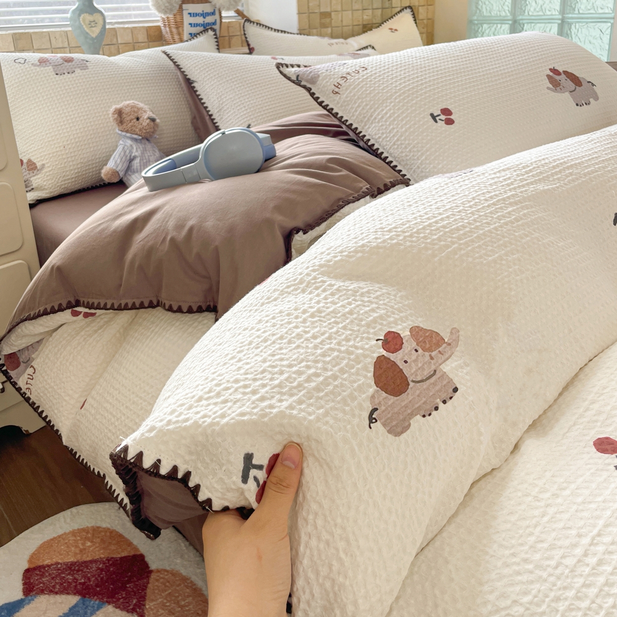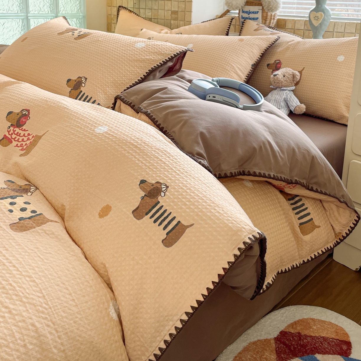 2025新款A类全棉双层纱印加绣呆萌系列四件套