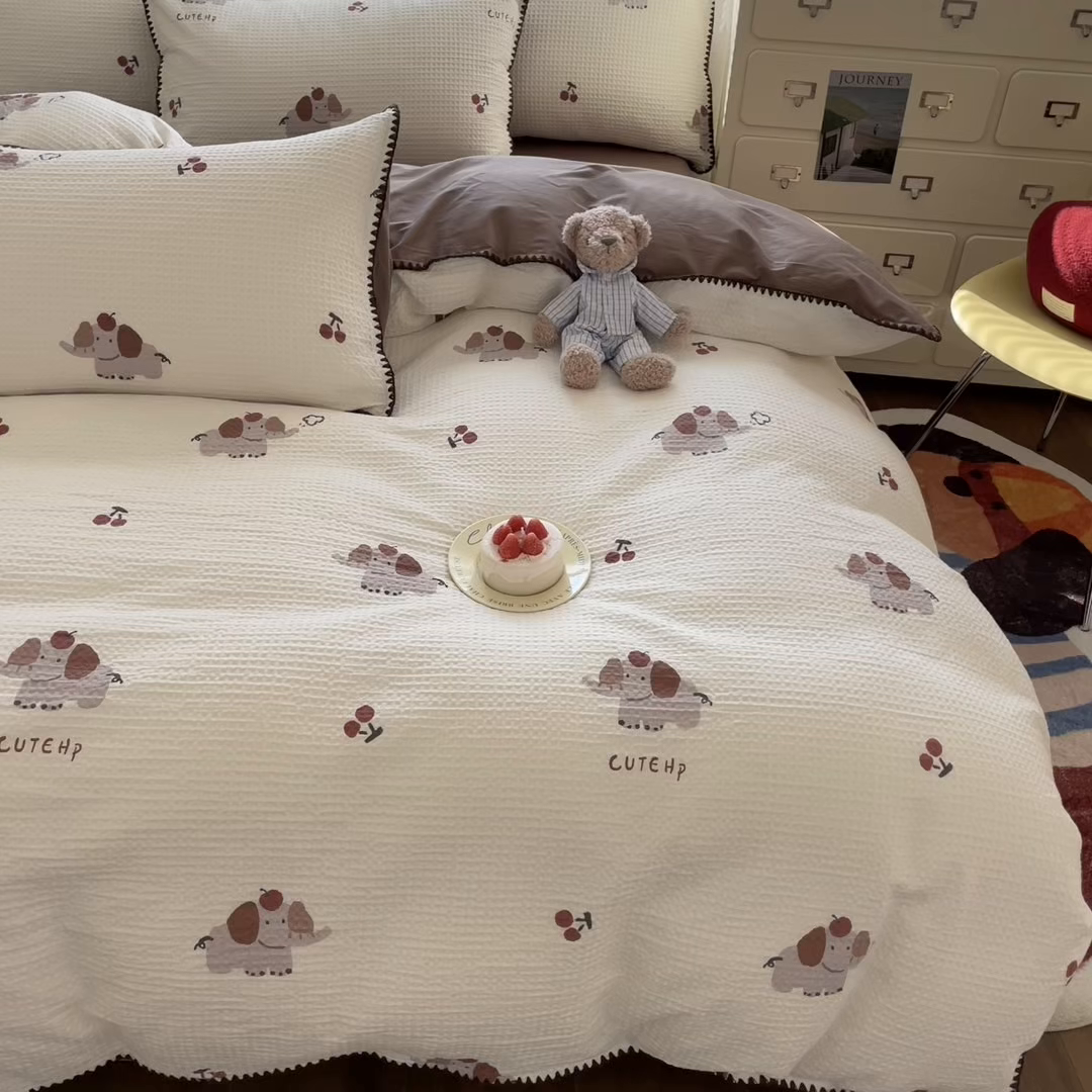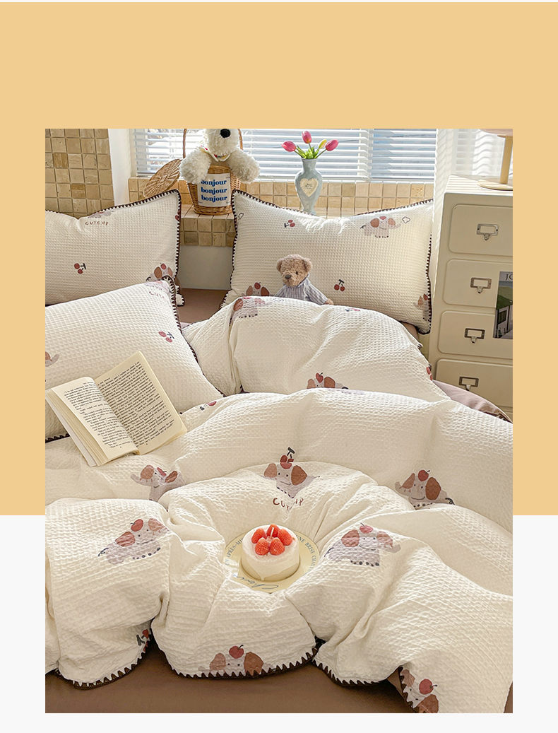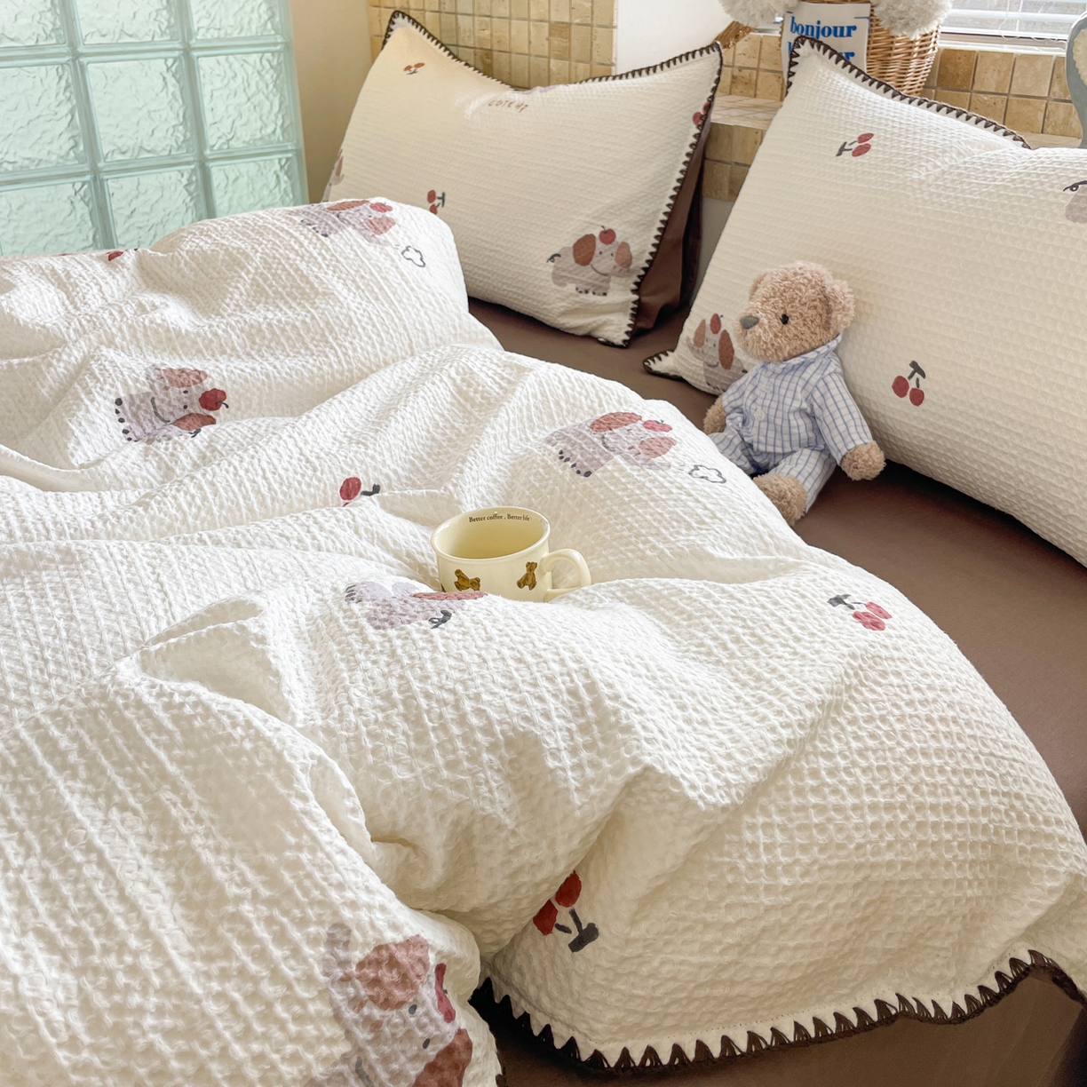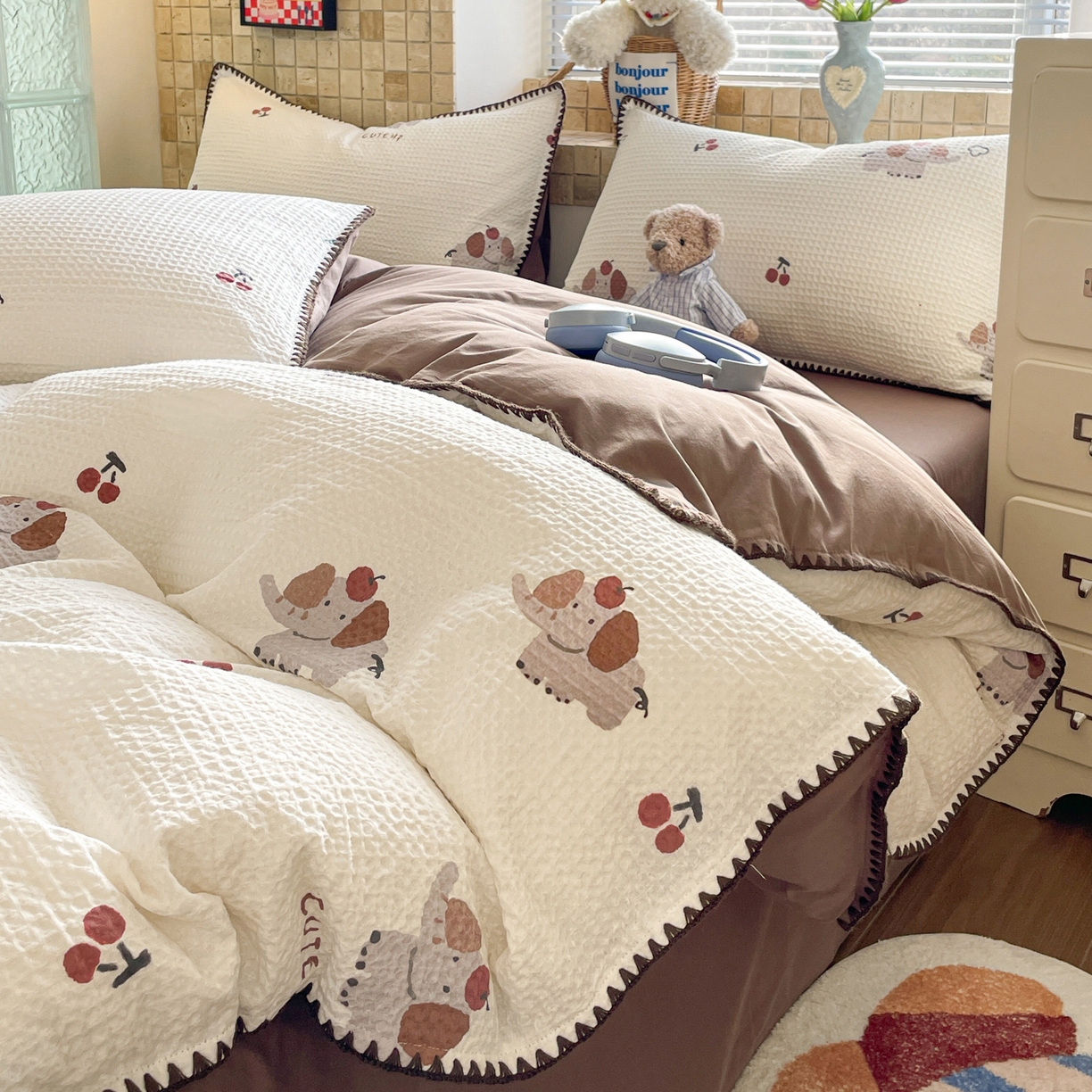 2025新款A类全棉双层纱印加绣呆萌系列四件套