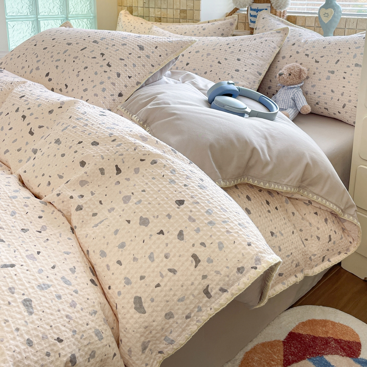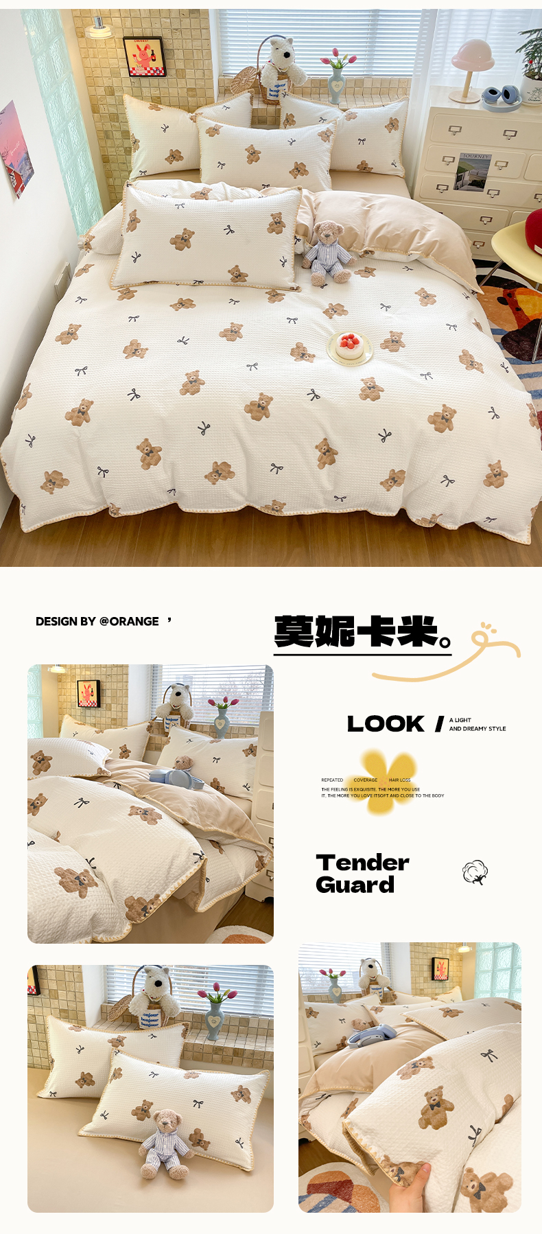 2025新款A类高克重牛奶绒泡泡绒印花美拉德风系列四件套