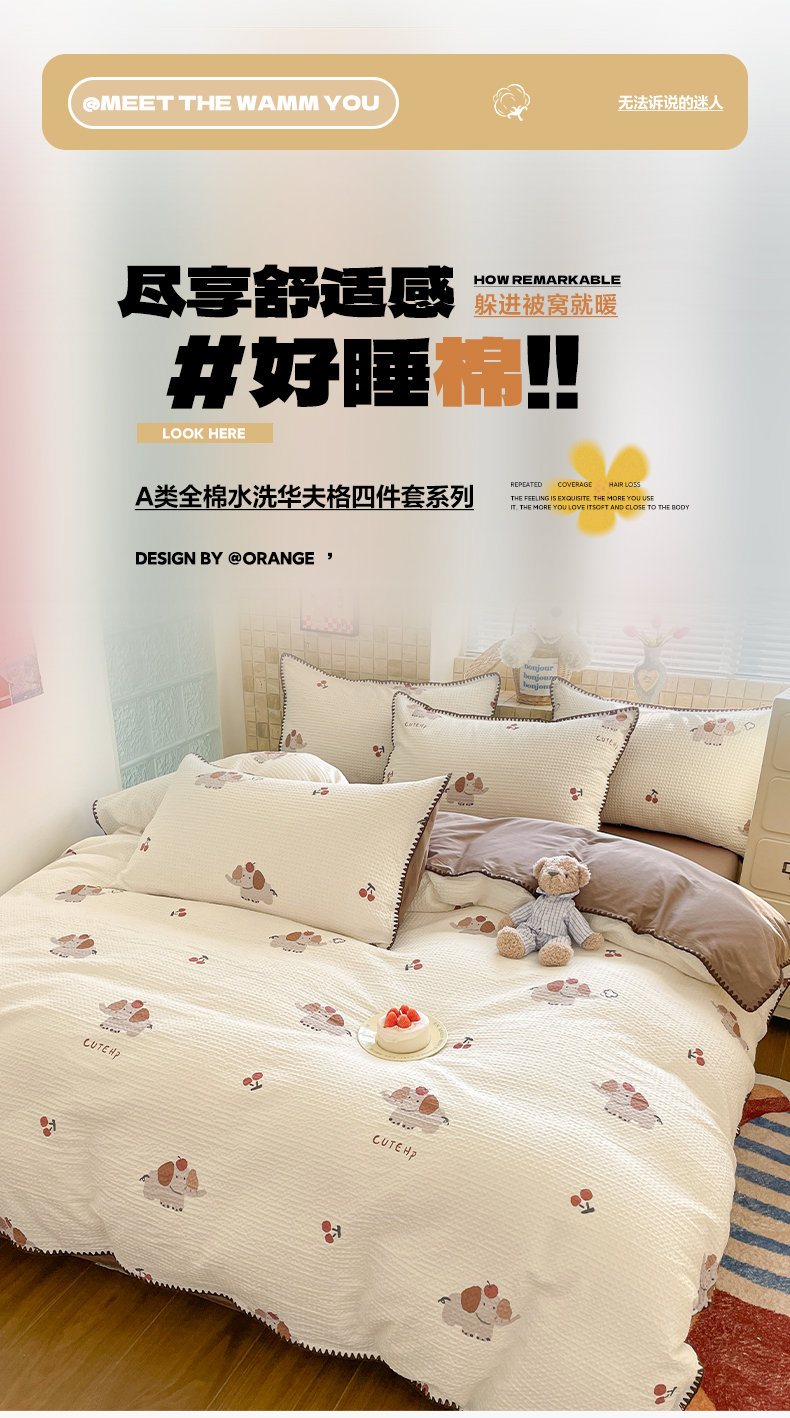 2026新款全棉A类三层纱水洗棉色织提花四件套系列