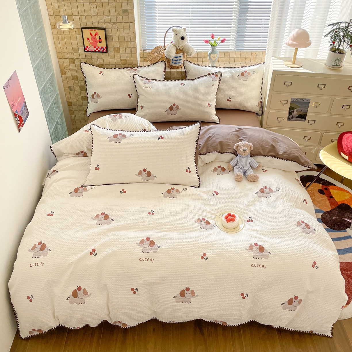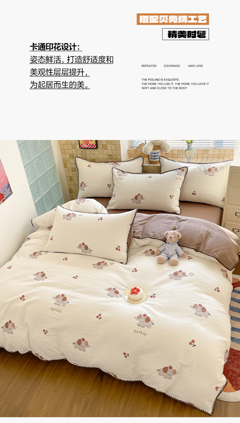 全棉A类色织水洗棉贝壳绣学生宿舍床系列
